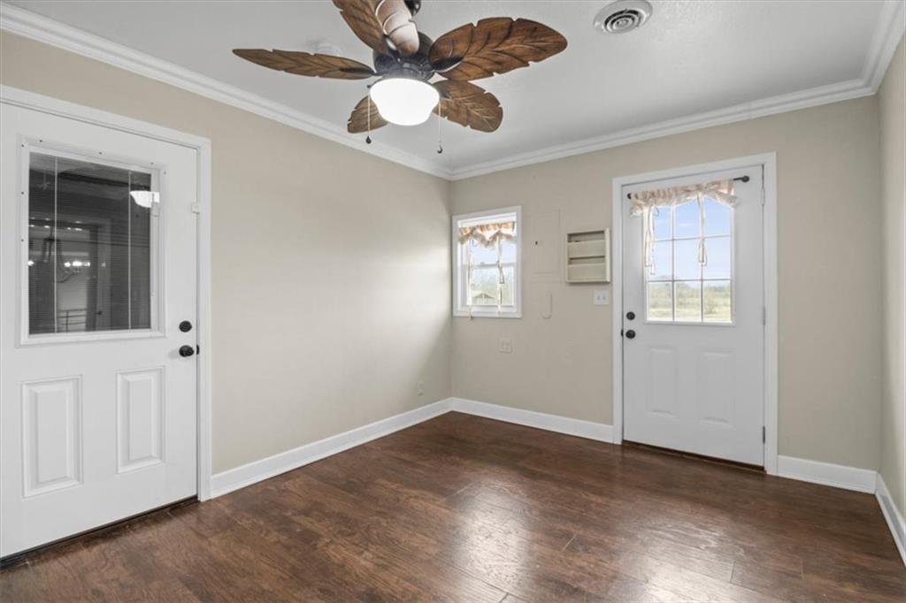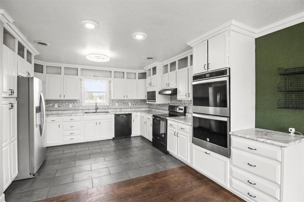 Set on 24 beautiful acres, with private drive and gated entry, this property is ready for your livestock and your lifestyle. This gorgeous home is out of city, unincorporated Oak Grove offering low property taxes under $3300/year. Fully fenced and cross-fenced, the land is thoughtfully divided into five separate pastures making it perfect for rotating cattle or horses. A newer 30x40 shop features a concrete floor, 200-amp service, and an exhaust fan, while a second barn offers wood flooring, electricity, and a loft for additional storage. You’ll also find two loafing sheds with stalls, along with two stocked ponds ready for your enjoyment! This home is positioned perfectly in the center of the acreage, offering 4 bedrooms, 2 bathrooms, along with an office/mudroom with peaceful views and stunning sunsets. You'll love the beautiful flooring throughout with a unique sunken living room surrounded by newly updated handrails with rod irons. All rooms are spacious with walk-in closets in every bedroom. Major updates have already been taken care of, including a new deck and extended patio, fully renovated bathrooms, new light fixtures, updated kitchen with new countertops, backsplash, sink, faucet, painted cabinetry, and double ovens. Additional improvements include fresh interior and exterior paint, eight newer windows, updated flooring, and upgraded trim with 6” baseboards in most of the home. New septic system less than a year old, the roof, furnace, and A/C are all 8 years old. This is a rare opportunity to own a turn-key acreage home out of city, off black top with the space, setup, and updates already in place.
