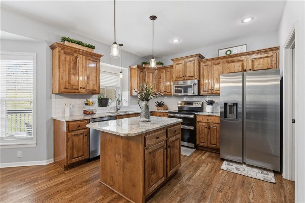 You’ve been searching for a home that’s truly ready - no surprises, no punch list, no compromises. This is it. Tucked in the sought-after Piper School District, this thoughtfully updated 5-bedroom, 3.5-bath home with a 3-car garage was prepared with one goal in mind: hand the keys to the next owners and let them simply live. The sellers went first. A pre-listing inspection was completed, recommended repairs made, and fresh exterior paint was applied. You walk in with confidence - not a to-do list. Inside, hardwood floors and tile anchor the main level with warmth and durability. The kitchen earns its keep with granite countertops and newer stainless steel appliances - whether you’re cooking for two on a Tuesday or hosting a full house on a Friday, the space works with you. A built-in sound system sets the mood in every room. Upstairs, three secondary bedrooms share a full bath, while your primary suite delivers the retreat you’ve been waiting for - jacuzzi tub, separate shower, dual vanities, and a walk-in closet sized for real life. The finished basement gives everyone room to spread out. A spacious family room, a fifth bedroom, and a full bath create a flexible lower level that adapts as your needs change. Outside, a freshly painted deck extends your living space into the backyard - the kind of space where evenings slow down and mornings feel unhurried. Everything has been done. All that’s left is you.