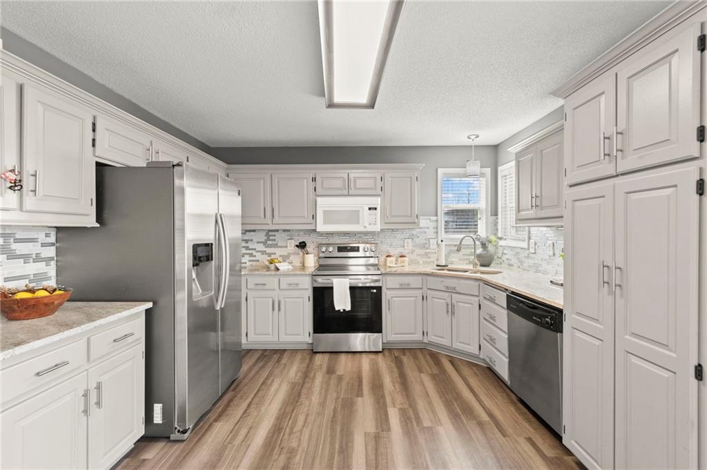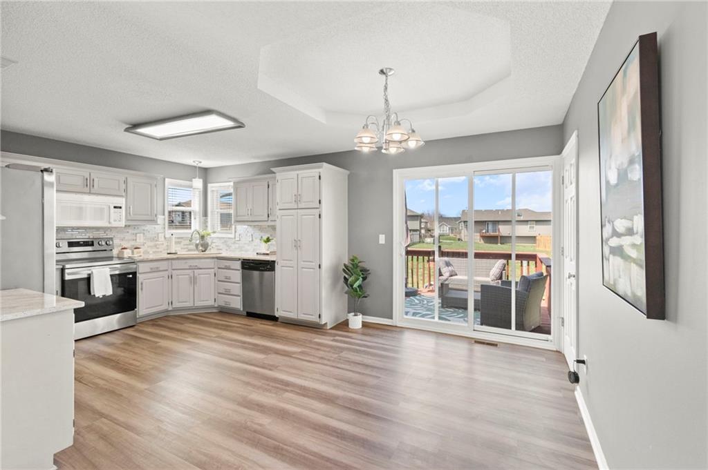 Welcome to a wonderful 3 bedroom/2 Bath home in the desired Kellybrook neighborhood in the Liberty School district. Lots of convenient road access to schools and shopping. This house is just what you've been waiting for! Enter into a large, serene living room with a gas fireplace, vaulted ceiling and expansive windows to let in lots of light! Up a few stairs, the kitchen is conveniently laid out for easy use. Granite counters and a gorgeous tile backsplash are enhanced by stainless appliances. There's lots of room in this Open plan for a dining area where you'll overlook a welcoming deck and large yard. You'll appreciate the nice sized bedrooms with ample closets. The Spacious Primary bedroom has not one but TWO walk in closets . The spa-like primary bath includes a whirlpool and walk in shower, with illumination from a skylight in the vaulted ceiling above. Downstairs is a large finished daylight basement rec room for movies, extra playroom, or large private office space. This home is well cared for, bright and clean. Come see this right away and make it yours! Saturday April 18th update: We have received multiple offers and are requesting all offers to be submitted by 6pm today. Thank you!