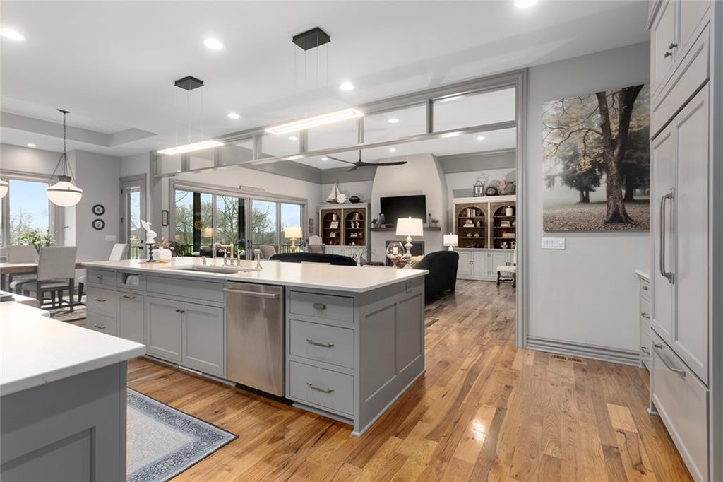 One-of-a-kind modified Haventon floorplan built by Homes by Chris in the remarkable Tiffany Greens subdivision, featuring all of the custom upgrades you could imagine! Classy and convenient, this recently-built home was thoughtfully appointed with top-quality materials and a meticulous eye for details that prove both beautiful and useful. Step into the expansive open-concept living/kitchen combo and enjoy gorgeous views of the Tiffany Greens golf course, or stare in awe at the stunning Italian plaster fireplace and upgraded trim package, complete with a striking seeded glass transom. The 12-foot kitchen island with quartz countertop is the heart of the home, a perfect place to congregate for after school snacks or elevated evening hors d'oeuvres. Homeowners who enjoy entertaining will gush over the luxury kitchen appliances including a 42" range, large workstation sink, sub zero refrigerator, and three ovens! Inset kitchen cabinets with soft close doors and storage upgrades plus a generous butler's pantry are a home cook's dream come true. The spacious primary bedroom features a bathroom with custom cabinets and heated tile floors with a massive walk-in closet. Casement windows, natural hickory floors, 8-foot solid wood doors, automatic window treatments, direct hardwire for internet, and too many other upgrades and special touches to name. If you have ever wanted to build a custom home but the process feels intimidating, this is the house for you! Enjoy all of the features of an intentionally designed home with none of the decision fatigue. An opportunity you don't want to miss!