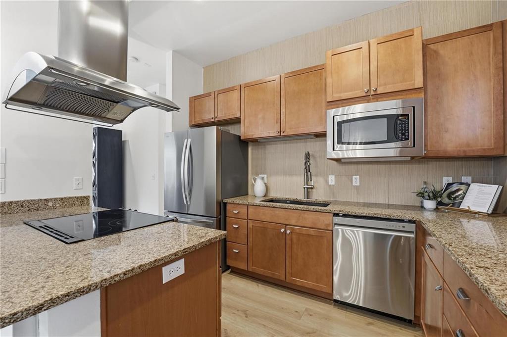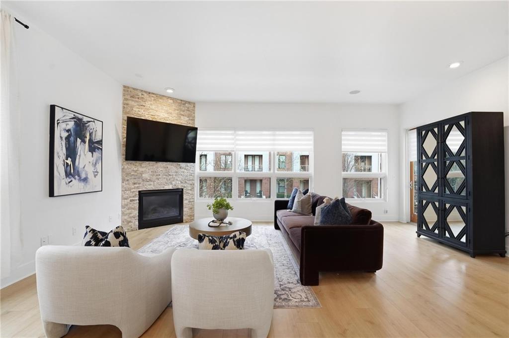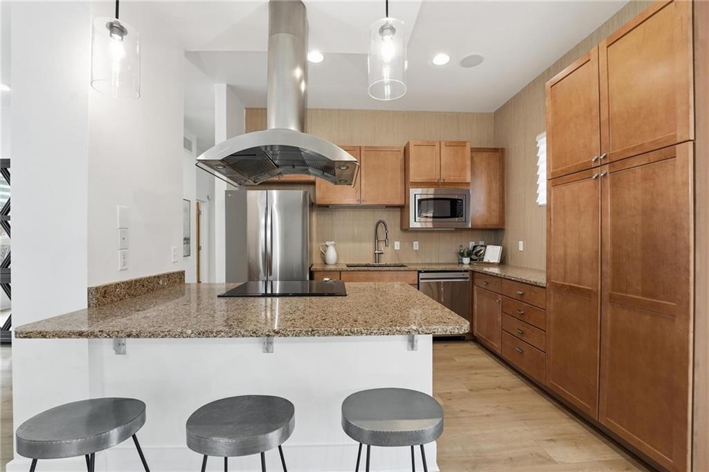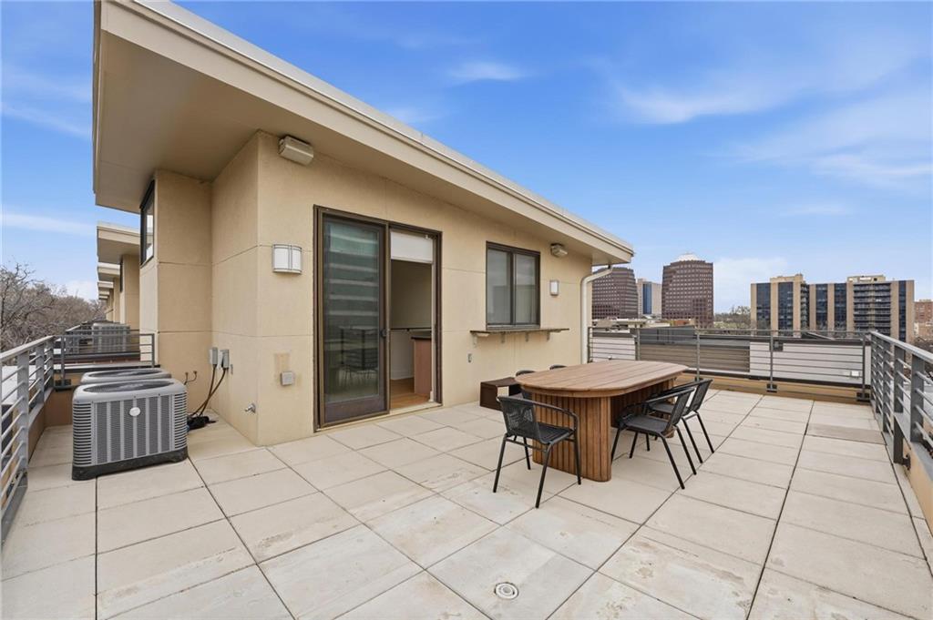 Experience the ultimate urban lifestyle in this updated 3-story corner townhome, perfectly situated just steps from the world-class shopping and dining of the Kansas City Plaza! Spanning over 2,000 square feet, this residence blends modern luxury with functional design. Large 2-car garage with epoxy floors and built in storage cabinets! This home has been refreshed, featuring brand-new LVP flooring throughout, new appliances, plush new carpet on the stairs, and a crisp, modern interior paint palette. The heart of the home features an open-concept kitchen and living area bathed in natural light with gas fireplace and balcony overlooking Washington Street. The chef-ready kitchen boasts new stainless steel appliances, sleek cabinetry, granite countertops, and a spacious breakfast bar. Whether you're hosting a dinner party in the formal dining area or relaxing by the stone-accented fireplace, this level is designed for seamless living. The third level is a private retreat - The bedroom level offers convenience and comfort. The spacious Master Suite features a true spa-like experience with a large walk-in shower, large jacuzzi tub, a double granite vanity, and elegant finishes. You’ll also find the second bedroom, another full bathroom, and a brand-new washer and dryer set located outside both bedrooms. Ascend to the top floor to discover your private oasis. The expansive Sky Deck offers breathtaking views of the Plaza skyline. This ultimate indoor/outdoor entertainment space comes fully equipped with a built-in wet bar, wine cooler, ice maker, granite countertops, and a convenient half-bath, making it the perfect spot for sunset cocktails or fire pit gatherings. Top Sky Deck level could be used as entertainment or office area!