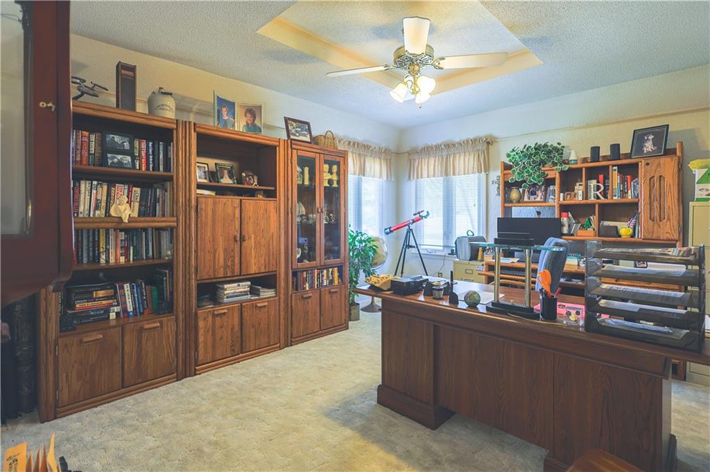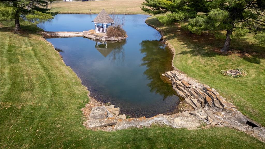 Magnificent one-of-a-kind setting! A long concrete driveway leads to this beautiful ranch home with an oversized 3-car attached garage and finished basement, all overlooking 18.13 acres with breathtaking views of a large fishing pond complete with gazebo. The back deck and patio create the perfect space for entertaining, featuring a built-in BBQ grill and peaceful surroundings. Home offers 4 bedrooms plus a non-conforming 5th bedroom, 3.5 baths, vaulted ceilings, and a unique fireplace in the living room, along with a second fireplace in the finished family room. The kitchen is well-appointed with abundant cabinetry, pantry, Corian countertops, and a casual dining area, plus a separate formal dining room large enough for gatherings. Property also includes an impressive 36x60 insulated outbuilding with multiple garage doors, a 35x14 heated and cooled workshop area, ample electrical, and air lines throughout. A second 36x24 outbuilding offers concrete floors, attic storage, and a lean-to for additional versatility. This property is truly a rare find offering space, function, and incredible views!