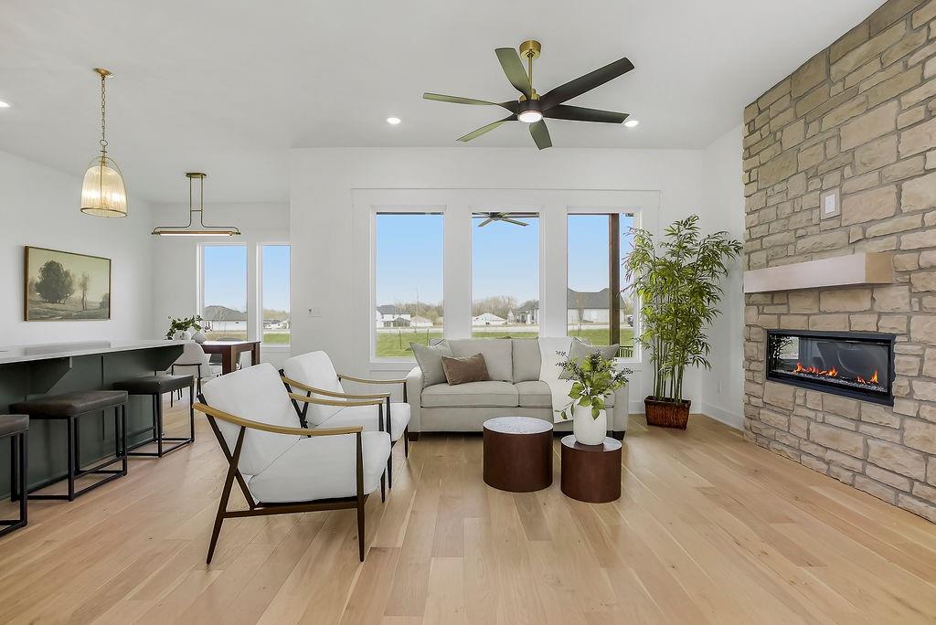 Welcome to Hoot Owl Acres—featuring this stunning model home with a durable, weather-resistant Tesla solar roof! The “Toby” plan by B & B Custom Homes offers a spacious open-concept layout designed for both everyday living and entertaining. The kitchen is a standout feature, complete with a large island, generous cabinetry, and a walk-in pantry. The main level features a split-bedroom design, providing a private primary suite with a beautifully tiled custom shower, private water closet, and convenient access from the walk-in closet directly to the laundry room. From there, you’ll flow seamlessly into the mudroom and garage entry—because real life needs smart design. Step outside to the covered patio—perfect for morning coffee or winding down in the evening. The finished lower level expands your living space with two additional bedrooms, a full bathroom, a spacious rec room, and a versatile bonus area ideal for a home gym, office, or game room. With thoughtful design, quality craftsmanship, and incredible value, this home truly delivers space where it matters most.