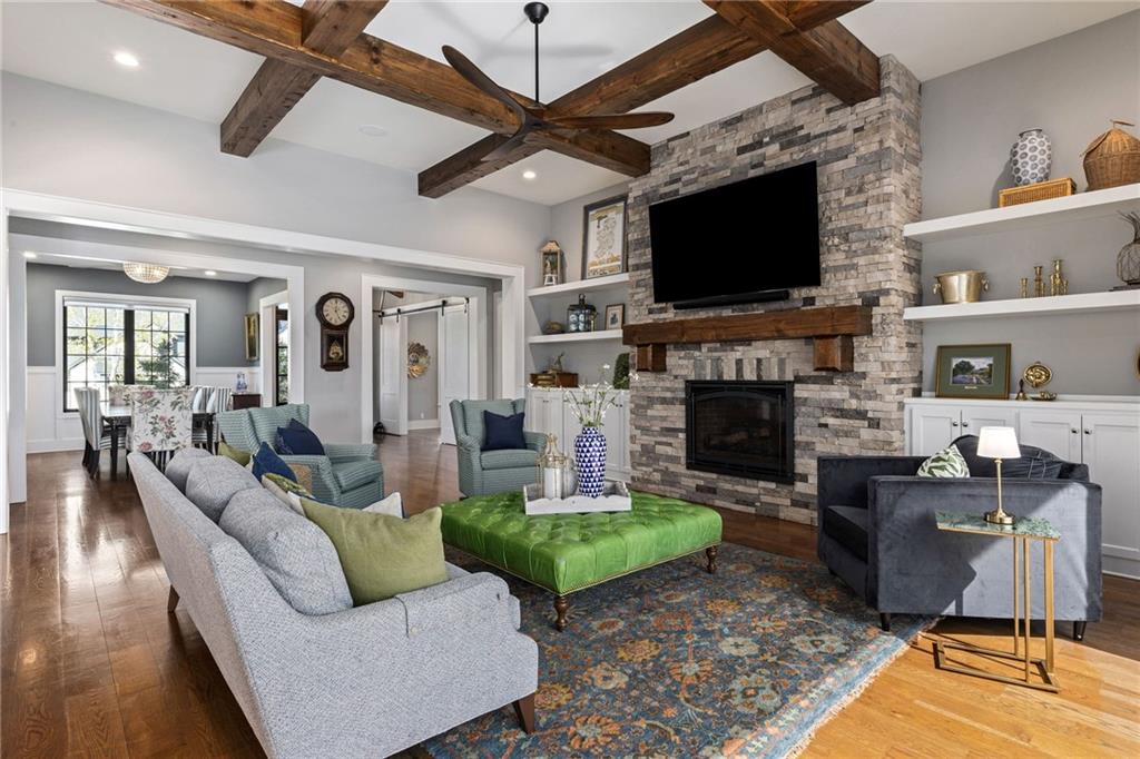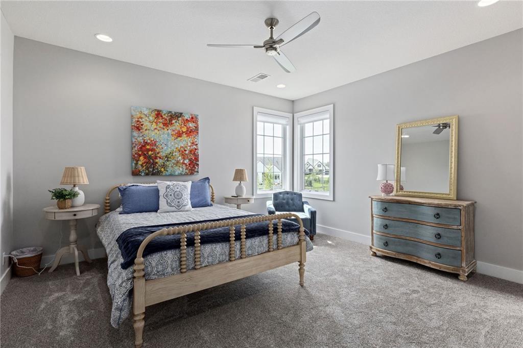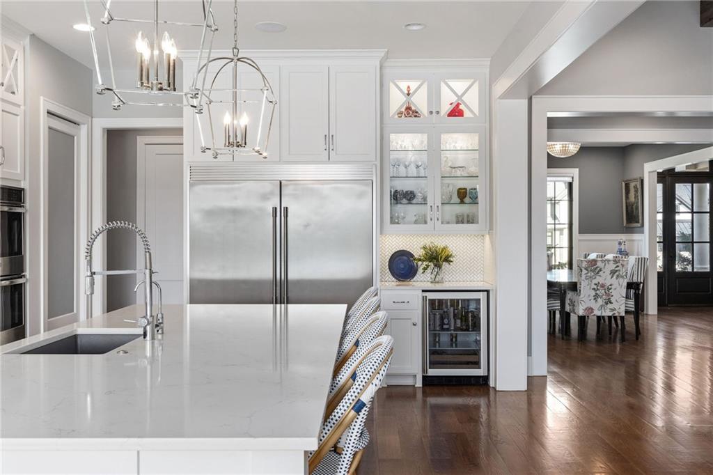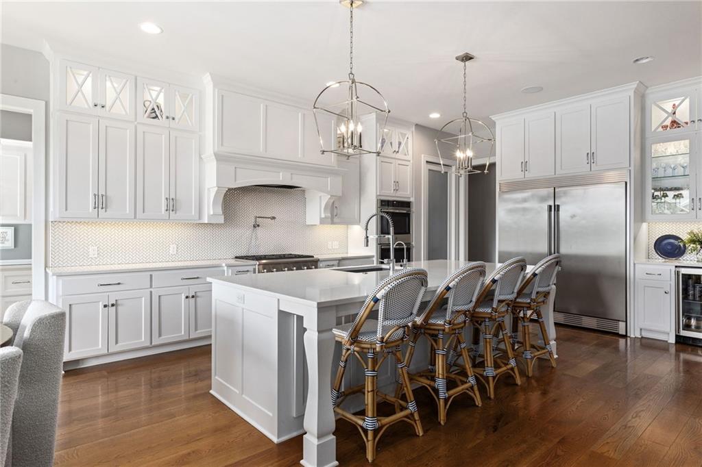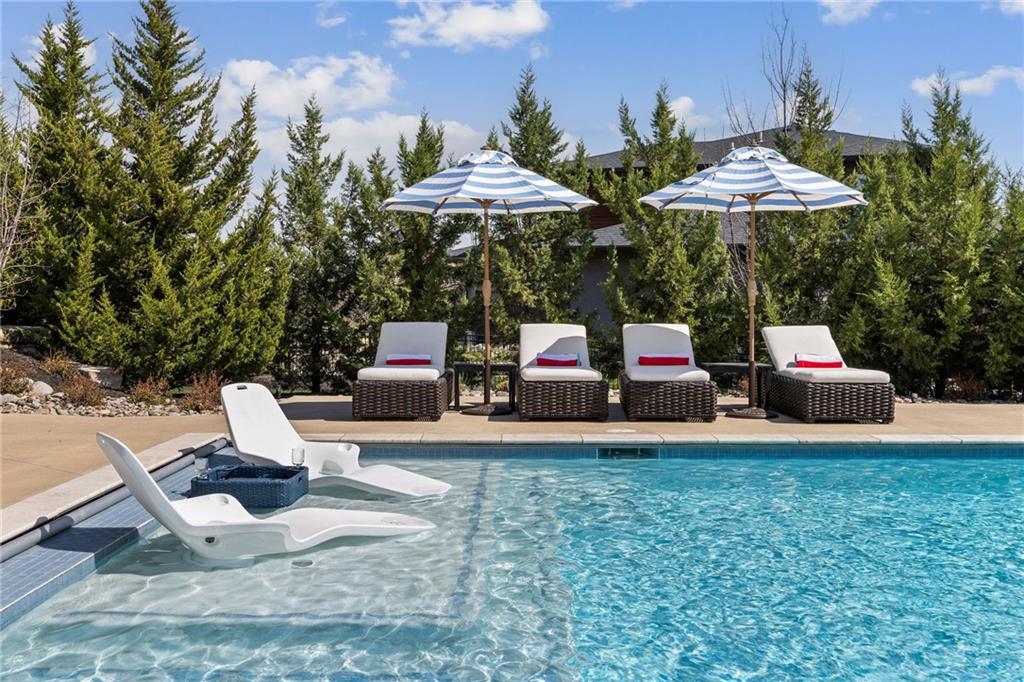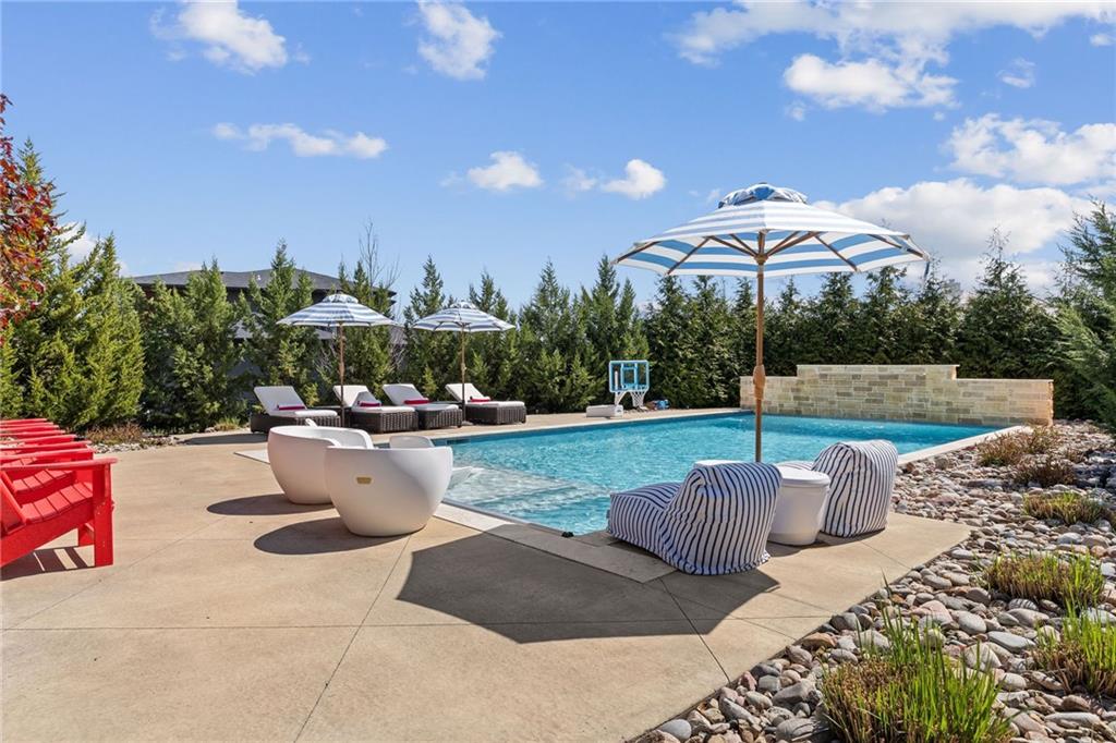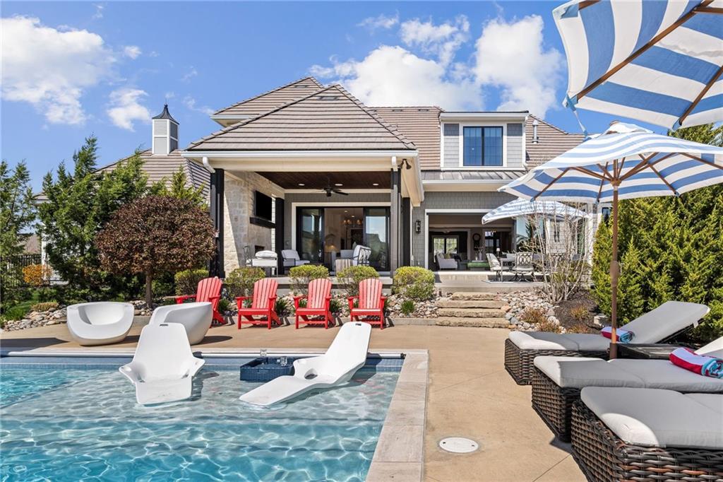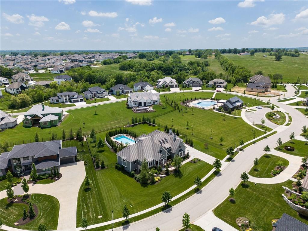 Your DREAM HOME in Mills Ranch in South Overland Park. This estate home offers a truly one-of-a-kind setting. Extensive landscaping ensures incredible privacy on the almost full acre lot adjoining greenspace—a rare find in a suburban neighborhood! Gorgeous 1.5 story home built in 2019 by Todd Hill Homes with high-end design & luxury finishes. Recent upgrades include ALL brand-new, top-of-the-line Pella windows, sliding doors, new carpet, & fresh designer wallpaper in the powder room & primary bedroom. The primary bedroom is a true retreat with ensuite bath featuring a deep soaker tub, & two walk-in closets recently upgraded with custom California Closets. The kitchen features beautiful white cabinets, oversized fridge, & walk-in pantry. Tucked away on this floor is a private office, a spacious laundry room, and a convenient mudroom (or "drop space") with built-in cabinets to hide all the day-to-day "stuff." Get ready to host—this house is perfect for entertaining! Enjoy seamless indoor/outdoor living with massive panoramic sliding doors off the living room. Step outside to the lanai with fireplace, terraced patio, & a top of the line 20x40 saltwater pool! It has all the bells and whistles: a lounge pad, water features, LED lighting—everything you could want! Upstairs, you'll find three spacious bedrooms, each with its own full bathroom. Also upstairs is a massive bonus room that you can use for anything—a second office, game room, or kids' playroom. Finished lower level includes two more bedrooms, 1.5 baths, a custom media wall, pool table area, & seating for everyone to catch the big games. The sleek wet bar features illuminated liquor shelves, a bev fridge, dishwasher, & marble bar that seats six. Don't miss the large, mirrored workout room. This is truly an extraordinary property that guarantees a lifestyle of absolute comfort and luxury. It sits on a quiet cul-de-sac surrounded by other exceptional homes. Don't miss out—schedule your private showing today!