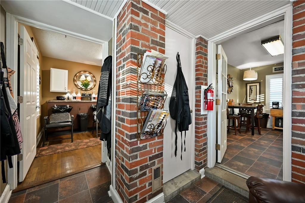 This incredible opportunity in downtown Lee's Summit features a prominent corner lot with street access from both Jefferson and 2nd St. The property currently operates as a salon, offering 4 booth/stylist chairs, and also includes a detached building that accommodates a small business. The zoning is TNZ - Transitional Neighborhood Zone, providing flexibility for various uses. Upstairs, there are two offices with room for expansion or additional creative ventures. Detached office area offers estimated 600 square feet of additional buisness opportunity with large parking lot Commercial Listing See MLS 2608904