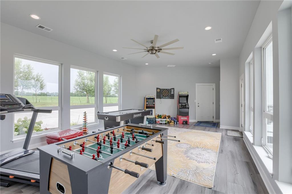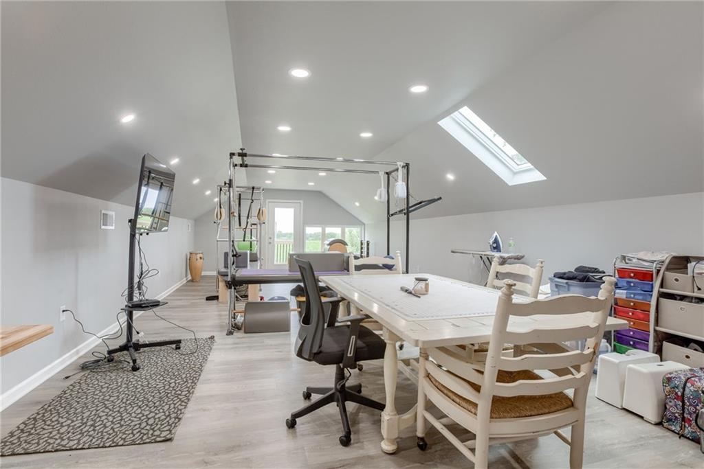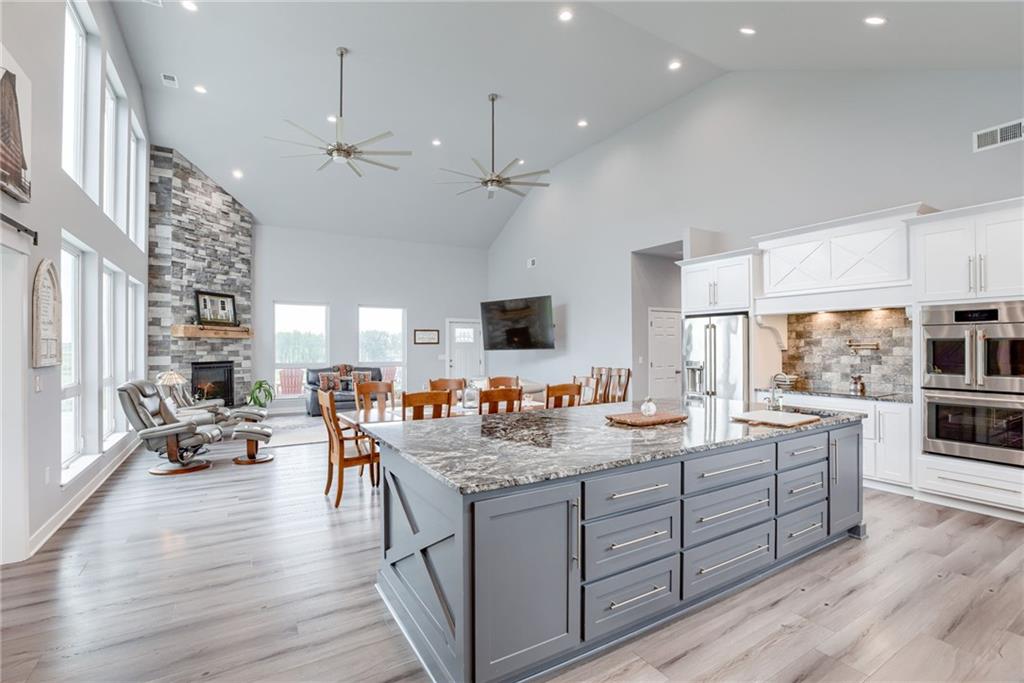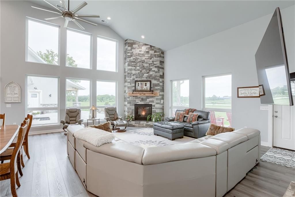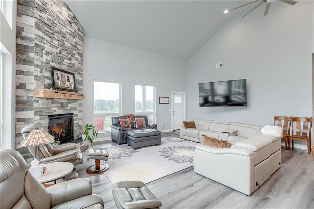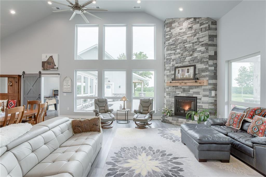 Discover the convenience of this picturesque estate located just off exit 40 in Lathrop MO. This newly constructed home offers over 4400 square feet of livable space and just over 5 acres with and livestock facilities. Ideal for business owners, large families, or those wanting a quick commute to Kansas City or the airport. The stunningly designed home offers 4 bed, four bathrooms, two fireplaces and a massive great room perfect for family living and entertaining guests. Inside there is a blend of marble and high end flooring that adds elegance and durability throughout. The heart of the home features a state of the art kitchen with an 11 foot custom granite island, walk in pantry, and personalized kitchen cabinetry. The expansive concrete driveway and parking pad outside the 4 car garage provides extra parking for additional guests. Additionally the main floor offers oversized hallways and doorways making it completely handicapped accessible. Outside the home there is a 30x40 barn with a fully fenced paddock with water spigots already suitable for livestock or horses. Additional highlights include a vault style safe room, a dedicated office space and an integrated Generac backup generator, ensuring your home remains comfortable and functional in any situation. This property seamlessly combines luxury security and practically practicality making it a true sanctuary. homeowner is also willing to sell adjoining acreage for an cost. Don't miss the opportunity to own this remarkable estate just 30 minutes from Kansas City and the MCI Airport. Schedule your showing today Inexperience all this stunning home has to offer!
