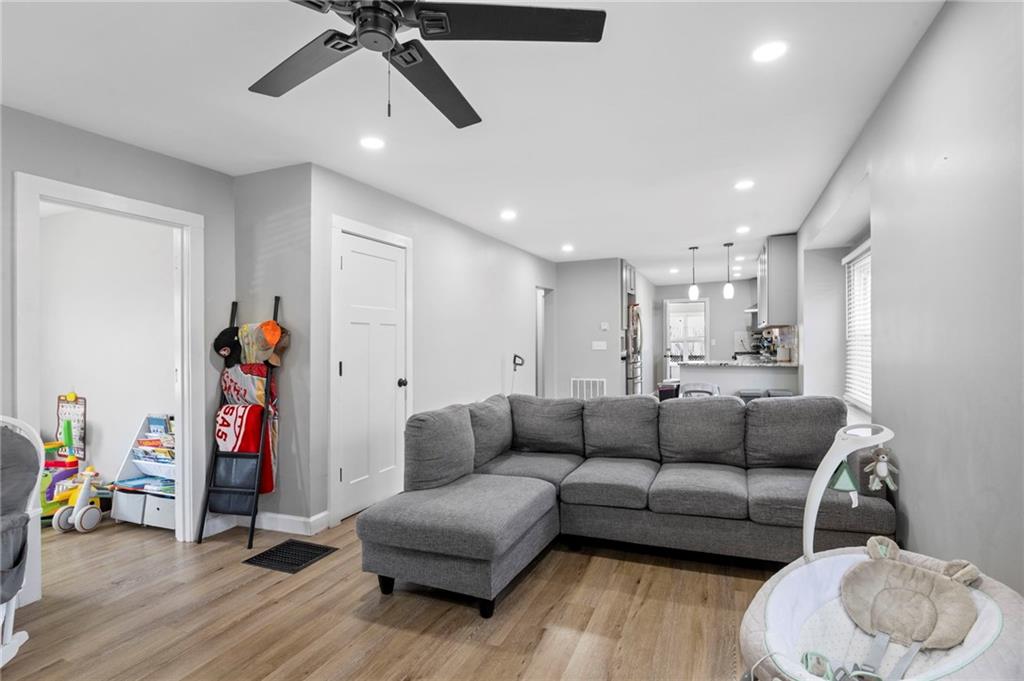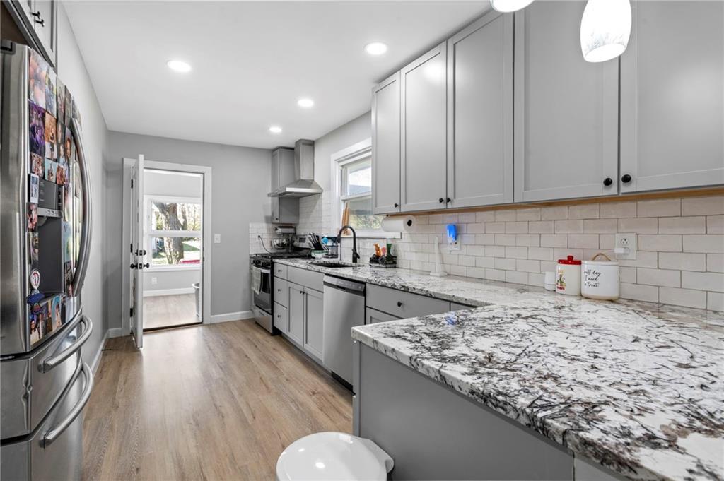 Step into this charming, fully refreshed bungalow that’s bursting with character and ready to welcome its new owners! Featuring three bedrooms and one beautifully updated bathroom, this home blends classic charm with modern touches. Enjoy stylish vinyl plank flooring throughout and an inviting open-concept kitchen complete with stunning granite countertops and sleek stainless steel appliances—perfect for everyday living and entertaining. Just off the kitchen, you’ll find a cozy porch that doubles as a mudroom and laundry space for added convenience. Situated on a spacious corner lot, there’s plenty of room to relax, play, and enjoy the outdoors. This home is the perfect mix of comfort, style, and personality—come see it for yourself!