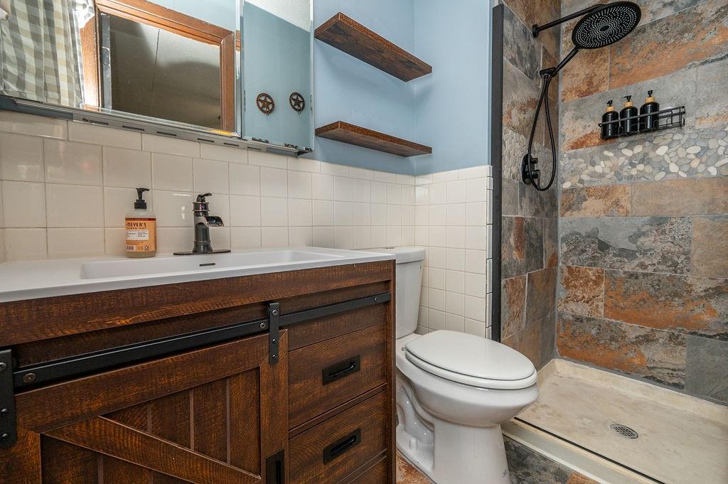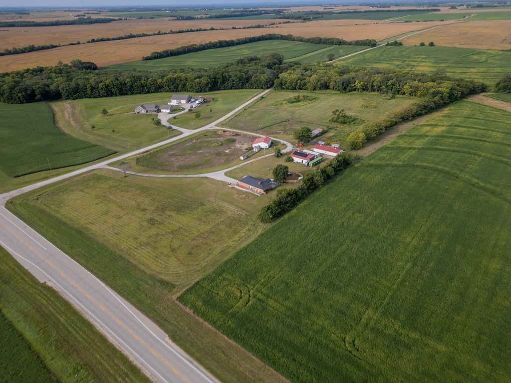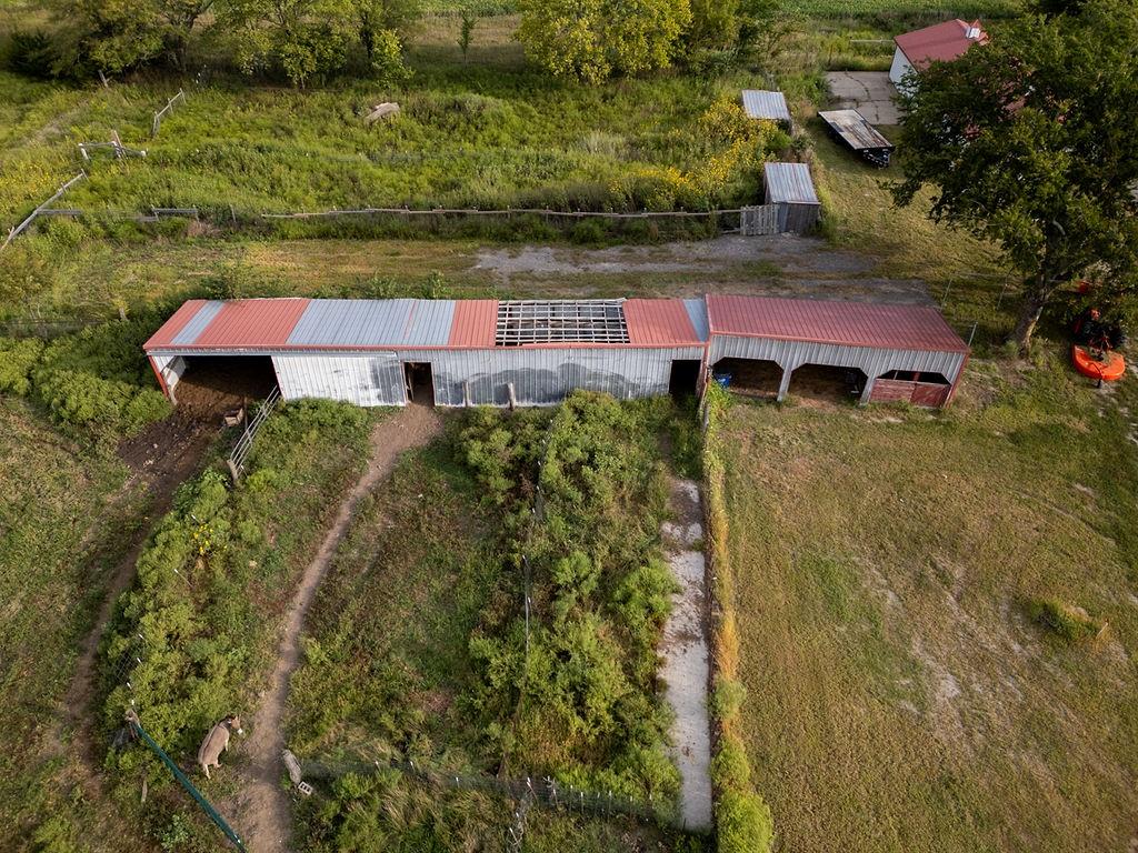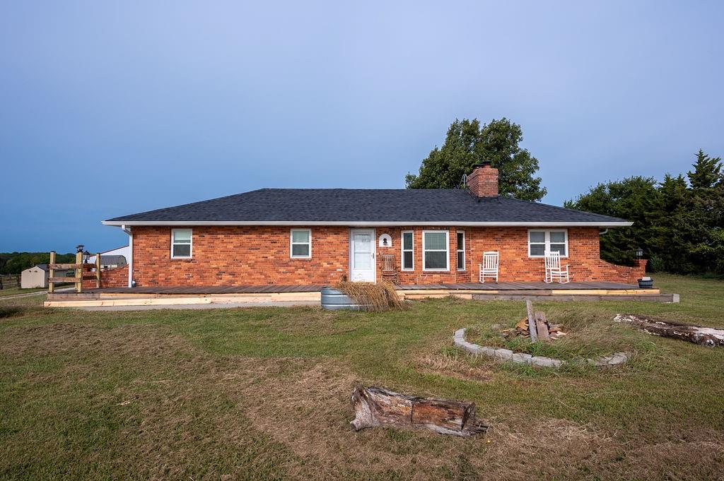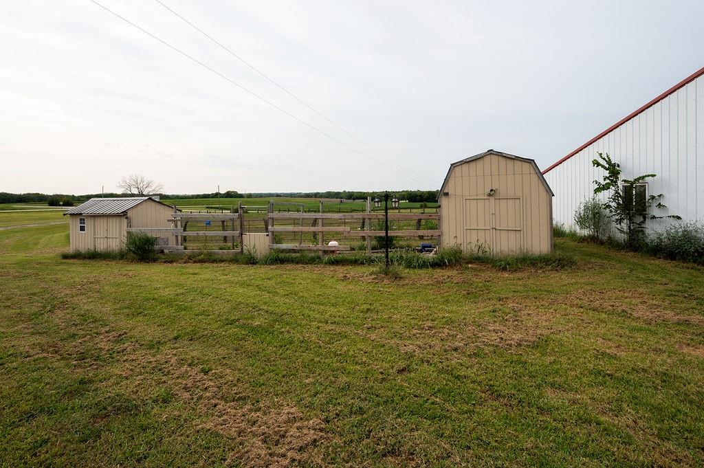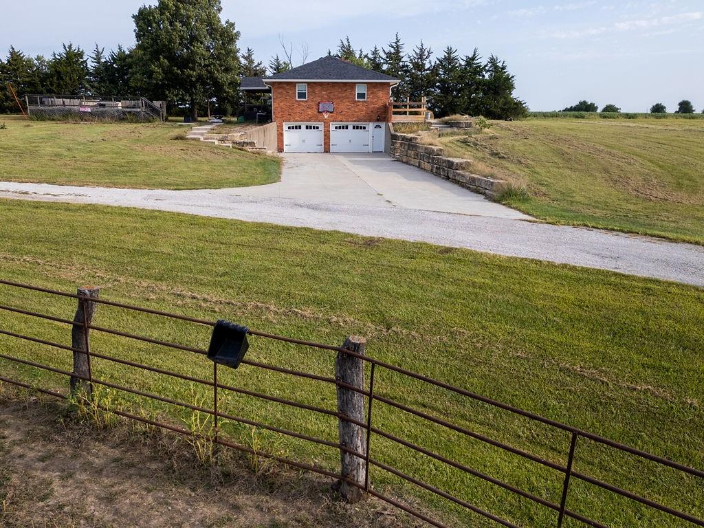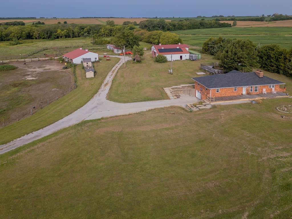 This versatile 20-acre property offers a combination of rural living and functional improvements, featuring an updated brick home and multiple metal outbuildings designed for durability and low maintenance. Conveniently located with access to Leavenworth, Lawrence, and Topeka, the property provides both privacy and accessibility. The land is well suited for horses, livestock, or hobby farming with multiple fenced areas, metal lean-tos within fenced sections, and five water spigots placed throughout the property. Outbuildings include a 60x25 building with water and a half bath, a 25x40 horse barn with five stalls, lean-to and fencing, and an additional 45x35 building. All buildings are equipped with electricity. Situated on a paved road, the property also features a solar panel system designed to help reduce annual utility costs and increase energy efficiency. Additional exterior features include a concrete driveway, sidewalks, rock retaining walls, a covered front porch, and a patio area suitable for outdoor enjoyment. Numerous updates have been completed, offering a property that is ready for immediate use.