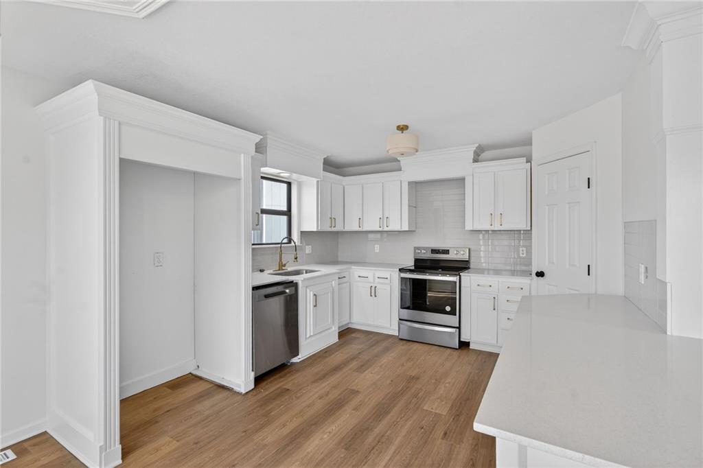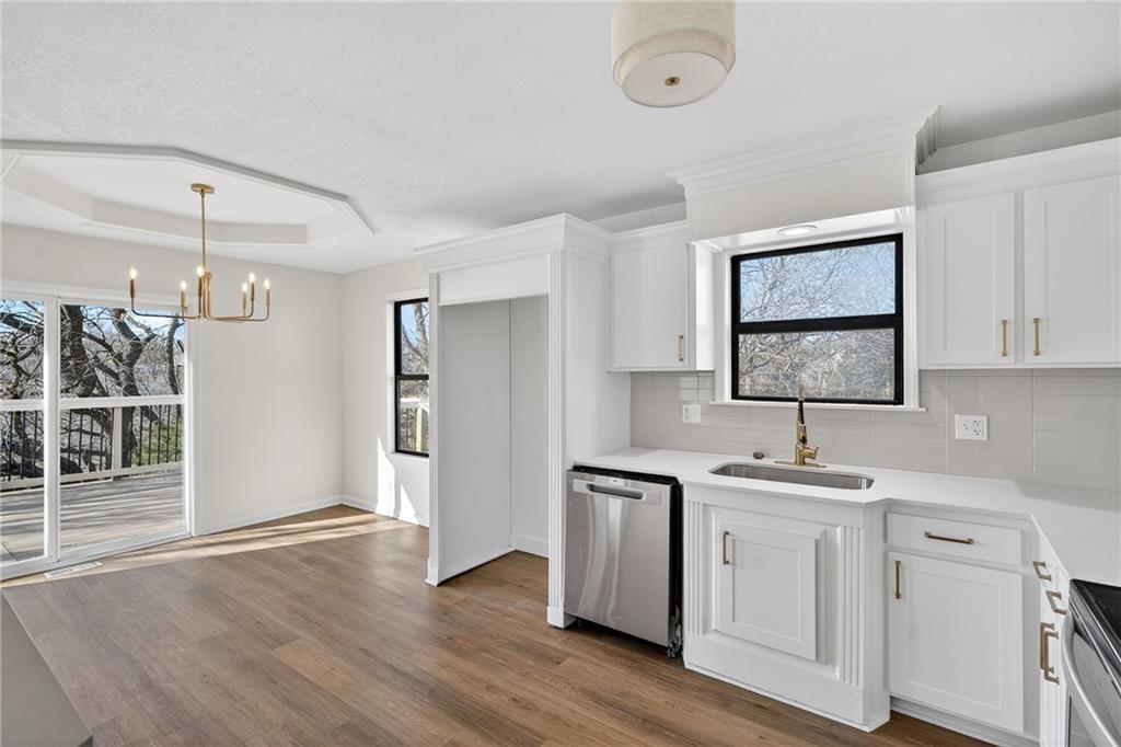 Welcome to this beautifully renovated 5-bedroom, 3-bathroom ranch home offering the perfect blend of modern updates and comfortable living. This home features an open-concept floor plan with stunning finishes throughout, creating a bright and inviting atmosphere ideal for both everyday living and entertaining. Enjoy the convenience of main-level laundry and a spacious 2-car garage. The expansive lower level boasts impressive 12-foot ceilings, providing endless possibilities for additional living, recreation, or entertaining space. Step outside to a brand-new deck and lower-level patio, perfect for relaxing or hosting gatherings, all while enjoying peaceful views as the property backs to mature trees. An added bonus: the home is equipped with solar panels that are fully owned and paid off, offering energy efficiency and long-term savings. Ideally located near schools, shopping, and local amenities, this home offers both convenience and tranquility. A must-see property that truly delivers on space, comfort, and style!