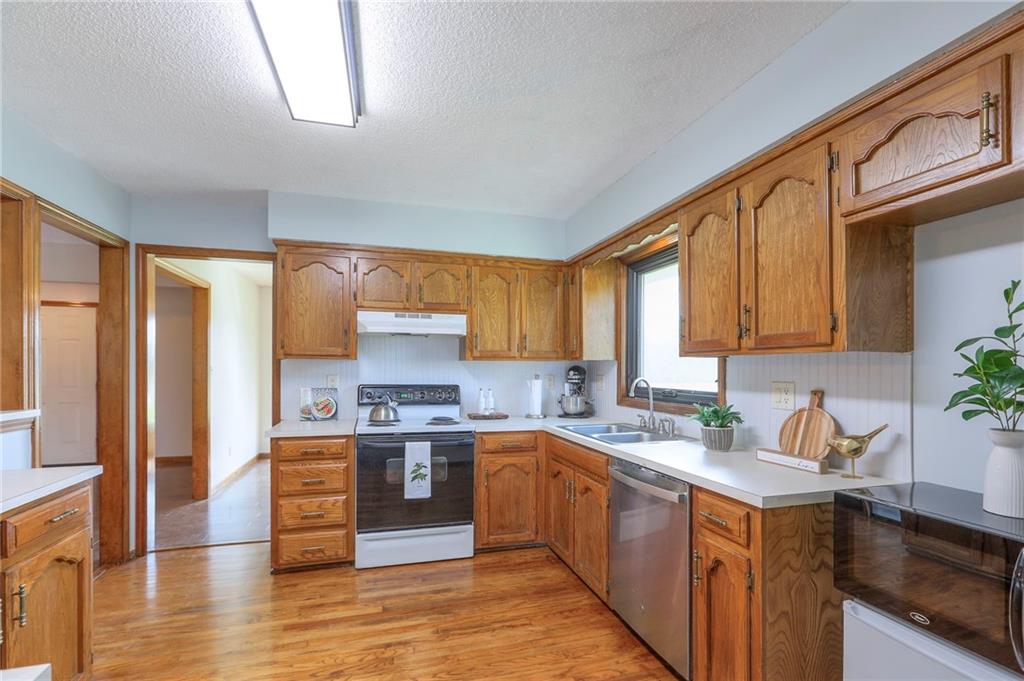 Situated on 4.28 acres, this versatile property offers beautiful outdoor features and plenty of space to enjoy country living. The large stocked pond with dock is perfect for relaxing or fishing, and the 35 x 40 outbuilding includes a new roof, office space, concrete floor, and electricity — ideal for a workshop, storage, or hobbies. Inside, the home features an open floor plan with plenty of room to spread out. The main level includes a formal dining room, living room with fireplace, kitchen, and a large family room that opens to a spacious new deck. Bedrooms and bathrooms on the main level have been recently updated, and there is a convenient main-level laundry room. All windows were replaced in 2019. The finished walkout lower level provides even more living space, including a large family room, second laundry room, and garage access. Two large non-conforming bedrooms downstairs offer great flexibility for guests, office space, or hobby rooms. With generous indoor and outdoor living space, this property offers room to live, work, and play — all in one place. Buyers and buyer's agent to confirm taxes, room sizes, all information and school districts.