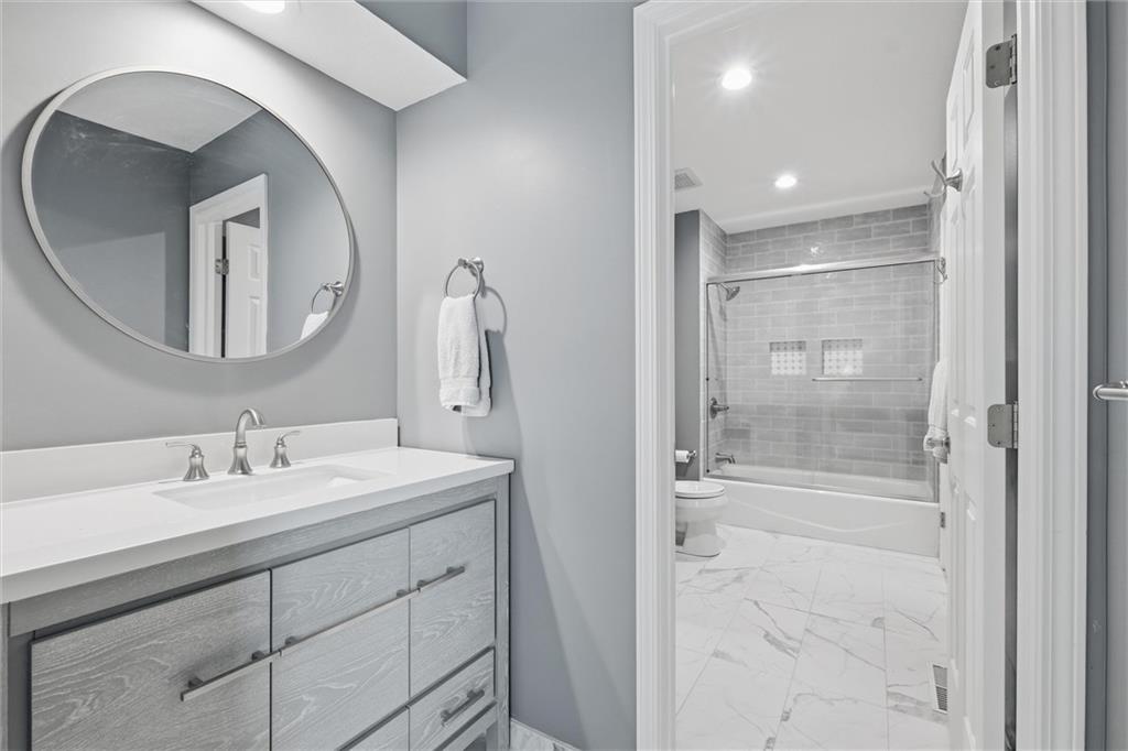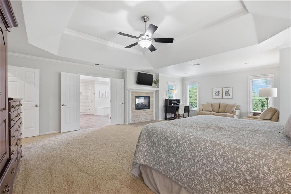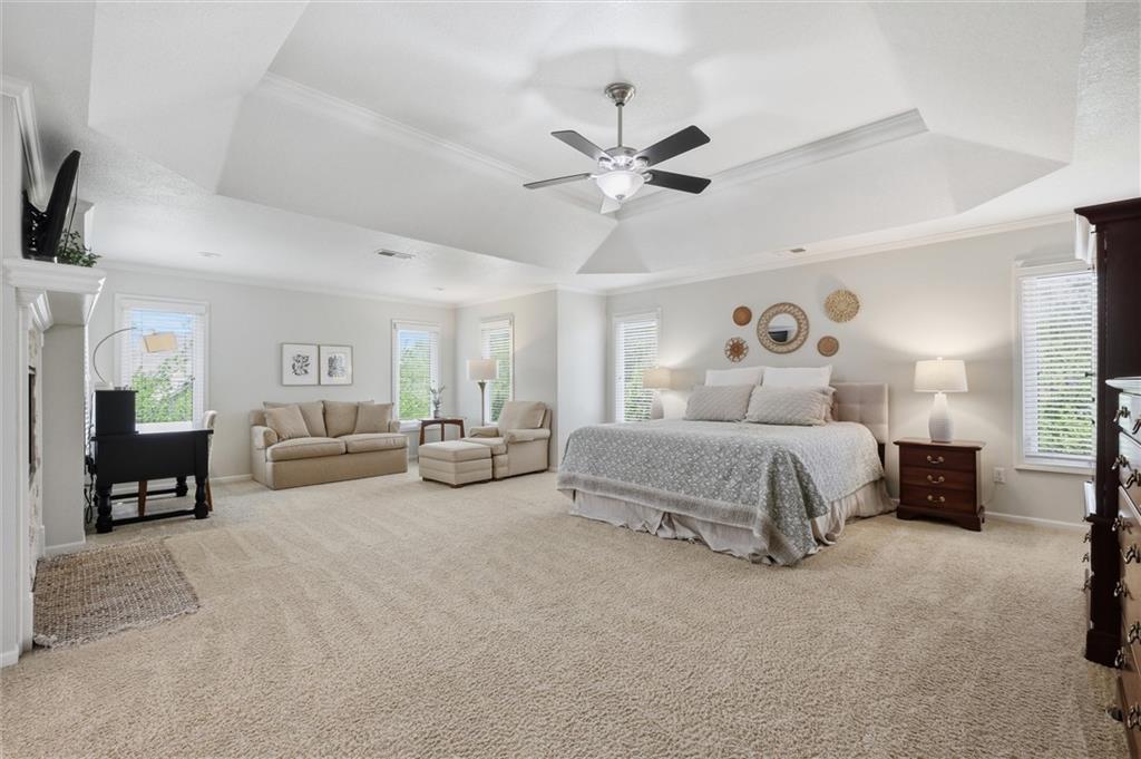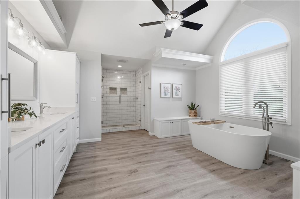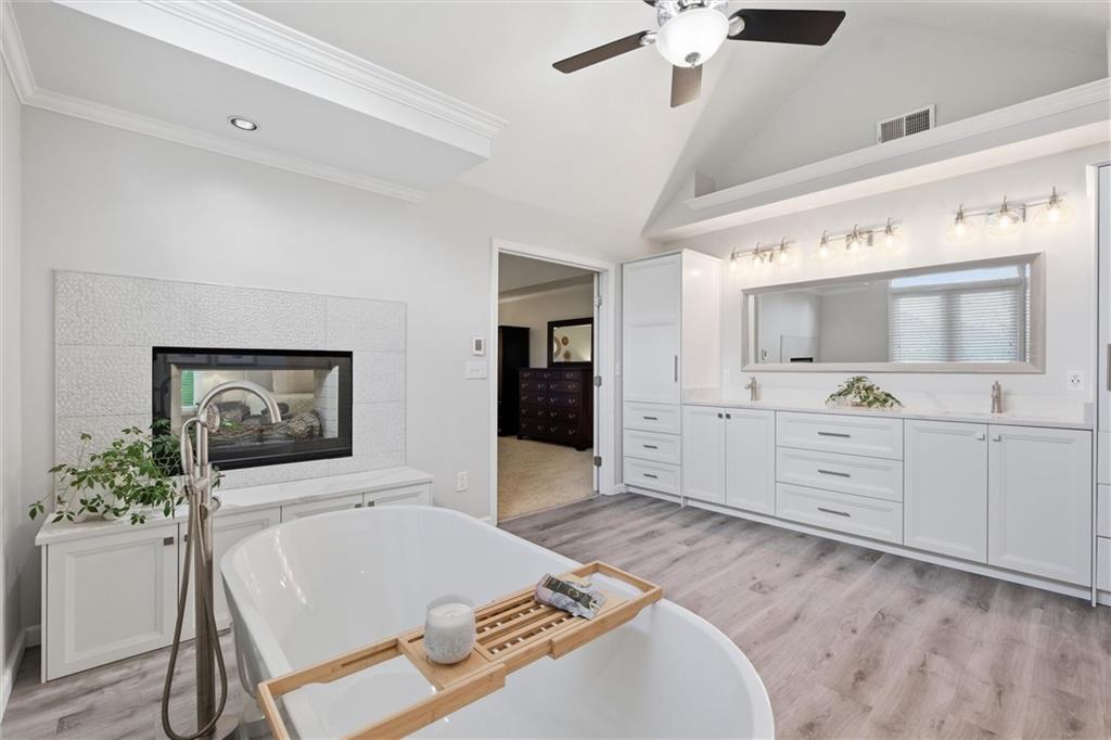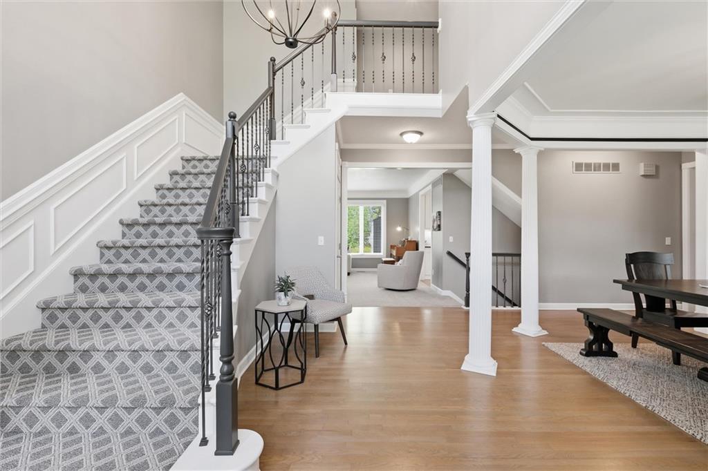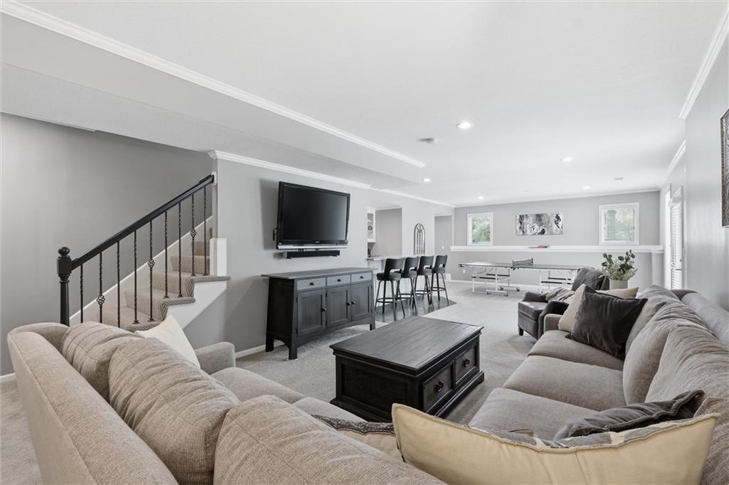 Stunning 5-bedroom/4.5 bath Nottingham by the Green 2-story home on a half-acre cul-de-sac lot! 5100+ square feet! Updates throughout--no room untouched--and meticulously maintained! Remodeled primary bathroom with stand-alone tub and heated floors, Remodeled secondary bathrooms (including new full bath in the basement), Updated Beautiful Kitchen, Remodeled laundry room w/ sink, Newer Windows, Updated lighting throughout and SO MUCH MORE! NEW HVAC (2023) & Roof & Gutters (2024)! Covered deck with fireplace, Side-entry 3-car garage, Cul-de-sac, main floor office with built-in shelves and main floor formal dining. Front and back staircases! Walk-out finished basement has updated wet bar, large family room space, 5th bedroom, full bath and extensive storage area! Updated lower-level patio with new paver stones and second outdoor living space! Enjoy wonderful neighborhood lifestyle with resort-style amenities including a pool with water slide and diving board, tennis and pickle ball courts and convenient access to shopping, dining, and top-rated schools. Nothing to do but MOVE IN!