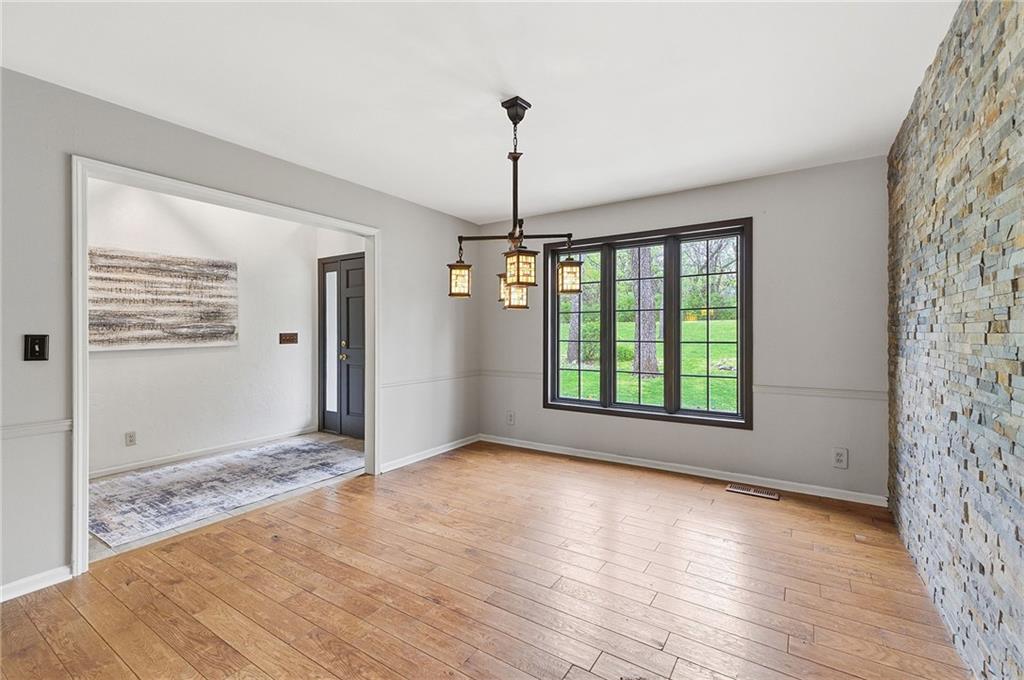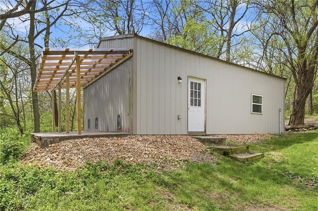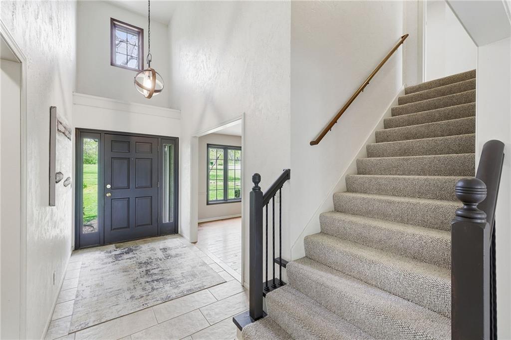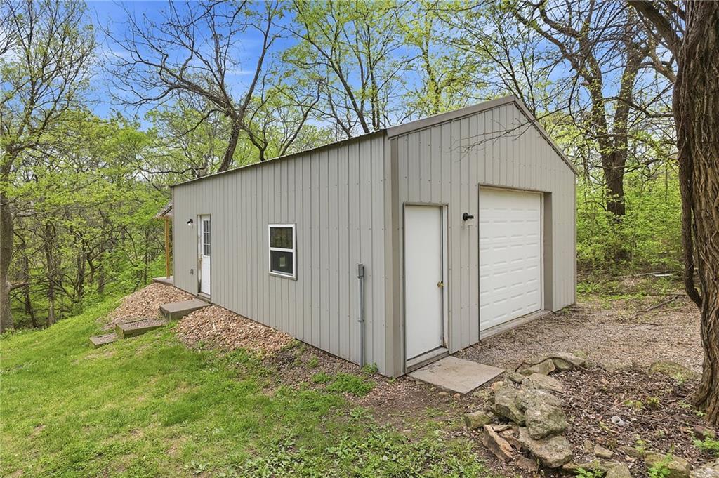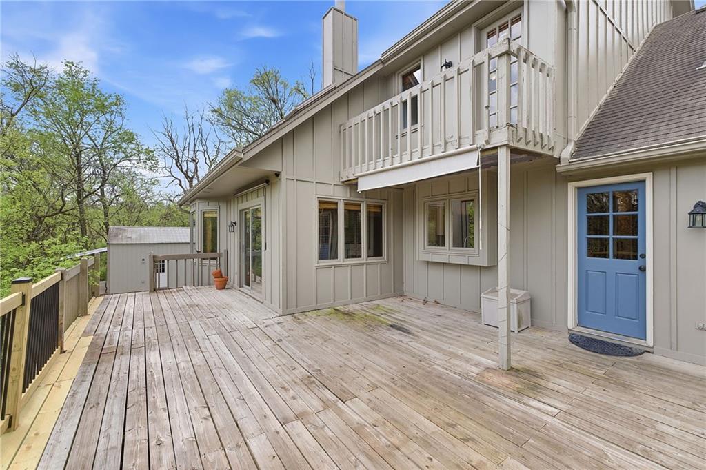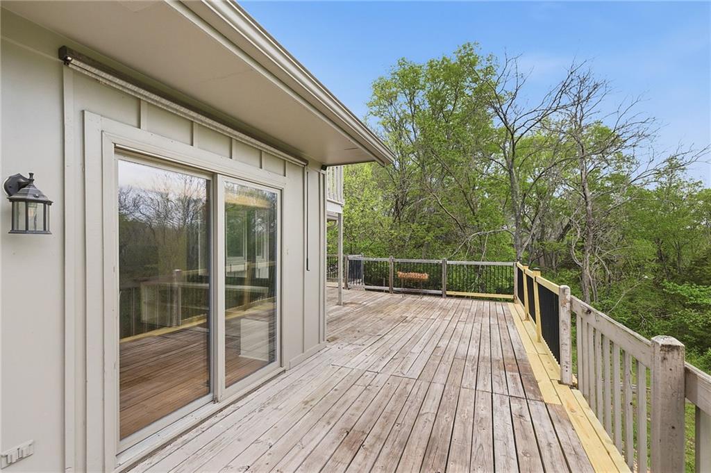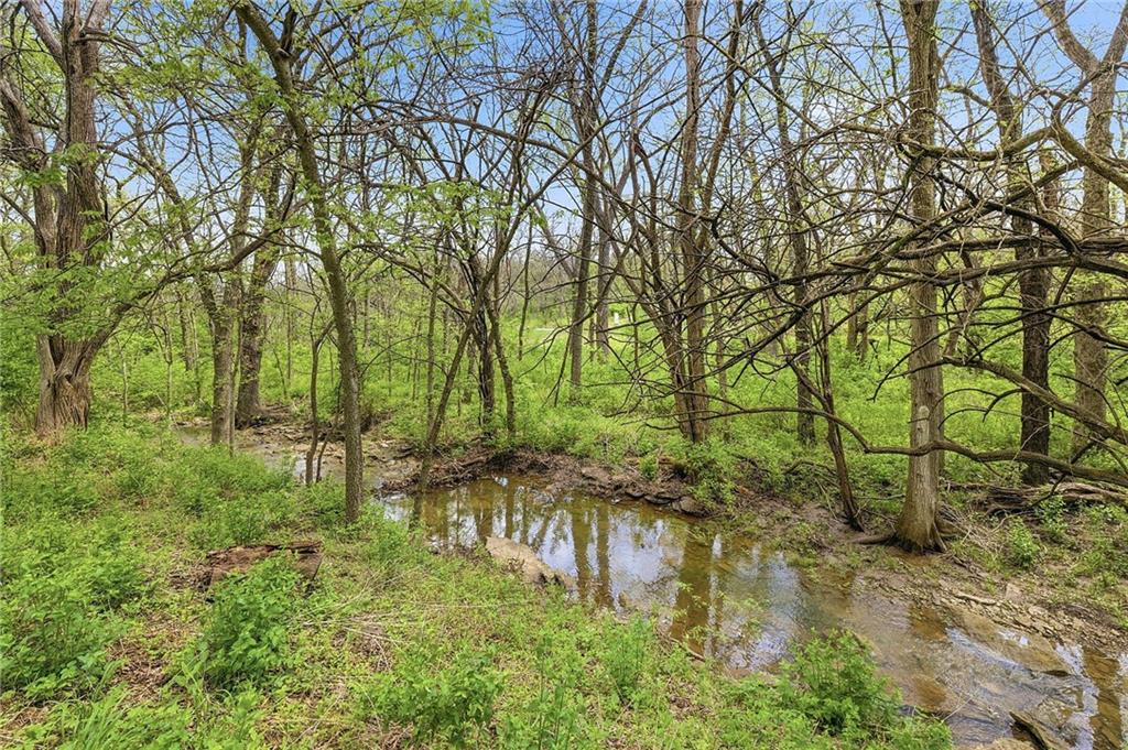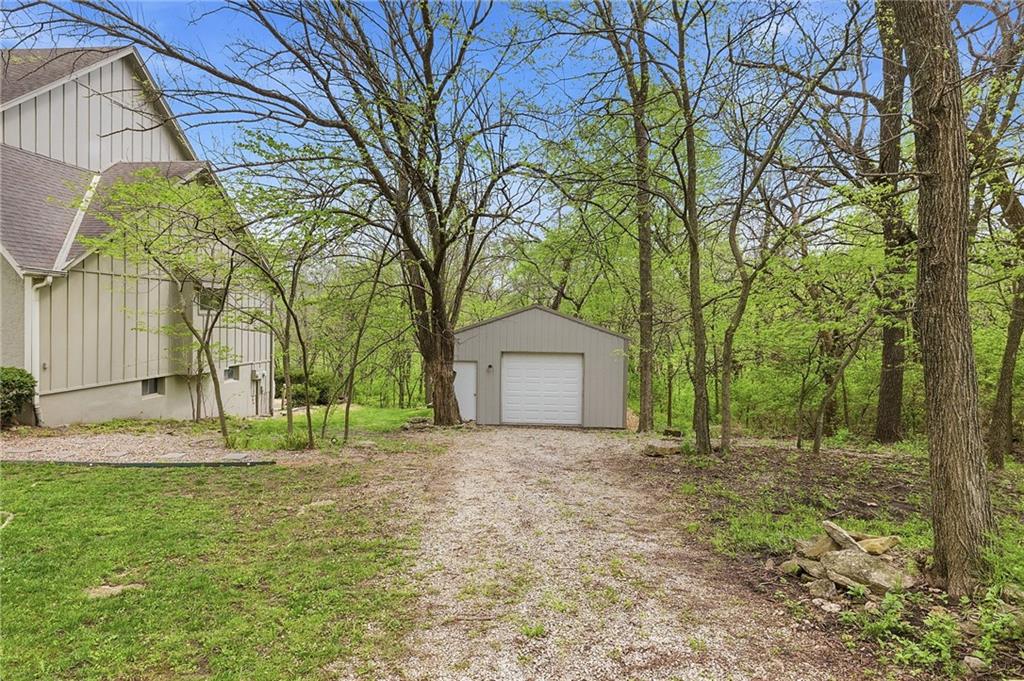 Nestled on a sprawling 1.24 acre wooded lot this stunning 1.5-story home offers the perfect blend of natural serenity, wildlife and sophisticated living. The main level is a host’s dream, featuring a formal dining room, a sunny breakfast area for casual mornings, a cozy hearth room, and large great room all flow together to create the perfect environment for entertaining. Imagine cozy evenings anchored by the fireplace or mornings on your private deck overlooking a peaceful creek and mature trees. The home features a spacious main floor primary suite, while the second level is thoughtfully designed with three large bedrooms, including one complete with its own private bath and walk-in closets. To maximize productivity and versatility, the upper level also includes a dedicated office space, offering an ideal setup for working from home or a quiet study library.The living space extends into a massive walk-out finished basement, providing the perfect footprint for a media room or recreation hub. Beyond the main home, the property is a dream for the hobbyist, featuring a large pole barn perfect for a workshop or additional storage. Located in the award-winning Blue Valley School District, this is a rare opportunity to own a private acreage retreat that perfectly balances grand entertaining with a peaceful, wooded escape. Welcome Home! Taxes and SqFt per county record. Room sizes approx. No preferences or limitations or discrimination because of any of the protected classes under Fair Housing.