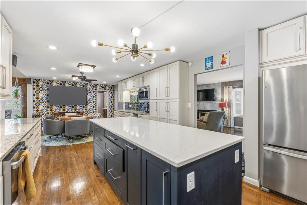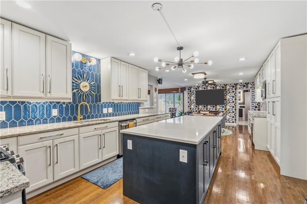 Is there a 4-bed ranch in Excelsior Springs with acreage, modern updates, and space to entertain? This beautifully updated home offers over 3,500 finished sqft on the main level, set on 1.5 acres with expansive indoor living, curated outdoor spaces, and rare features including a 3-car garage and 30x30 barn. Welcome to this 4-bed ranch home in Excelsior Springs under $600K, a fully updated mid century modern retreat designed for both everyday comfort and elevated entertaining. Spanning over 3,500 sqft on the main level, the home features a newly expanded kitchen with quartz countertops, new cabinetry, updated appliances, and a large island that opens seamlessly to the living room with a wood burning stove. A generous dining room accommodates large gatherings, while the all seasons room doubles as a greenhouse and opens to an expansive patio and deck. The main level also includes a laundry room with half bath and a versatile bonus room ideal for an office, craft space, or study. The private primary suite offers a spacious bath and abundant closet space, complemented by three additional large bedrooms and a total of 3.5 baths. The unfinished basement provides excellent storage and includes a secondary kitchen for canning or extended cooking needs. Situated on 1.5 acres, the outdoor experience is unmatched with lush, resort style front landscaping, a trellis seating area, and a backyard oasis featuring multiple patios and decks, walking trails, garden beds, a pond, and a chicken coop. Additional highlights include a 3-car garage and a 30x30 barn for equipment, hobbies, or extra storage. This 4-bed ranch home in Excelsior Springs under $600K offers a rare blend of modern updates, acreage, and lifestyle flexibility.