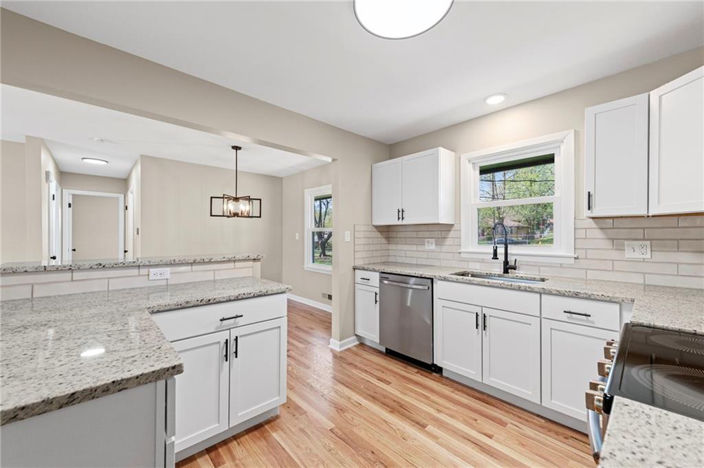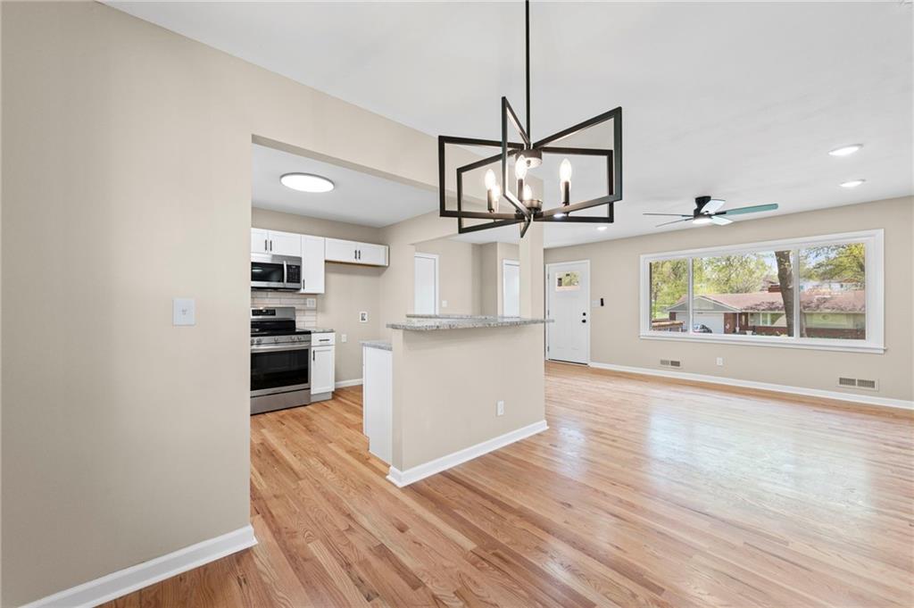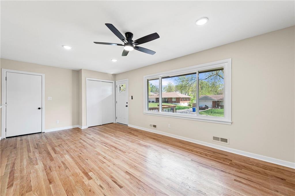 Fully remodeled true ranch in the heart of Gladstone! This 3-bedroom, 2-bath home offers the perfect blend of modern updates and functional living. The main level features all-new hardwood floors and abundant natural light through brand-new windows. Both bathrooms have been fully renovated with stunning walk-in showers, featuring tile from floor to ceiling for a sleek, high-end finish. The finished basement includes a spacious bedroom with a walk-in closet—ideal for guests, a private suite, or home office—plus a versatile bonus room that can serve as a 4th non-conforming bedroom, craft room, game room, office, or flex space to fit your needs. With thoughtful upgrades throughout and a prime location, this move-in-ready home is one you won’t want to miss!
