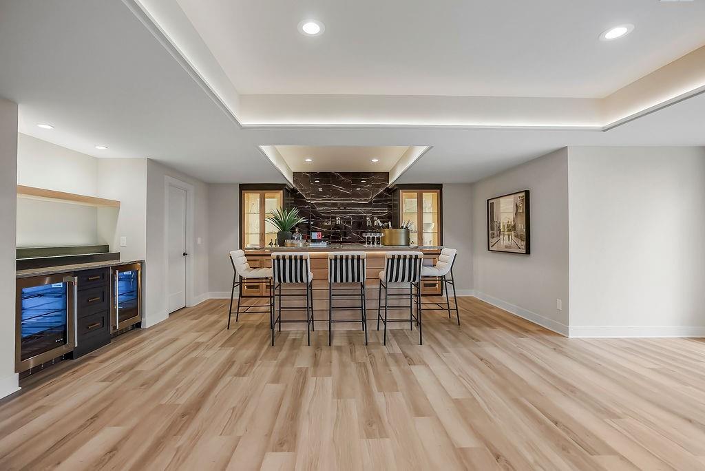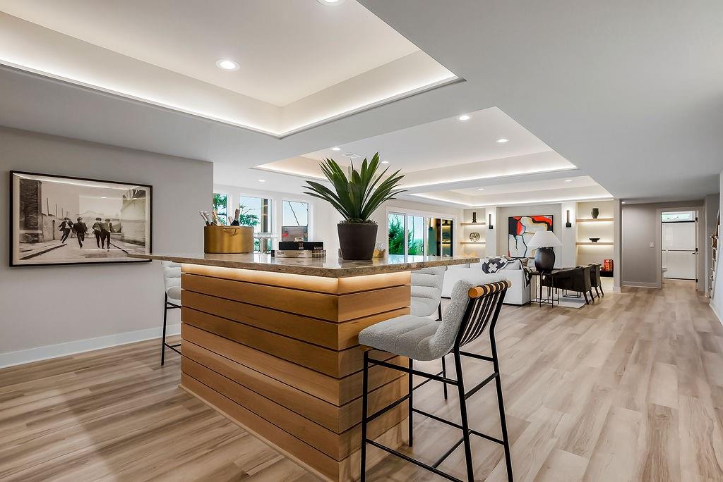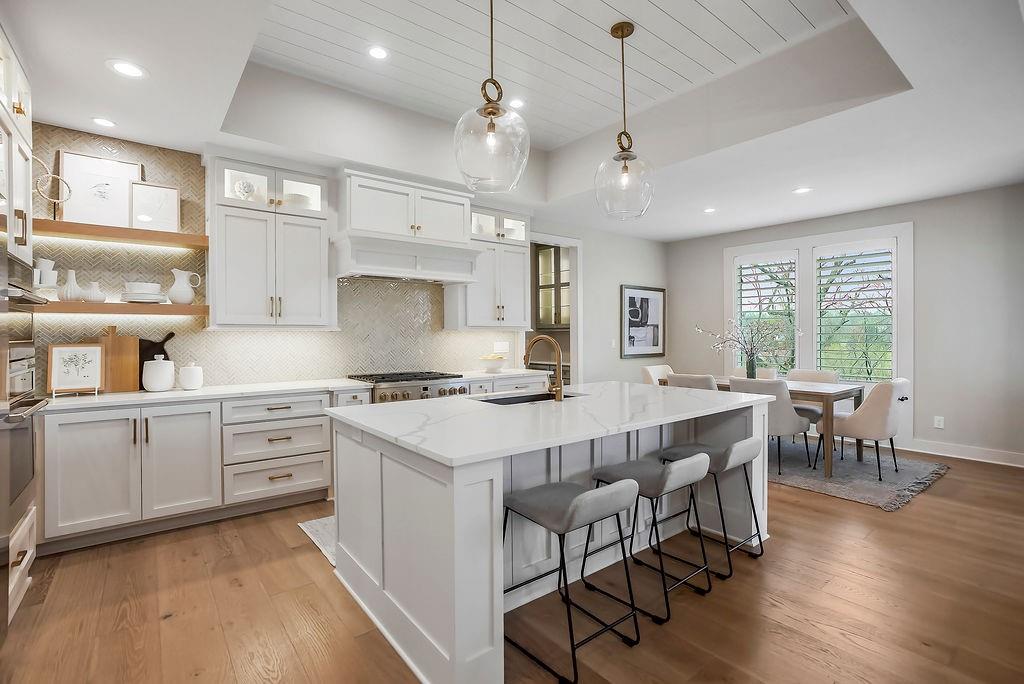Like New and perfectly positioned on a premium lot backing to the award-winning Shadow Glen Golf Course, this stunning reverse 1.5-story home offers the ideal blend of luxury, comfort, and thoughtful design. With 5 bedrooms and 4 full baths, this home is crafted with beautiful details throughout. The main level features a spacious primary suite with a spa-like feel, complete with a walk-in closet that conveniently connects to the laundry room. Two additional bedrooms are located on the main level, including one with its own private bath—perfect for guests or a home office. The heart of the home showcases a large quartz-topped island, expansive pantry, and open living spaces designed for both everyday living and entertaining. The walkout lower level is an entertainer’s dream, featuring a full bar area, generous recreation room, plus two additional bedrooms and a full bath. You’ll also find two separate storage areas, including a storm shelter for added peace of mind. Step outside to take in sweeping golf course views overlooking Hole #5, creating a serene and picturesque backdrop. Whether hosting gatherings or enjoying a quiet evening at home, this property offers the perfect setting. Welcome home.