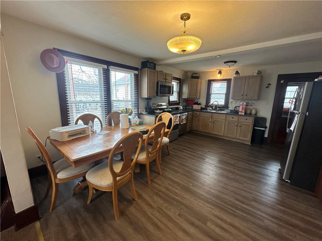 This charming 2-bed, 1-bath home sits on a corner lot and is packed with updates! Featuring a screened-in front porch, updated flooring, and a beautifully refreshed kitchen with new cabinets, countertops, and stainless steel appliances. Home also features: Replacement windows, Newer HVAC, Steel siding freshly painted (2025), Silicone-coated flat roof, Chimney tuck-pointed, and the east basement wall was replaced. Stackable washer & dryer included. Detached garage Move-in ready and conveniently located close to campus—perfect for homeowners or investors!