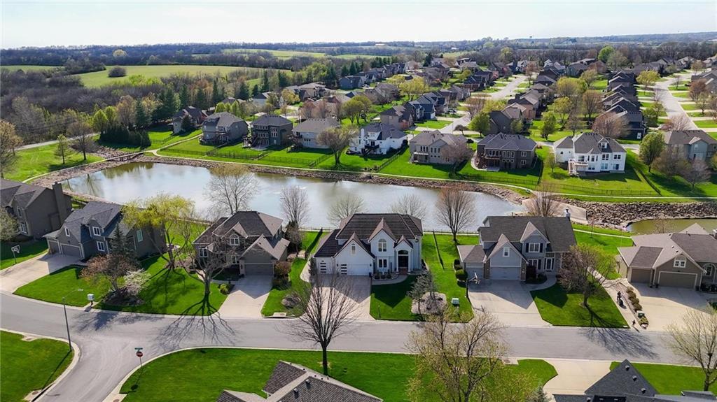 A seamless blend of timeless class, modern design, & everyday convenience, this stunning 2-story home offers 4 bedrooms, 3.2 baths, & style that lives as beautifully as it looks. Perfectly positioned with a stunning view, you are welcomed with exquisite, tasteful landscaping that sets the tone. Inside, gorgeous tile flooring flows throughout main level, connecting the great room, dining area, beautifully appointed kitchen, & main-floor laundry. The great room features a striking see-through fireplace, creating warmth & character while enhancing the open, connected feel of the space. The kitchen is thoughtfully designed with stainless built-in appliances, combining function & sophistication. Upstairs, the home continues to impress with a well-designed layout complete with new carpet & offering a private primary suite retreat & 3 additional bedrooms. The primary suite provides a peaceful escape featuring his/hers vanities, separate shower, jetted tub & two walk-in closets, while two bedrooms share a well-appointed Jack-and-Jill bath. The fourth bedroom enjoys its own private en-suite, creating the perfect setup for guests or independent living. Step outside to a covered composite deck & take in peaceful views overlooking one of the subdivision ponds — a perfect backdrop for the perfect backdrop. The 3 car garage...frankly deserves its own fan club. This incredible space is outfitted with epoxy floors, sink, built-in refrigerator, wall of cabinetry, insulated garage doors, and mini-split system for year-round heating & cooling.The walkout lower level is an entertainer’s dream, complete with tile floors, ice machine, built-in refrigerator, built-in oven, additional full bath, & ample storage. A major bonus? The home is equipped with a durable 50-year stone coated steel roof, offering long-term peace of mind, energy efficiency, & exceptional resistance to the elements. Ask us about a seller paid 2/1 rate buy down -- Buyer win for a huge monthly savings for 1st 2 years.