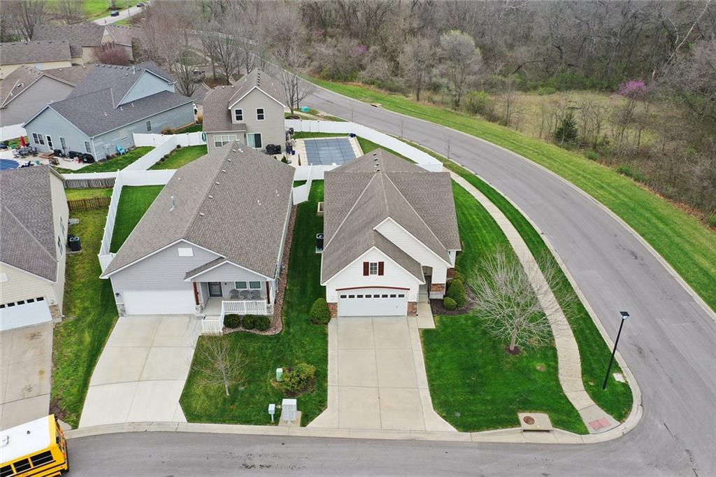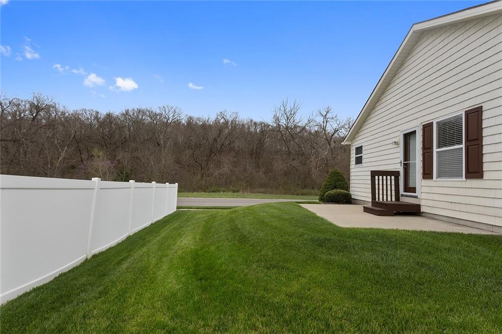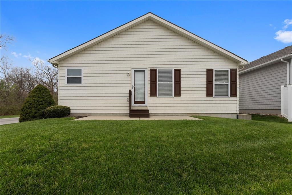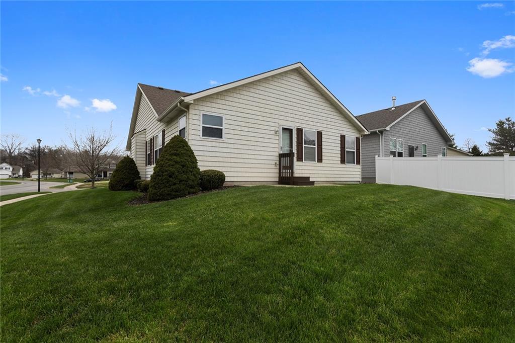 BEAUTIFUL! Such a lovely home! Cute corner lot on a cul-de-sac speaks of charm and meticulous care. Front steps lead up to a covered entry. The entry has a convenient coat closet. Straight ahead, the Great Room features a ceiling fan, stylish fireplace with circulating fan, lots of windows offering natural light, and modern light fixtures. To the left of the Great Room are two bedrooms: one with ceiling fan (the other is wired for one) and nice closets in both. Also, a full bathroom with tub/shower combo, and a linen closet. Stepping further in, past the dining space, is an awesome kitchen! Contrasting black appliances with white cabinetry, this space is well done. Island with storage, tons of cabinet space, and a well-laid-out pantry. Head out the back door from the kitchen to the stairs leading down to a lovely patio area, green space, and partial fencing. To the left of the kitchen is the master bedroom, spacious, with a ceiling fan and an en suite bathroom featuring a shower, and a large walk-in closet (6 ½ x 8) with a built-in safe for storing valuables. That’s the main floor! Head down the carpeted stairs to a grand, unfinished space just waiting to be created and used! Rough-in for a bathroom, a possible bedroom, and a bonus room. So many features here: reinforced joists, egress window, sump pump and backup sump pump, surplus emergency drinking water tank, tornado shelter, an April Air humidifier, an almost new high-end Goodman furnace, and almost new high-quality water heater. If that’s not enough, check out the garage! Here you will find an 8-foot door, high ceiling, hot-water sink, bright fluorescent lights, and a coated flaked epoxy floor that looks brand new. The garage door opener has recently been inspected and many parts updated/repaired. Outside, there is a programmable irrigation system to follow your schedule. HOA covers snow removal and common space maintenance. A REAL STUNNER! Come see it soon!