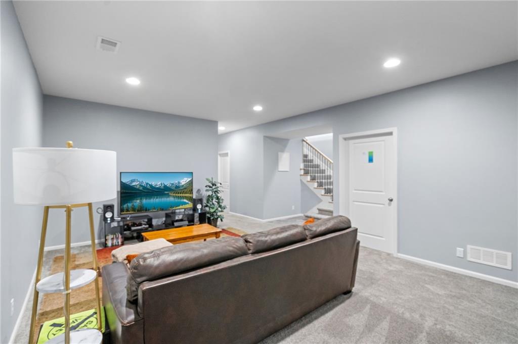 Stunning Ranch/Reverse home that features beautiful wood floors on the main level, open floor plan and kitchen with granite countertops, kitchen island, stainless appliances including a gas cook top that all remain with the home, white cabinets and pantry. Spacious primary suite that provides a wonderful walk in closet with lots of space, adjoining bathroom that features a double vanity, multi-headed shower and tiled floors. Finished basement with large rec room with wet bar and two additional bedrooms. Enjoy your fenced in backyard with a large patio space that is great for entertaining and includes a fire pit. Hurry this one will not last long!!!