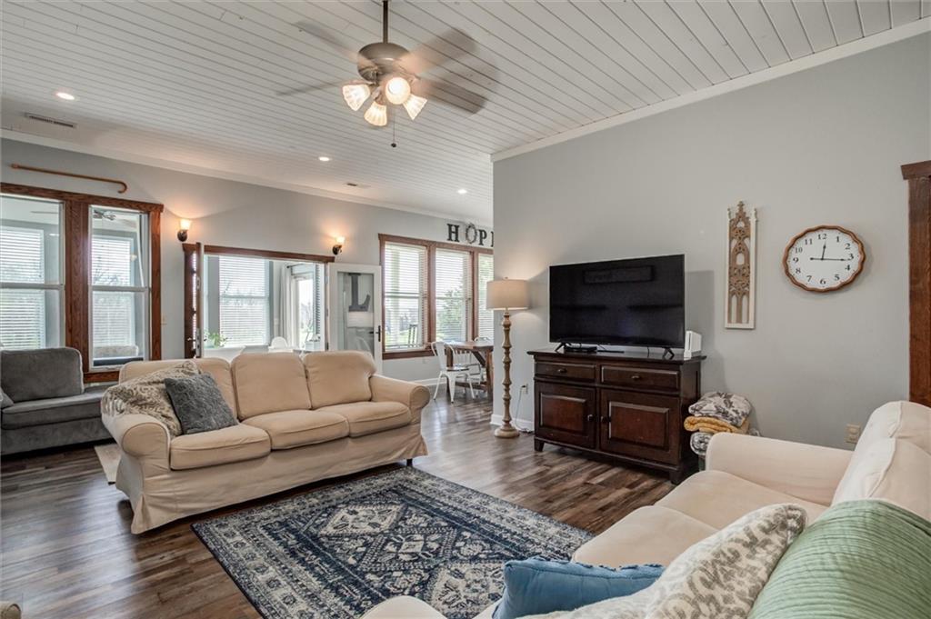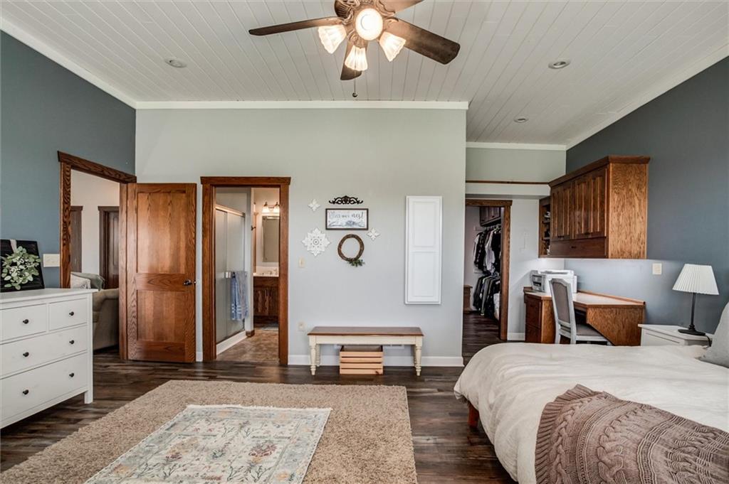 Whoa! This is the one you've been waiting for! Ranch home, outbuilding on 37.8 fenced acres! Built in 2007, this 2,188 sq ft. custom built 4 bdrm, 2 full bath, no steps, RANCH. Soaring 10 ft. ceilings, loads of natural light, open, modern floor plan with high end fixtures, flooring and details. Generous room sizes, delightful sun porch, custom cabinets and solid wood trim and doors, humongous pantry, Corian counter tops, see through cabinet showcase built-ins...the list goes on an on! Roof only 5 years old, 2 yr old HVAC, dishwasher is less than a year. Dining room holds table that seats 10! Property has a fantastic 30'x40' metal outbuilding w/concrete floors & 200amp box, two garage doors on one side and a lean-to on the other. This land...there's two tracts being sold here, a 32.5 and a 5.3 acre plat. There's two entrances, a small pond, chicken coop, some electric fencing in pastures. Orchard producing peach, apple, pear trees, persimmons, too! Walking trails and four wheeler trails throughout property! It's really beautiful! Peaceful, country living just minutes from downtown Holden (@10 min), 25 min to Warrensburg and about hour from Kansas City International Airport. No HOA so build what you want on this sprawling acreage. Great for hunting, cattle, and much more!