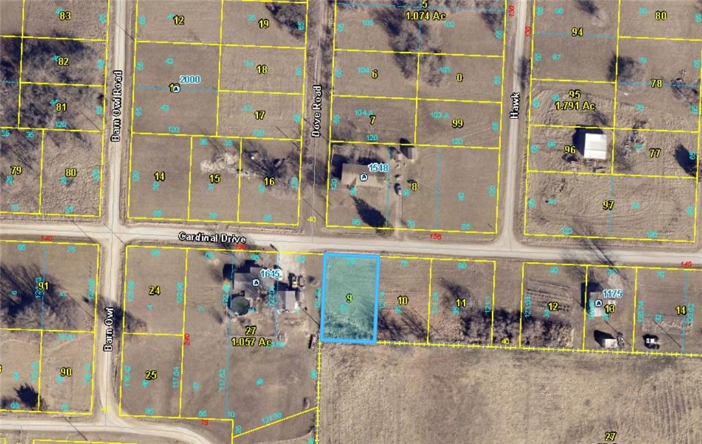 From Odessa, head south on 131 Hwy, turn right on Mt Tabor Rd, Right on Lakeshore Dr, left on Cardinal Dr. Property is SE corner of Cardinal and Dove