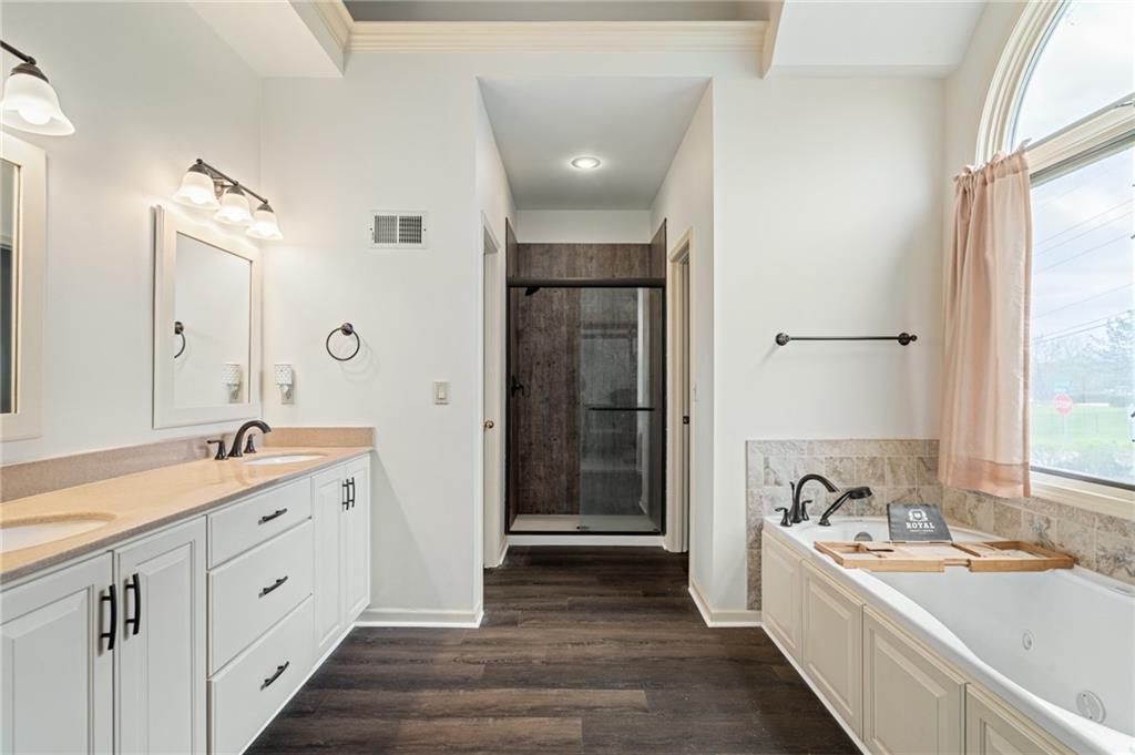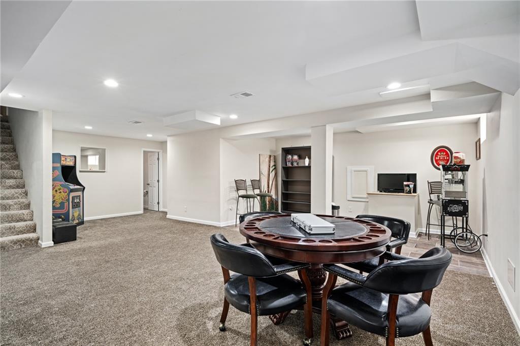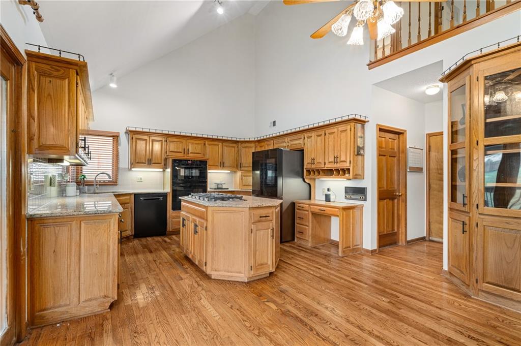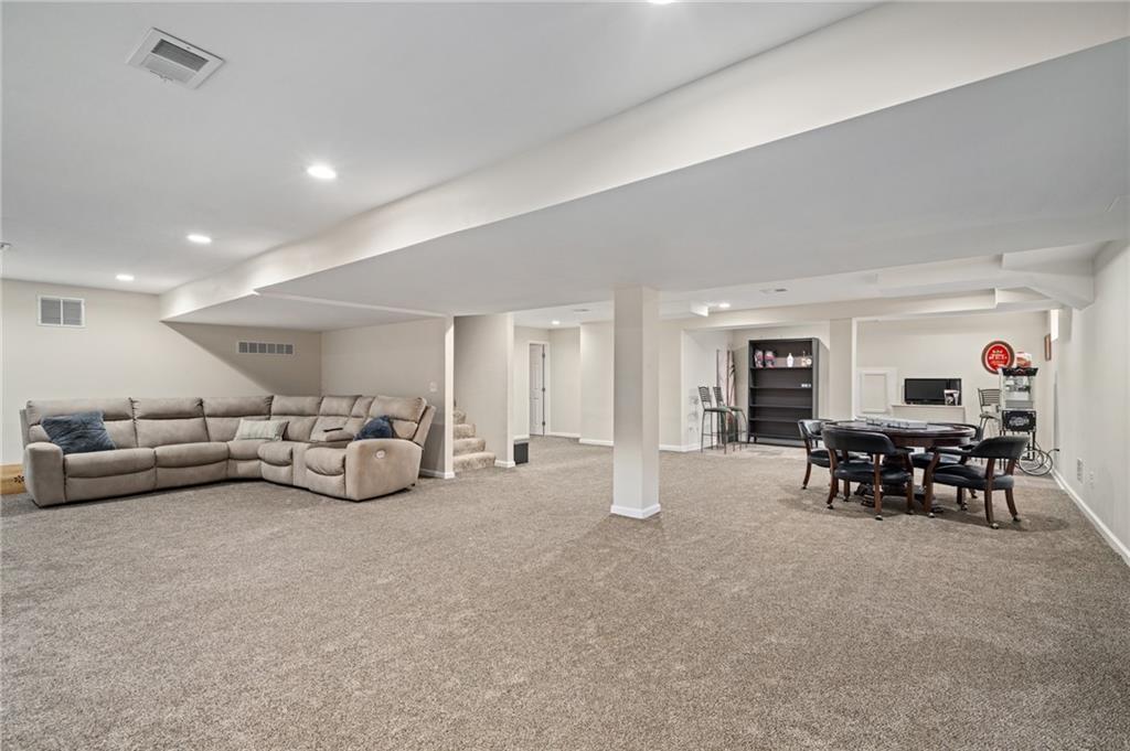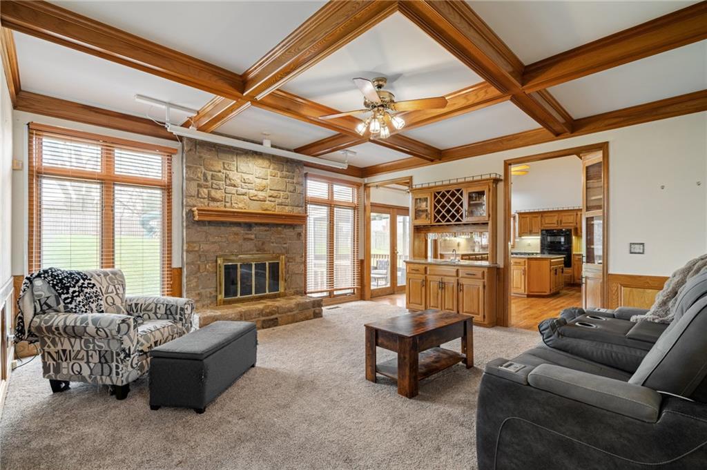 Main Level Living in Highly Desirable Lakeview Estates! This spacious 1.5 Story offers a convenient layout with the Primary Suite, Laundry Room, and Office/Flex Room all on the main level. This Beautiful Home features impressive architectural details, including a dramatic Great Room with floor-to-ceiling windows, a gorgeous oak box-beam ceiling, and a striking stone fireplace. At the heart of the home, the vaulted Kitchen combines generous workspace and abundant storage, featuring an Oversized Island, Granite Countertops, a Walk-In Pantry, a built-in wet bar, and a New Gas Cooktop with downdraft. Upstairs, you’ll find 3 additional Bedrooms, each with large walk-in closets, including a cedar closet. The Finished Lower Level adds even more usable space with a large updated Recreation Room, Full Bathroom, area designed for a future wet bar, and exceptional storage. Major updates include a New Roof, New Interior/Exterior Paint, a New Screened Sunroom, and a Newer HVAC. Just steps from the elementary school, this Lakeview Estates home offers main-level convenience, generous room sizes, character, and meaningful updates.