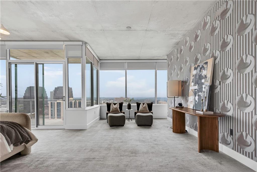 Experience refined penthouse living in one of the Plaza’s most sought-after modern buildings. This exceptional true three-bedroom residence combines expansive scale with sophisticated design and effortless comfort. Soaring 10-foot ceilings and walls of windows frame breathtaking panoramic views of the Plaza and city skyline, filling the home with natural light. A grand entry gallery creates an impressive first impression and offers the perfect backdrop for showcasing art. The stunning great room features rich Brazilian wood floors and flows seamlessly into a beautifully updated chef’s kitchen. Designed for both everyday living and entertaining, the kitchen is appointed with custom Pedini cabinetry, premium Wolf appliances, an Asko dishwasher, Monogram wine cooler, wet bar, soft-close drawers, and an oversized island. A bright breakfast area provides a serene start to the day, while the open formal dining space is ideal for hosting. The spacious primary suite is a private retreat, complete with a sitting area, an expansive 14' x 17' walk-in closet, and a newly renovated spa-like marble bath featuring a double walk-in steam shower. Enjoy outdoor living from a private patio, perfect for relaxing or entertaining against a stunning skyline backdrop. With its remarkable layout, elevated finishes, and unforgettable views, this penthouse offers a rare opportunity to experience luxury living at its finest.