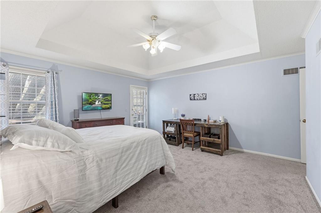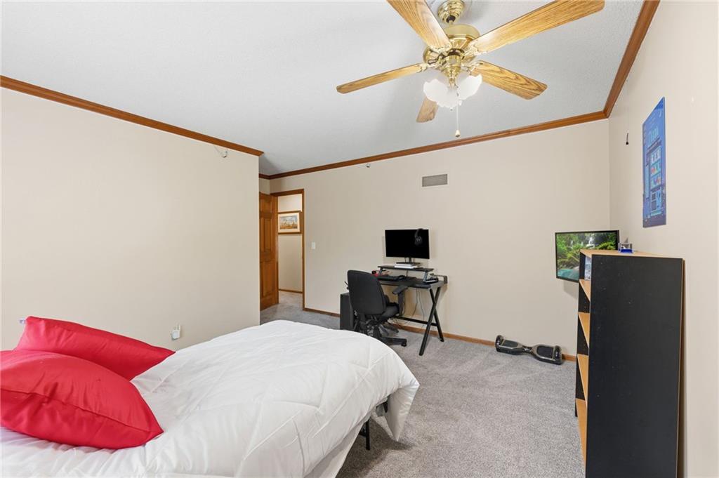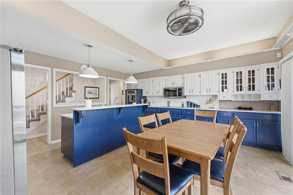 Experience refined living in this exceptional 1.5-story residence nestled in the sought-after Rolling Woods community of Blue Valley North. Boasting 5 spacious bedrooms, each with its own walk-in closet, this home offers both elegance and functionality at every turn. The beautifully appointed kitchen, with a breakfast area looking out over the back yard, features abundant cabinetry, a pantry, new countertops and flows effortlessly into a warm and inviting family room. Step outside to an expansive deck overlooking a private, picturesque backyard, perfect for upscale entertaining or quiet evenings at home. The finished walk-out lower level is an entertainer’s dream, complete with a generous recreation space, fifth bedroom, and full bath, ideal for guests or multigenerational living. Formal living and dining rooms provide timeless sophistication. Walls of tall windows bathe the home in natural light, enhancing its airy, open feel. With approximately 3,743 square feet, main-level laundry, and included appliances, this home offers both luxury and convenience.