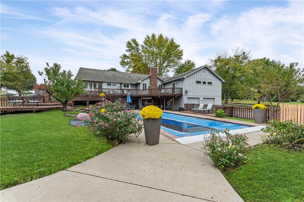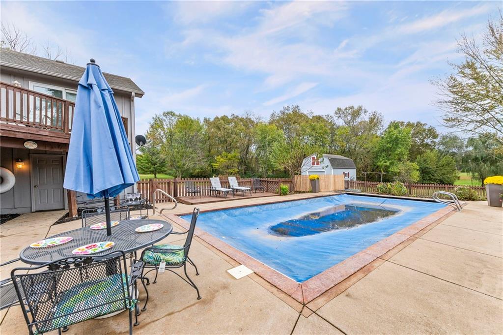 Entertainer’s haven on 3.6 acres. Designed for gathering, this 3,498-sq-ft retreat pairs a chef’s kitchen and heated sun porch with a two-story deck that spills down to a pool and hot tub. The lower level is party-ready—second kitchen, half bath, game-day lounge, space for a pool table and more, and a non-conforming guest room—while dual garages (2 up/2 down) plus an equipment outbuilding keep life organized. Fenced dog yard, workshop, expansive owner’s suite, pro landscaping, and no HOA freedom—set in unincorporated Cass County for the space and privacy you’ve been craving. Dual main floor primary suites as well as lower level second Kitchen offer unlimited possibilities. Exterior paint job on the way!