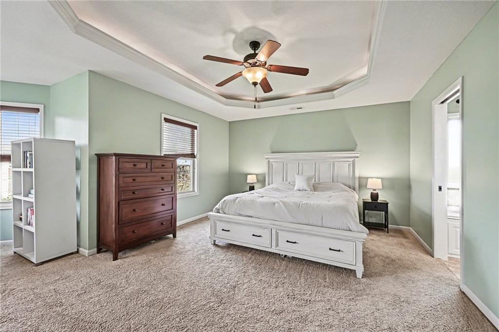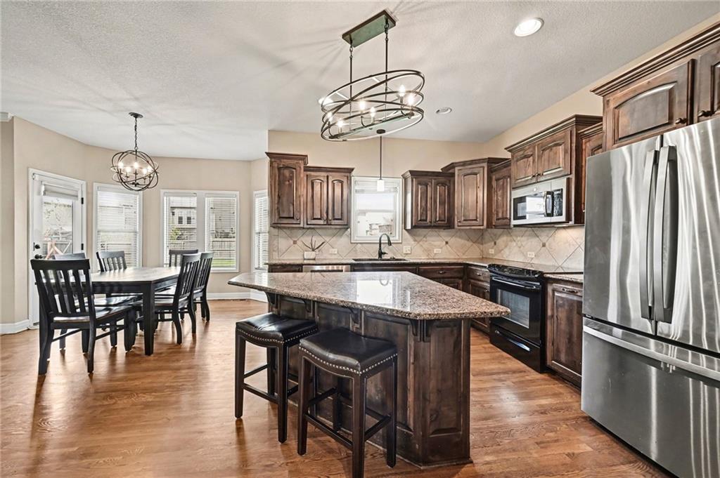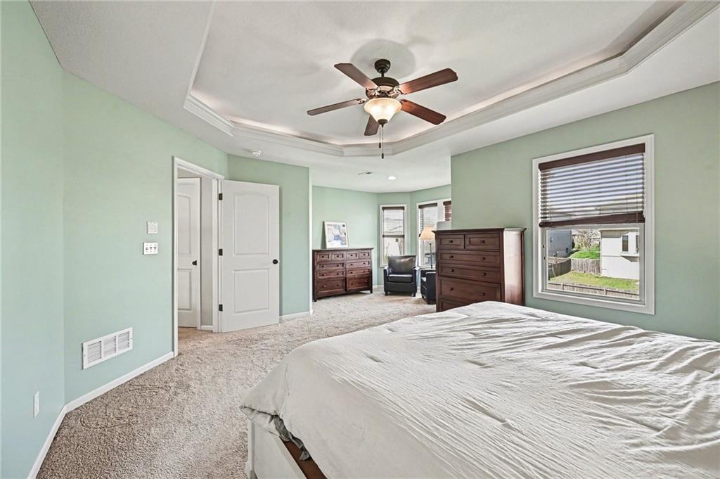 Welcome to this well-maintained 4-bedroom, 2.5-bath, 2-story home in the highly desirable Fountain Hills subdivision. Offering space, function, and a layout that actually works for real life. From the moment you arrive, you’ll notice the curb appeal with mature landscaping, a front entry, and a 3-car garage. Step inside to a bright, open foyer with wood floors and soaring ceilings that create an inviting first impression. The main level features multiple living spaces, including a cozy living room with fireplace and large windows that flood the space with natural light and overlook the backyard. There is a small office nook. The kitchen is the heart of the home with rich wood cabinetry, granite countertops, stainless steel appliances, a center island with seating, and an adjacent dining area. Perfect for everyday living or entertaining. You’ll also find a formal dining room for gatherings and a functional layout that connects to the kitchen via a coffee/wine bar. Upstairs, the spacious primary suite offers a true retreat with tray ceilings, a sitting area, and a large en-suite bath featuring double vanities, a walk-in shower, and a separate soaking tub. Three additional bedrooms provide plenty of space for family, guests, or a home office. The unfinished lower level offers flexibility. Whether you want a home gym, storage, or future finish potential. Step outside to a fully fenced backyard with a patio and plenty of room to play, relax, or entertain. Updates: HVAC 1 yr old, Fridge 1 yr old. Located in Fountain Hills, residents enjoy access to neighborhood amenities including a community pool and play area, adding even more value to this move-in ready home.