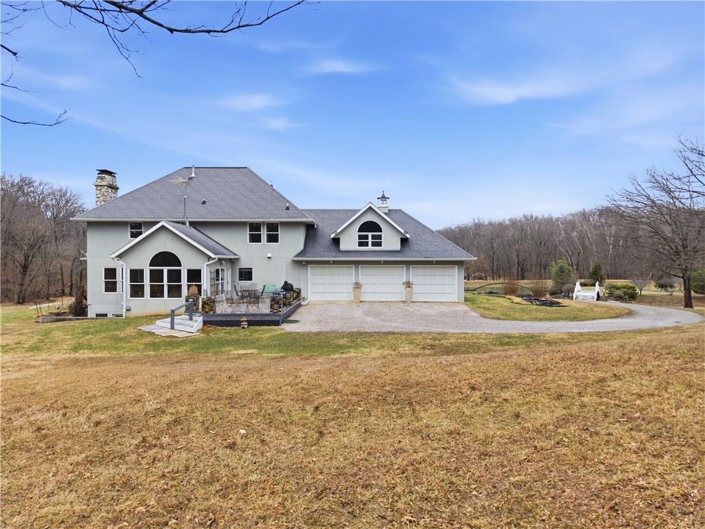 Welcome to your Dream Retreat in Columbia, Missouri! Nestled on 26 breathtaking acres, this one-of-a-kind property offers the perfect balance of luxury living and outdoor recreation. The land features a stocked private lake complete w/ islands and bridges, creating a stunning centerpiece that feels like your own private resort. Property is loaded w/ deer and turkey, making it an exceptional retreat for wildlife lovers and outdoor enthusiasts. The 7,500 sq ft custom home has been meticulously cared for and is filled w/ high-end features throughout. From the granite entryway, you’ll appreciate the craftsmanship and attention to detail, including hand-scraped teak floors, a stunning curved staircase, and 2 fireplaces. The home offers 4 spacious bedrooms and 5 bathrooms, along with a quiet study, large office space, abundant storage, and an attached three-car garage. The fantastic kitchen is built for both everyday living and entertaining, featuring a Wolf gas stove, high-end appliances, a hidden pantry, and generous storage space throughout. Just off the main living area, the sunroom provides the perfect place to relax and watch the wildlife, overlooking the incredible scenery this property has to offer. The luxurious master suite includes a spa-like bathroom equipped with heated floors, TV, coffee maker, and refrigerator, as well as a large walk in closet. The finished basement is designed for entertaining, featuring a spacious entertainment area along with a bar and small kitchen, making it the ideal place to host guests, watch the big game, or unwind after a long day. Outside, the property also includes a large two-story outbuilding with potential living quarters, providing endless possibilities for guests, a workshop, or additional storage. This rare 26 +/- acre estate truly offers the best of both worlds - a private retreat with incredible scenery, wildlife, and recreation located just 7 miles from downtown Columbia. Opportunities like this are incredibly rare!