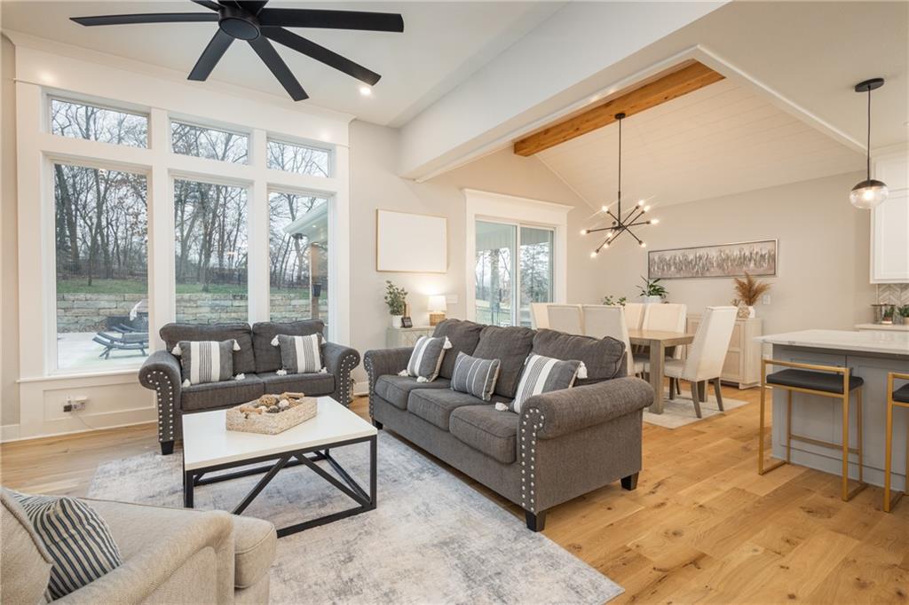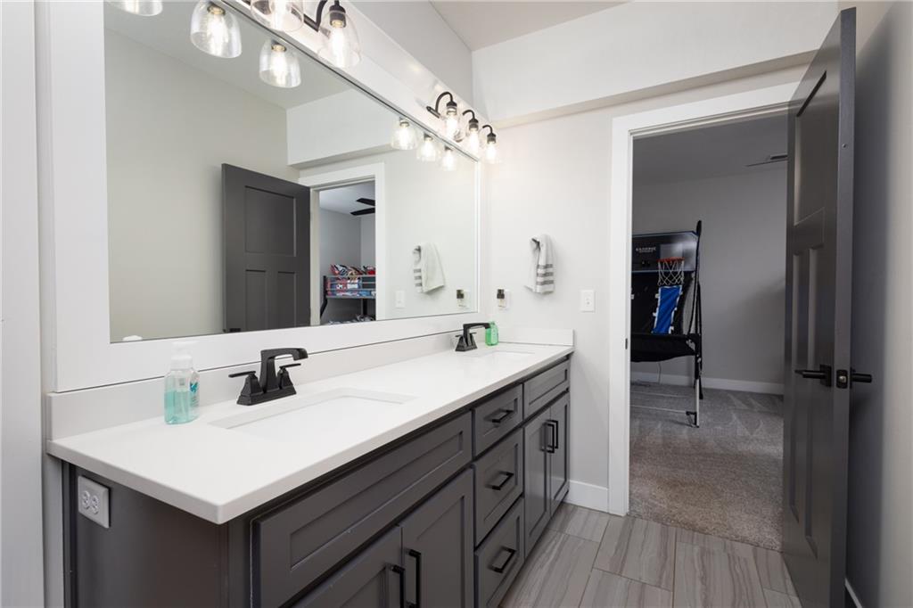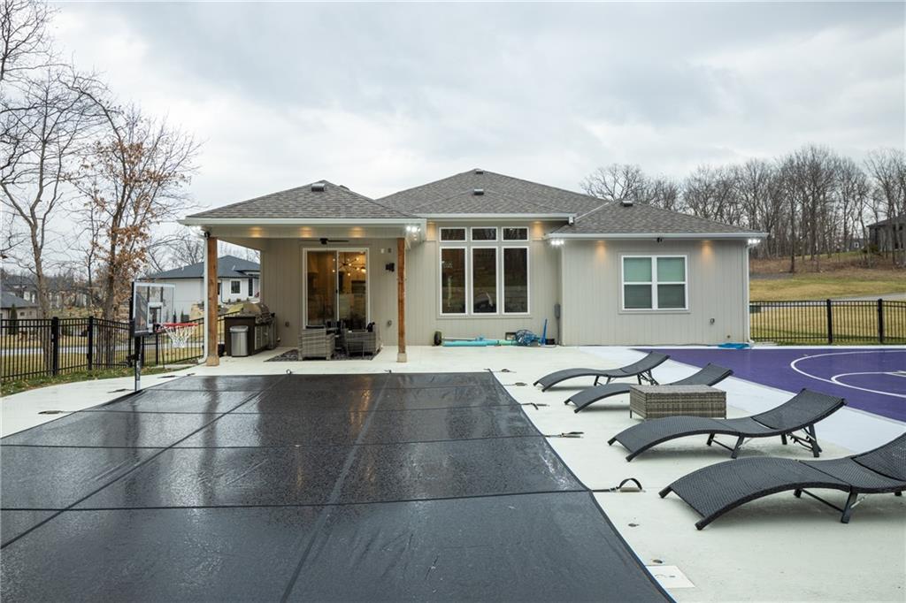 Experience resort-style living in this stunning 4.5-year-old reverse ranch with 4 bedrooms & 3 bathrooms with upscale finishes and exceptional amenities throughout. Designed for both everyday comfort & elevated entertaining, this home truly has it all. Step outside to your private oasis featuring a heated saltwater/chlorine pool complete with a built-in basketball goal, expansive outdoor kitchen with premium Blaze appliances & a half-court sport basketball court—perfect for hosting or relaxing in style. Inside, the main level showcases real 5” hardwood floors & a chef’s kitchen outfitted with top-of-the-line Café appliances, including an Advantium oven. A spacious walk-in butler’s pantry provides additional cabinetry & a beverage refrigerator for ultimate convenience. The finished basement is an entertainer’s dream, featuring a full-size bar with a built-in kegerator. The luxurious primary suite is a true retreat, boasting heated bathroom floors, dual shower heads including a rain feature, tall ceilings with a marble accent wall & a TV positioned above the soaking tub for added relaxation. The oversized walk-in closet includes a built-in dresser, custom shelving, and three-tiered hanging rods. Additional highlights include a functional mudroom off the garage, enhanced interior and exterior lighting, generously sized bedrooms with walk-in closets, and premium finishes throughout. Situated on over ¾ of an acre, the property offers a picturesque setting with mature trees, green space, and a striking stone wall. Enjoy exclusive access to the lake with a community dock slip and available lift lease, plus the added benefit of 2026 HOA fees covered for the new owner. The neighborhood enhances the lifestyle with amenities including a park, walking trails, pickleball and tennis courts, a yacht club & an upcoming community pool & clubhouse. Don’t miss this rare opportunity to own a home that perfectly blends luxury, recreation, and tranquility. *Owner/Agent*