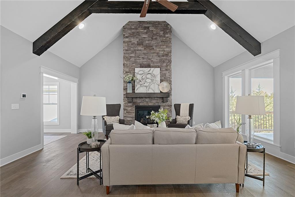 Ever popular Aspen Reverse 1.5 story home by Prieb Homes offers a spacious and open floor plan with impressive details throughout. The soaring vaulted ceilings with stained beams and stunning stonework surrounding the fireplace create a grand first impression as you enter the home. The kitchen features a massive granite center island, perfect for entertaining and providing functionality for day-to-day living. The primary suite offers a relaxing retreat with an adjacent bonus office space and a laundry room with built-in cabinetry. The spa-like primary bath boasts a custom shower with dual shower heads and separate vanities. The finished lower level features a wet bar, two additional bedrooms, and a full bath. Enjoy the serene & large covered 14x12 deck. Room sizes and taxes are estimated, and some features may not be available in this spec home. Please note that the photos provided are of a previously built Aspen Reverse 1.5 spec, and some features may not be included. It's recommended that buyers work with their agent to confirm the details of the home.