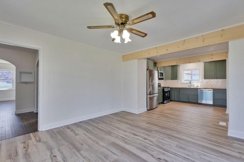 Completely remodeled and move in ready! This charming 3 bedroom, 1 bath home offers a fresh, modern interior with thoughtful updates throughout. The main level features two spacious bedrooms, convenient main-level laundry, and an updated kitchen complete with brand new appliances. Upstairs, you’ll find a third bedroom—perfect for a private retreat, office, or guest space. Outside, enjoy a fully fenced backyard ideal for pets, entertaining, or relaxing, along with the convenience of an attached one-car garage. Situated in a prime location close to shopping, dining, and everyday amenities, this home offers both comfort and convenience. A must-see!