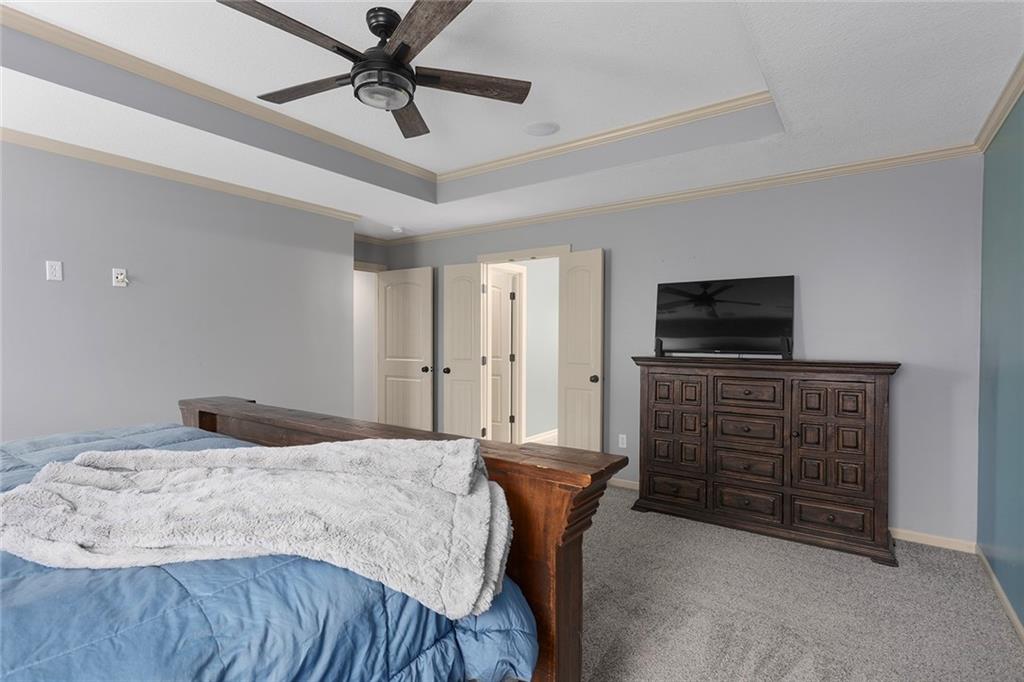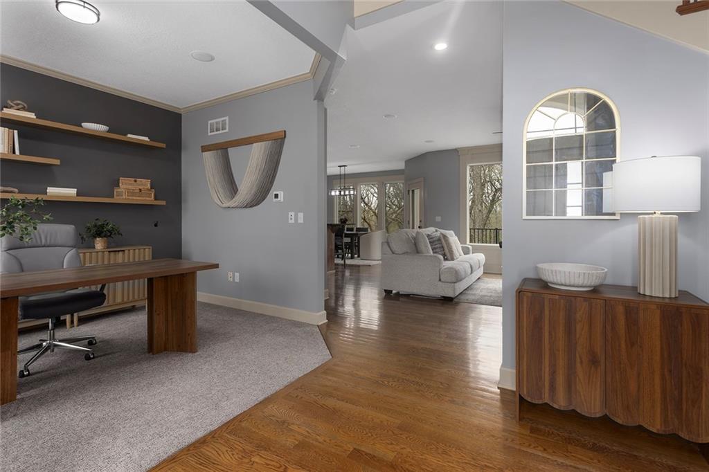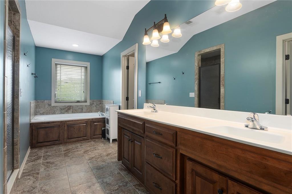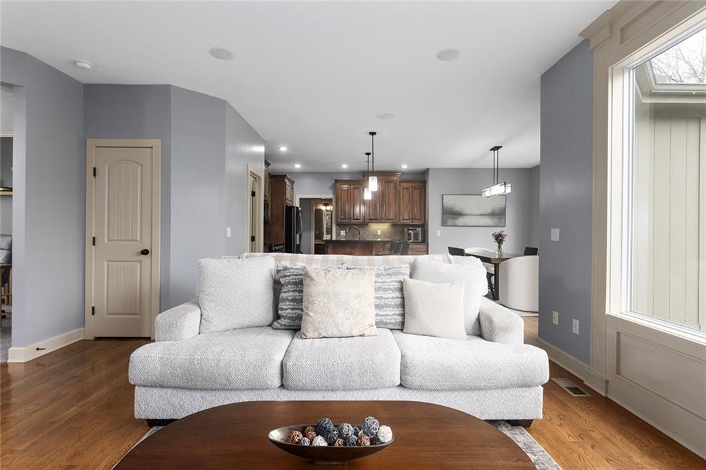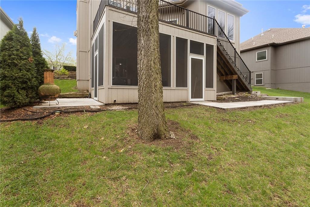 Welcome to this spacious and beautifully appointed two-story home in desirable South Olathe! Offering 5 bedrooms and 3.5 bathrooms, this home combines comfort, functionality, and scenic surroundings. The main level features stunning hard oak wood flooring and an abundance of large windows that fill the space with natural light while showcasing peaceful views of the wooded greenspace behind the home. The inviting living room centers around a cozy fireplace and flows seamlessly into the adjacent kitchen—perfect for both everyday living and entertaining. The kitchen is thoughtfully designed with beautiful cabinetry, granite countertops, and a convenient walk-in pantry. Just off the kitchen, you’ll find a dedicated laundry area for added ease and efficiency. A formal dining room sits at the front of the home, offering a more traditional space for gatherings and special occasions, complete with comfortable carpeting. Upstairs, the bedrooms feature plush carpeting and spacious bathrooms, creating comfortable retreats for family and guests alike. You’re sure to love the finished walkout basement, complete with a 5th bedroom, full bath, and a convenient kitchenette. This space lives like separate quarters—ideal for guests, extended stays, or multi-generational living—and opens directly to the patio, with a composite deck above for even more outdoor enjoyment. Step outside to enjoy the backyard firepit, perfect for relaxing evenings under the stars. Additional upgrades include whole-home sound wiring and programmable exterior holiday lighting for year-round convenience and charm. Don’t miss this opportunity to own a beautiful home on a well-kept lot in a sought-after location!