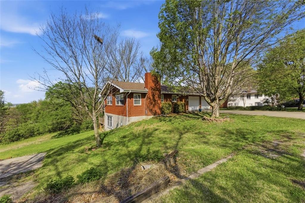 Brick ranch on a secluded 0.6-acre lot in a wooded subdivision with city views! This 3 bed, 3 bath home offers 2,625 finished SF plus 816 unfinished SF in the walk-out basement with workshop, storage, and laundry hookups. Features include a primary bedroom on the main level, 2 fireplaces, 2-car attached garage, two-level deck, and hardwoods under carpet on the main level. Energy-efficient hydronic baseboard heat and 200 AMP breaker box. Major updates include a septic tank replaced in 2025 and a complete roof removal/replacement in 2016. Large sloped lot is ideal for sledding, terracing, or enjoying the mature trees and private setting. Located in the award-winning North Kansas City School District. Bidding ends May 15 at 1PM.