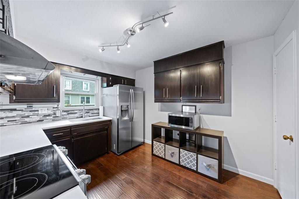 Quiet end unit tucked away near the trees in a great location that makes commuting a breeze with super quick freeway access. Tons of updates and move in ready!! Fresh paint throughout and new carpet in the bedroom level and new flooring in the lower level family room. Gorgeous kitchen with white Quartz counters and stunning backsplash with stainless steel appliances that stay. Upstairs has 3 bedrooms and 2 full baths (hall bath and primary bedroom has an ensuite). The main level has a large living room with a fireplace and a half bath plus the kitchen and dining room with sliding door to the deck. The lower level has the laundry room and a large family room with a sink, toilet and shower and access to the garage, along with a bar area and a walkout to the covered patio. Brand new 97% HE furnace. All the heavy lifting has been done, nothing to do but move in and enjoy the peaceful deck and the community swimming pool, which is aprox. 150 ft away from the patio! HOA covers building maintenance, lawn maintenance, snow removal and trash. Owner occupants only.