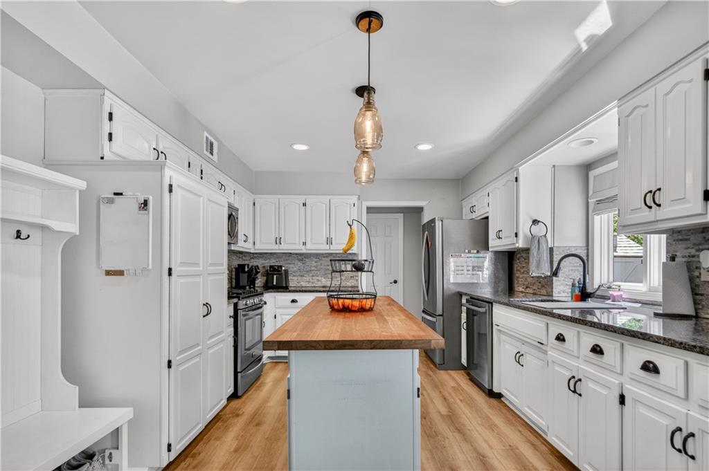 BEAUTIFUL two-story home in the heart of Lenexa offers the perfect blend of space, functionality, and flexibility. The main level welcomes you with an open-concept layout featuring a spacious living room, wall of windows with abundant natural light, and a seamless flow into the family room with fireplace and well-appointed kitchen featuring stainless appliances, pantry, backsplash, gas stove, wood island and granite counters—ideal for both everyday living and entertaining. Upstairs, you’ll find generously sized bedrooms, including a comfortable primary suite with a private bath that includes a soaker tub, double vanity and dual walk in closets. Three additional bedrooms provide versatility for family, guests, or a home office. The fully finished basement adds exceptional value with its own private living quarters—perfect for extended family, guests, or potential rental income. This separate space includes a bedroom, full bathroom, living area with fireplace, full kitchen, dining area and washer/dryer hookup offering both privacy and independence. With its thoughtful layout and multi-generational living potential, this home is designed to meet a variety of lifestyle needs while maintaining comfort and style throughout. Fully fenced yard with trees for privacy and a deck for entertaining. Close to the Lenexa City Center offering a variety of dining and entertainment.