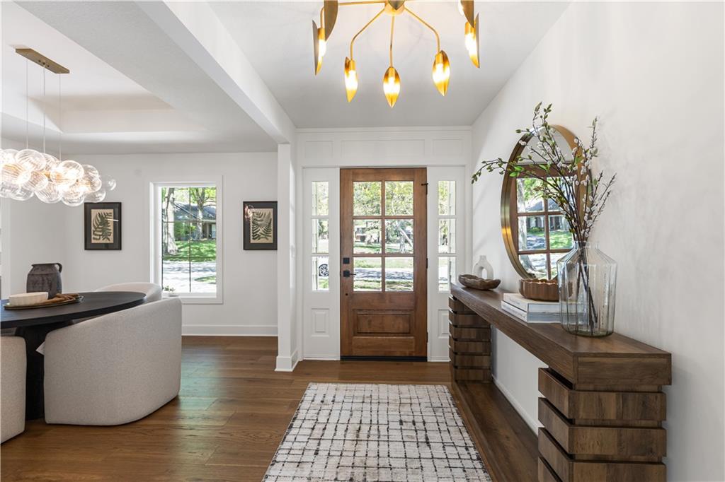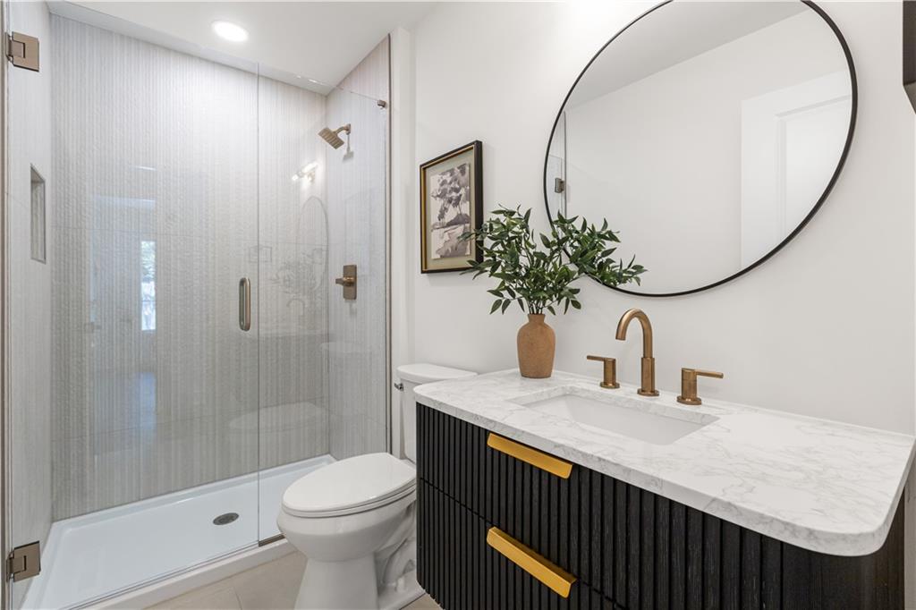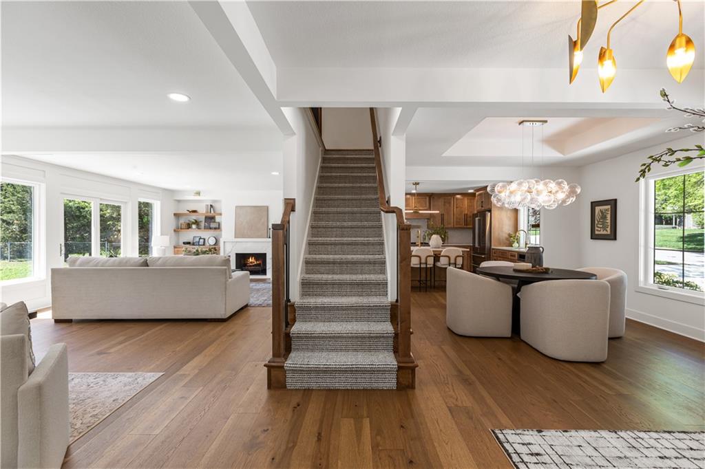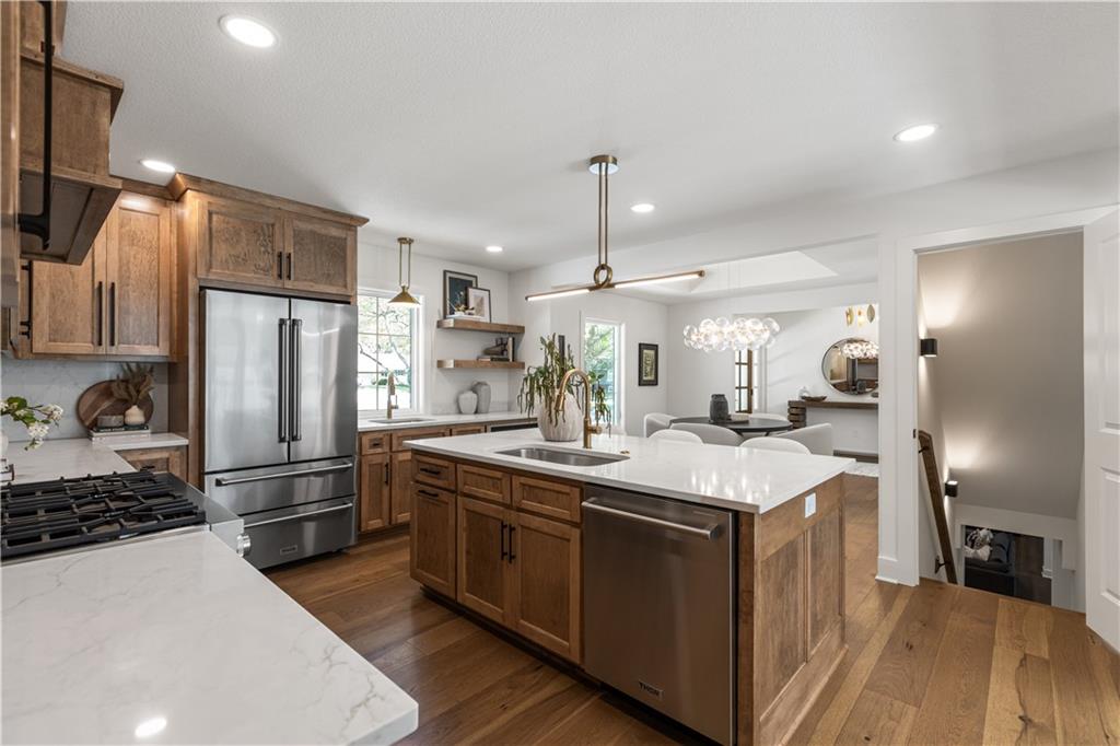 A rare opportunity to own a fully reimagined home. This standout renovation was taken down to the studs and rebuilt with exceptional craftsmanship and a design-forward approach, completed with city-approved plans and inspections. The result is a seamless blend of high-end finishes and everyday functionality. The interior showcases a refined, high-end aesthetic thoughtfully designed for both beauty and everyday livability. The breakfast area flows into a fully reimagined kitchen featuring custom solid wood cabinetry, quartz surfaces, designer lighting, and high-end appliances. A custom pantry cabinet and discreet drop zone add thoughtful storage and convenience.The spacious living room is anchored by a stunning fireplace, complemented by built-in cabinetry, and connects effortlessly to the kitchen, dining area, and outdoor patio. The main-level primary suite was created by combining two original bedrooms, offering a true retreat with a show-stopping bathroom, walk-in closet, and private laundry. The bathroom features a spacious shower, soaker tub, custom double vanity, and curated tile and lighting. A secondary bedroom and full bath complete the main level. Upstairs includes a second laundry room, three additional bedrooms one with a private ensuite and another full bathroom. The finished basement extends the living space with LVP flooring, a wet bar with dishwasher and refrigerator space, built-in entertainment unit, full bathroom, and a versatile non-conforming bedroom. Major updates include: new plumbing (all supply and drain lines), complete electrical with new panel and rewiring, R-15 wall and R-49 attic insulation, ~90% new drywall, new interior doors and trim, fresh interior and exterior paint, new energy-efficient windows, LP SmartSide siding, new gutters, new concrete driveway and patio, high-efficiency Lennox HVAC, LED lighting, and a new 50-gallon water heater. OPEN HOUSE on Wednesday 4/22 5:00-7:00 pm