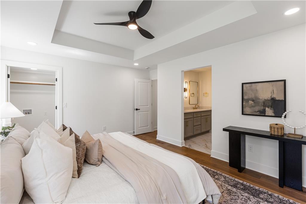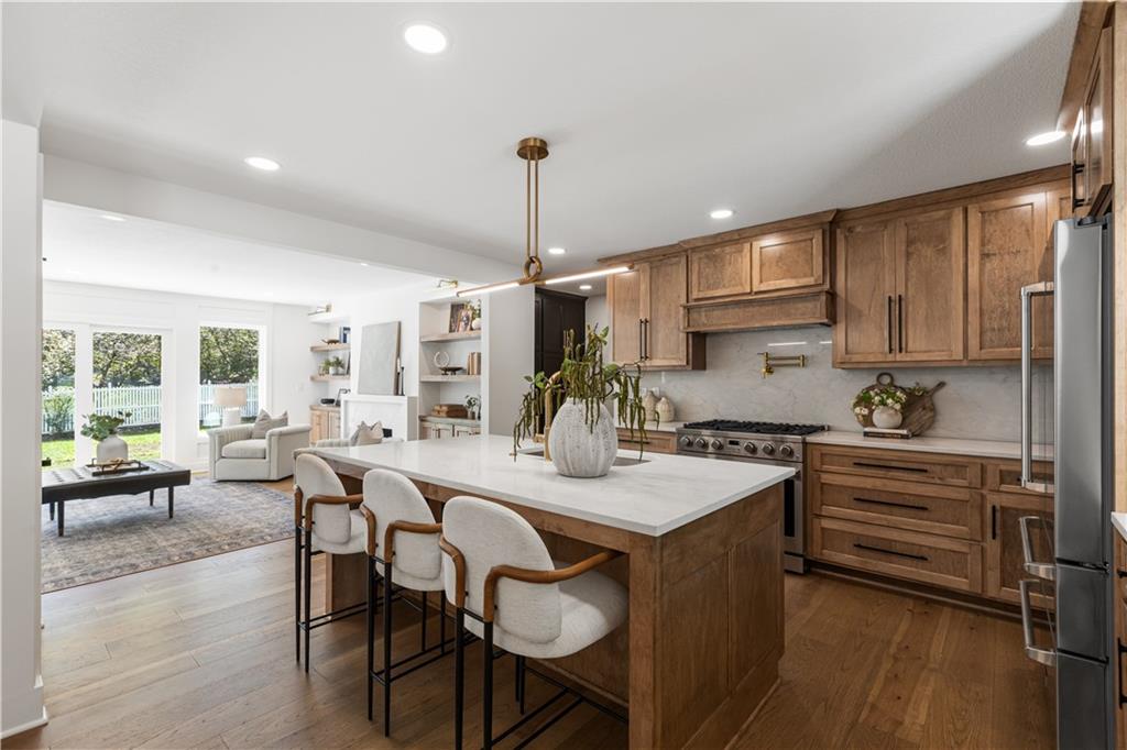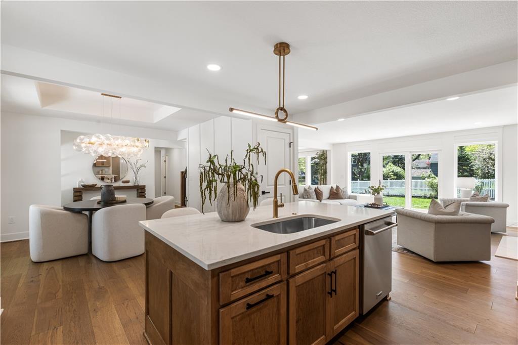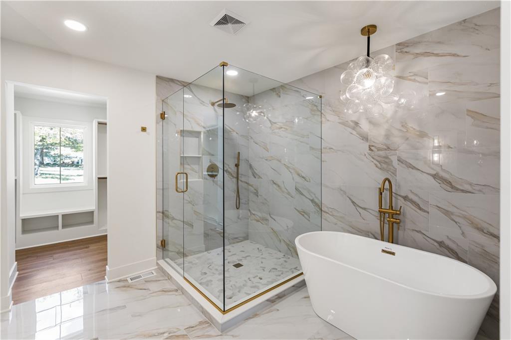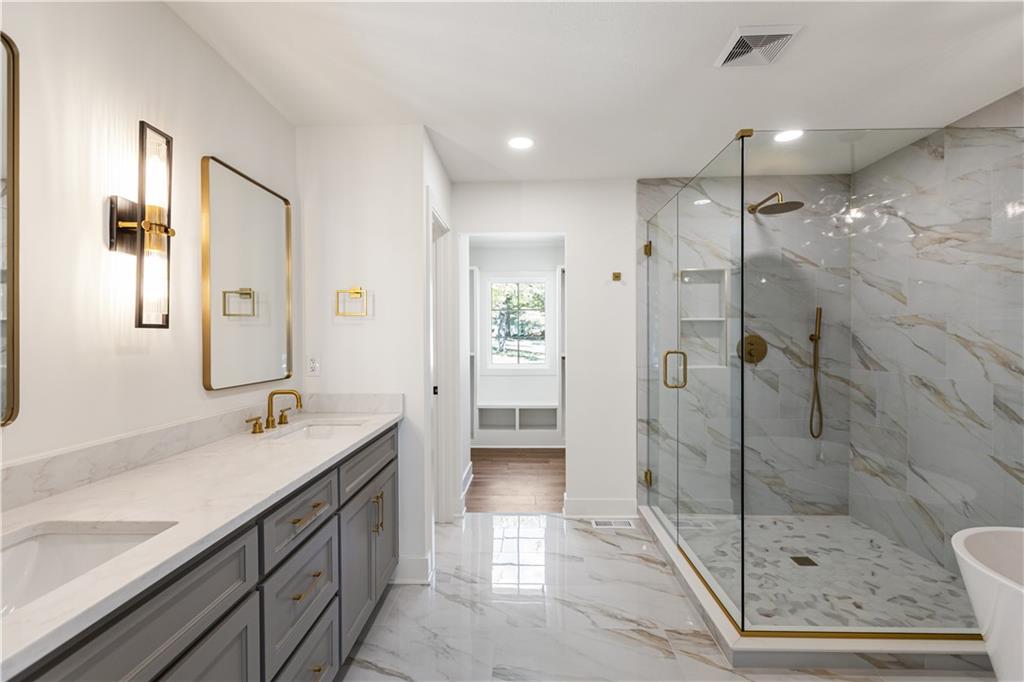 A rare opportunity to own a fully reimagined home. This standout renovation was taken down to the studs and rebuilt with exceptional craftsmanship and a design-forward approach, completed with city-approved plans and inspections. The result is a seamless blend of high-end finishes and everyday functionality. The interior showcases a refined, high-end aesthetic thoughtfully designed for both beauty and everyday livability. The breakfast area flows into a fully reimagined kitchen featuring custom solid wood cabinetry, quartz surfaces, designer lighting, and high-end appliances. A custom pantry cabinet and discreet drop zone add thoughtful storage and convenience.The spacious living room is anchored by a stunning fireplace, complemented by built-in cabinetry, and connects effortlessly to the kitchen, dining area, and outdoor patio. The main-level primary suite was created by combining two original bedrooms, offering a true retreat with a show-stopping bathroom, walk-in closet, and private laundry. The bathroom features a spacious shower, soaker tub, custom double vanity, and curated tile and lighting. A secondary bedroom and full bath complete the main level. Upstairs includes a second laundry room, three additional bedrooms one with a private ensuite and another full bathroom. The finished basement extends the living space with LVP flooring, a wet bar with dishwasher and refrigerator space, built-in entertainment unit, full bathroom, and a versatile non-conforming bedroom. Major updates include: new plumbing (all supply and drain lines), complete electrical with new panel and rewiring, R-15 wall and R-49 attic insulation, ~90% new drywall, new interior doors and trim, fresh interior and exterior paint, new energy-efficient windows, LP SmartSide siding, new gutters, new concrete driveway and patio, high-efficiency Lennox HVAC, LED lighting, and a new 50-gallon water heater. OPEN HOUSE on Wednesday 4/22 5:00-7:00 pm