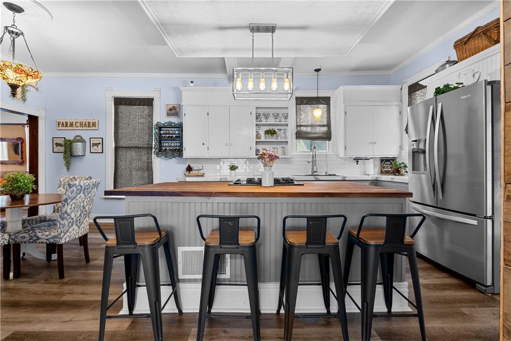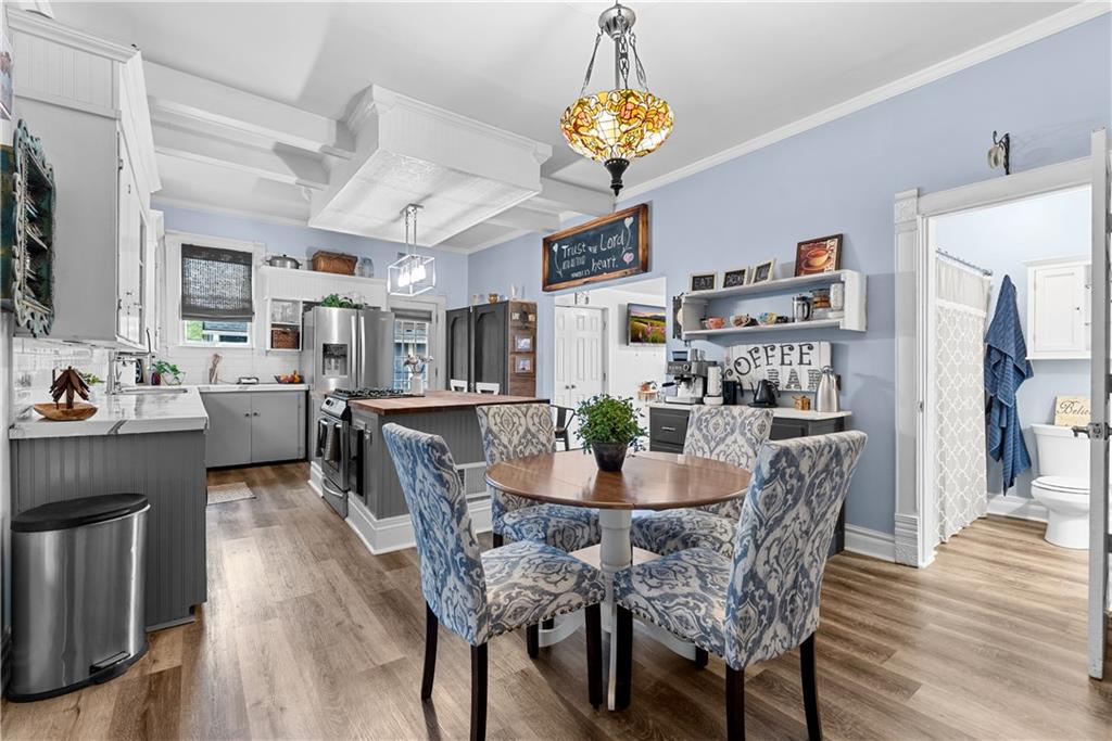 Step into charm and character with this beautifully updated Victorian-inspired 2-story home! From the moment you arrive, you’ll be captivated by its timeless appeal blended with modern touches throughout. Inside, you’ll find spacious living areas, thoughtful updates, and an inviting layout perfect for everyday living and entertaining. Beautiful flooring throughout, including brand new carpet installed April 2026. Outdoors, your private oasis awaits—featuring a serene koi pond and lush, meticulously maintained landscaping bursting with vibrant flowers, creating a peaceful and picturesque setting. Located just minutes from downtown Harrisonville, you’ll enjoy the perfect balance of small-town charm and convenient access to local shops, dining, and community events. The property also includes a separate shop space/mother-in-law quarters offering incredible potential. While it could use a little TLC, it’s a fantastic opportunity to customize for guests, a home office, studio, or additional living space. A unique property full of charm, opportunity, and natural beauty—don’t miss your chance to make it your own!