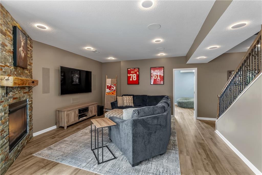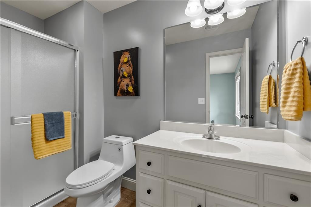 Welcome to this stunning 1.5-story home on an incredible lot with breathtaking views of green space and a scenic creek valley. Filled with natural light from dramatic picture windows, this beautifully updated home offers an open main level perfect for everyday living and entertaining. The formal dining room offers flexibility for use as a home office or formal sitting room. The main-floor primary suite is a true retreat, featuring serene backyard views, a spacious ensuite bath, and an oversized walk-in closet connected to the laundry room. Upstairs features three generously sized bedrooms, two additional bathrooms, and a large loft space. The recently finished walkout lower level is exceptional, offering an incredible rec room, cozy fireplace, custom wet bar with two beverage fridges and a dishwasher, an upgraded full bath with rainfall shower, an additional bedroom, and ample unfinished storage. Thoughtful extras include high-end theater speakers, dimmable lighting w/Nightlight feature, and smart home upgrades throughout. Step outside to your private backyard oasis with a level fenced yard overlooking peaceful green space. The large deck and expansive patio are perfect for relaxing or entertaining. Major updates include a high-efficiency HVAC (2021), upgraded 50-year roof with oversized gutters and gutter guards (2024), new water heater (2025), new carpet (2026), full interior repaint, updated faucets, engineered retaining wall, new fence, Wi-Fi sprinkler system, Ecobee thermostat, air purification system, and more—making this home truly move-in ready. Forest View offers one of the area’s most photographed waterfalls, a huge zero-entry pool, a water park, a sport court, sand volleyball, trails, a playground, picnic and grilling areas and easy access to Cedar Niles Park with miles of biking, hiking, and walking trails. This home truly has it all!