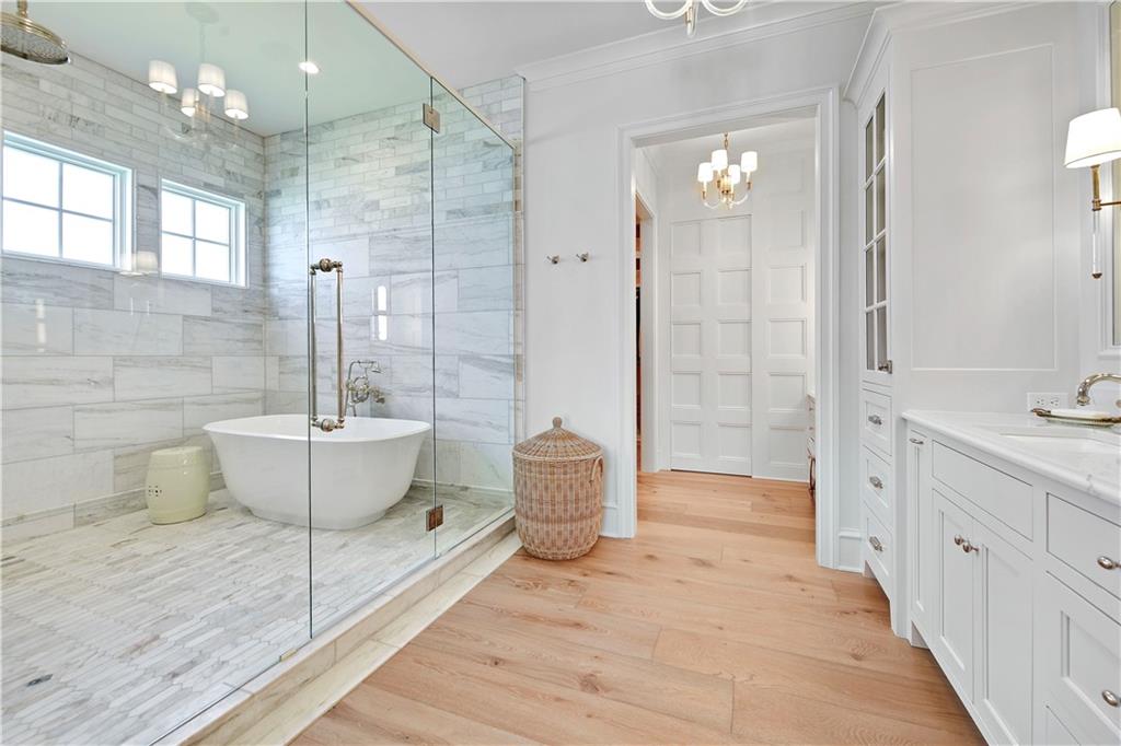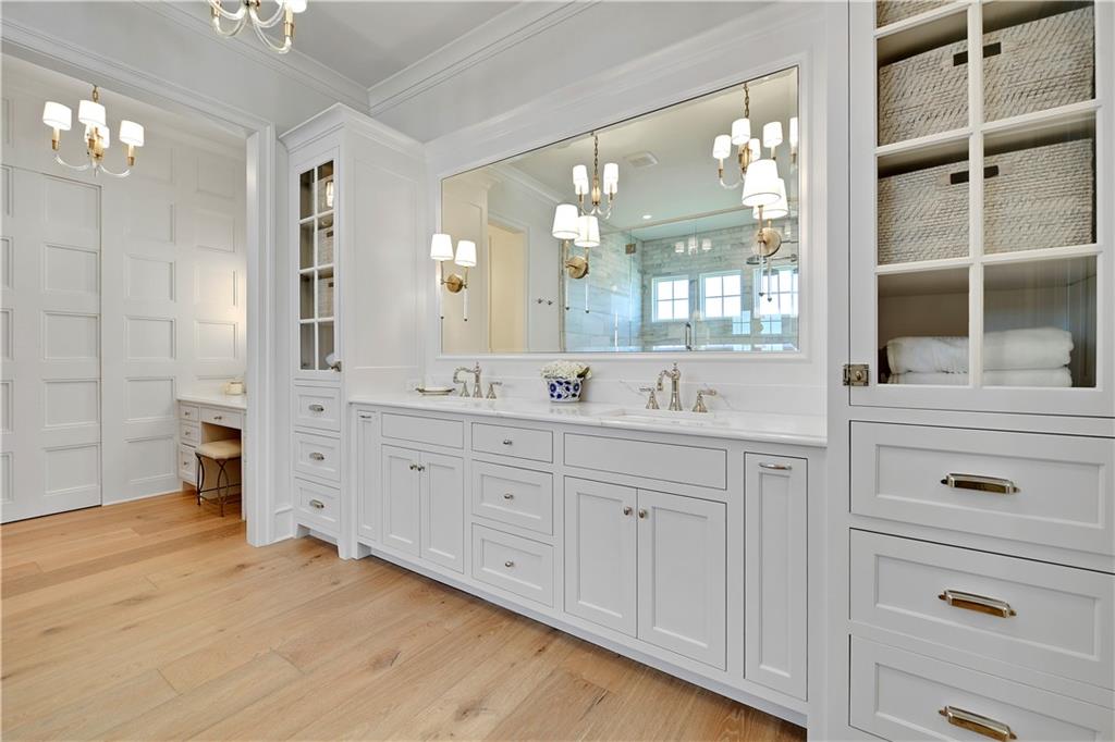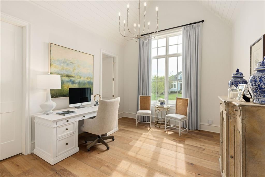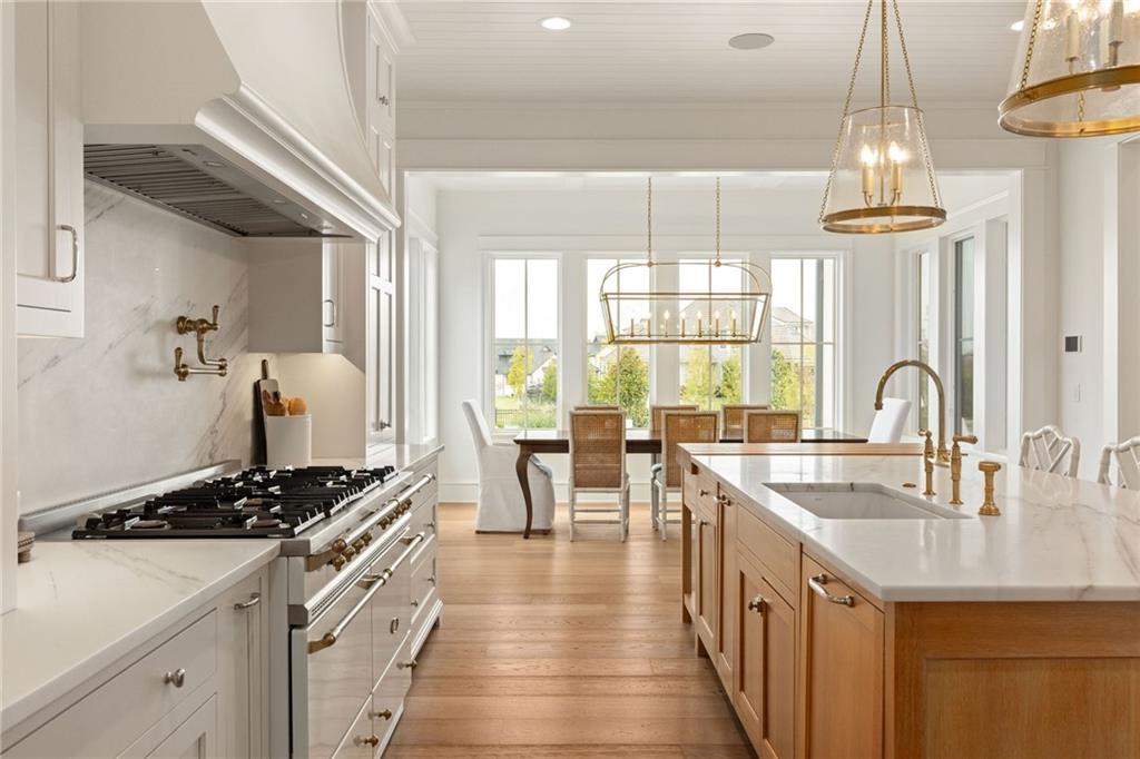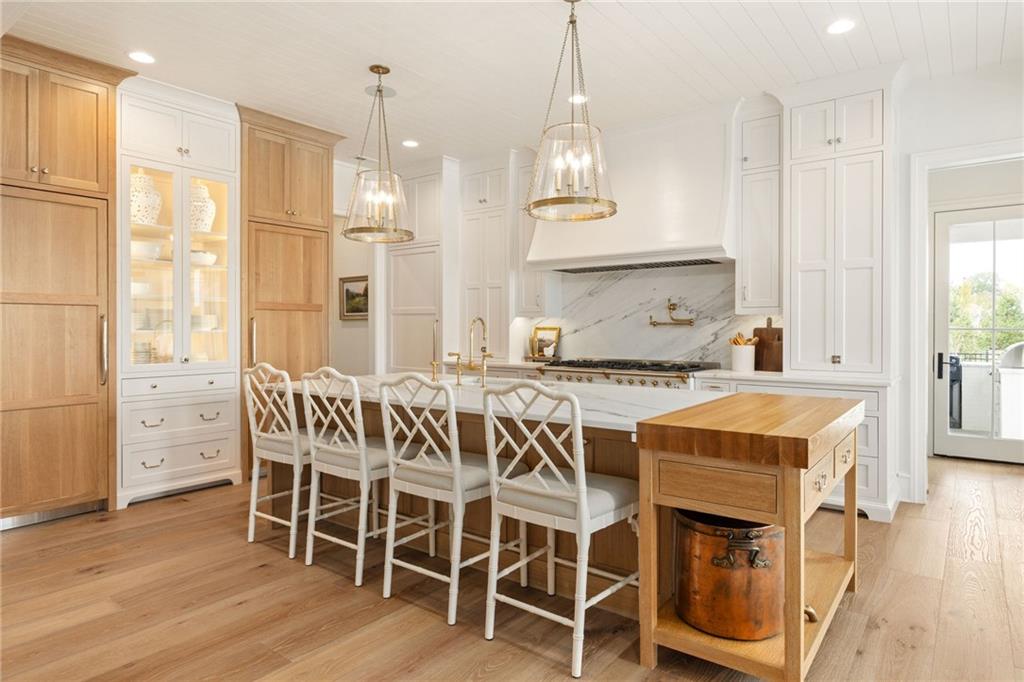 Step into an unmatched expression of luxury and southern style living designed and built by Grace & Nell Homes, a bespoke design-build company known for its commitment to artistry and meticulous craftsmanship. Every element of this award-winning 6 bedroom, 6.2 bath home has been crafted to balance elegance, warmth, and functionality for modern living. From the selection of rare materials to the custom millwork and luxury fixtures, the home is brimming with personal, thoughtful touches that only an owner-designer-builder could provide creating a space that feels both grand and intimately welcoming. Wide-plank European white oak floors lead through sun-filled interiors with gracefully proportioned rooms. The gourmet kitchen serves as the centerpiece of the home, featuring a rare imported Lacanche range from France, honed marble surfaces, and inset custom cabinetry. Adjacent dining and indoor-outdoor living areas provide a seamless flow for both intimate gatherings and large-scale entertaining. The primary suite offers a private retreat and ensuite bath with floor-to-ceiling marble, a volcanic resin soaking tub, and spa-inspired finishes. Five additional ensuite bedrooms, dual offices, a loft, and a crafting studio are all uniquely designed with the same extraordinary attention to detail. The finished lower level is complete with a spacious theater room with surround sound, a lounge area with a wet bar, and a private fitness room. Outdoors welcomes you to a resort-like retreat with a sparkling saltwater pool framed by lush landscaping, a covered grilling patio, and generous alfresco living areas adjoining to nearly 2 acres of green space. This home is equipped with a Crestron system, the leader in luxury smart home technology, offering intuitive control of lighting, sound, climate, and entertainment at the touch of a button. Perfectly suited on a generous estate lot, this residence is not to be missed.