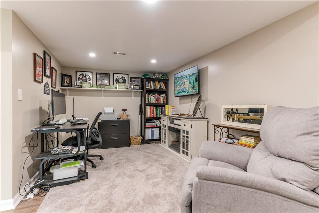 OPEN HOUSE. SATURDAY 2:30 x 4:30 PM * Well-maintained and thoughtfully updated, this spacious 2-story offers a comfortable layout, quality improvements, and a setting that truly stands out. The main level features an open flow between the kitchen, dining, and living spaces, with abundant natural light throughout. * The kitchen includes white cabinetry, granite countertops, an island, and hardwood flooring that extends into the adjacent dining and sitting areas. * Upstairs, the primary suite is filled with natural light and offers a large walk-in closet, double vanity, tiled floors, and a whirlpool tub. A private guest suite includes its own bath, while two additional bedrooms share a Jack-and-Jill bath. * The finished daylight lower level provides excellent additional living space and is stubbed for a future bathroom. * Recent improvements include a newer (1-year-old) roof and a brand-new composite deck overlooking a beautifully landscaped, treed backyard. The lot backs to nearly an acre of green space, creating a sense of privacy and an expansive view. * Truly move-in ready, this home has been meticulously cared for and presents with a fresh, light-filled feel throughout. *
