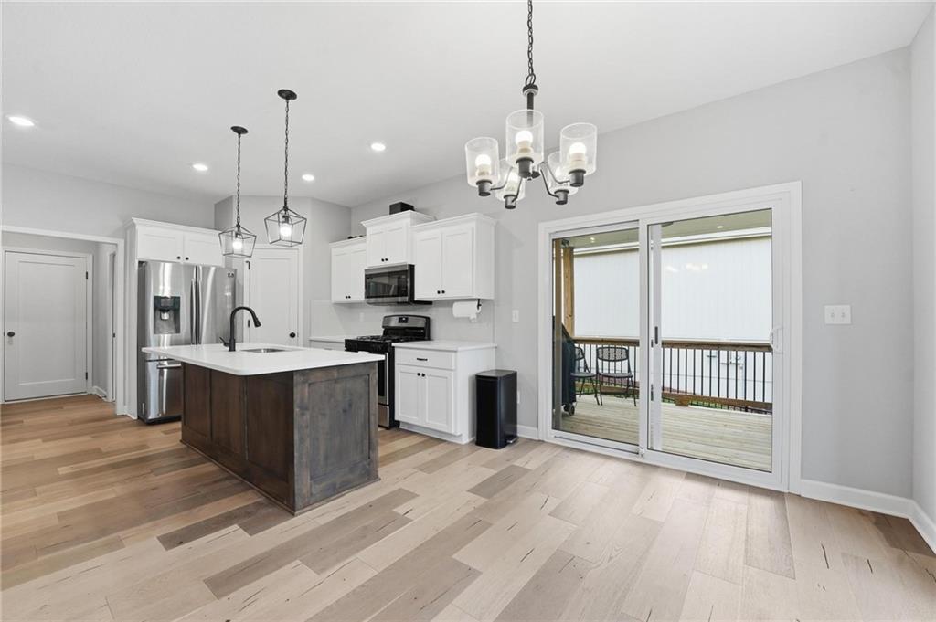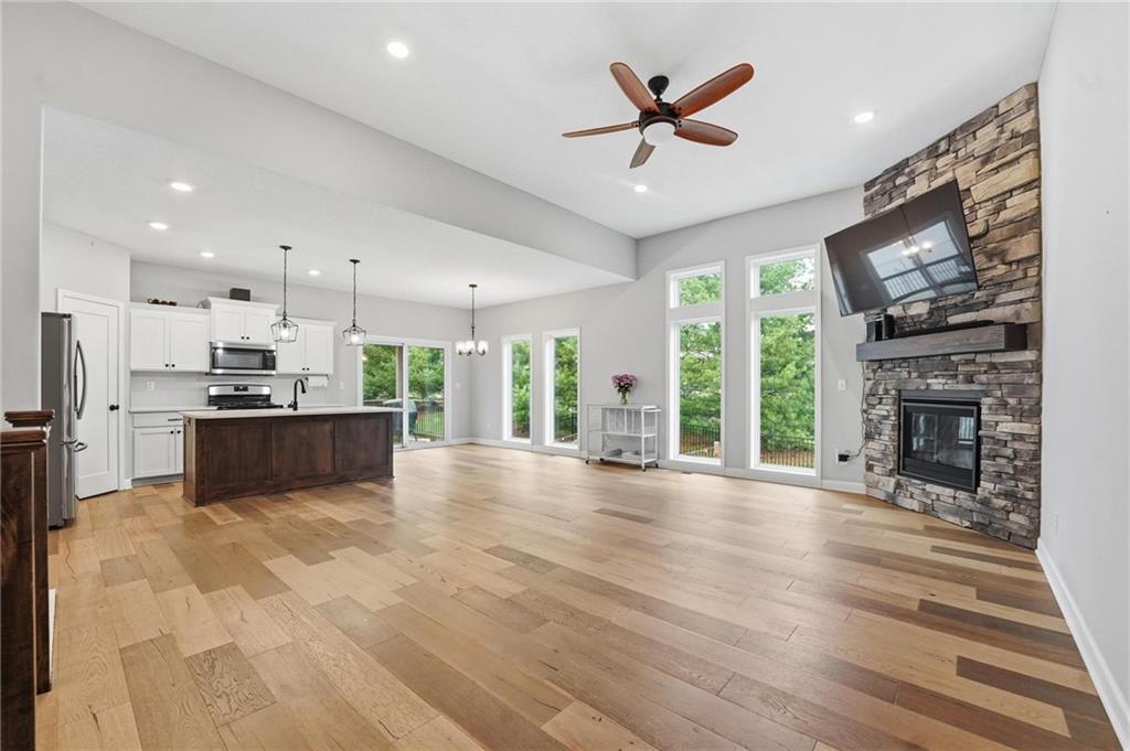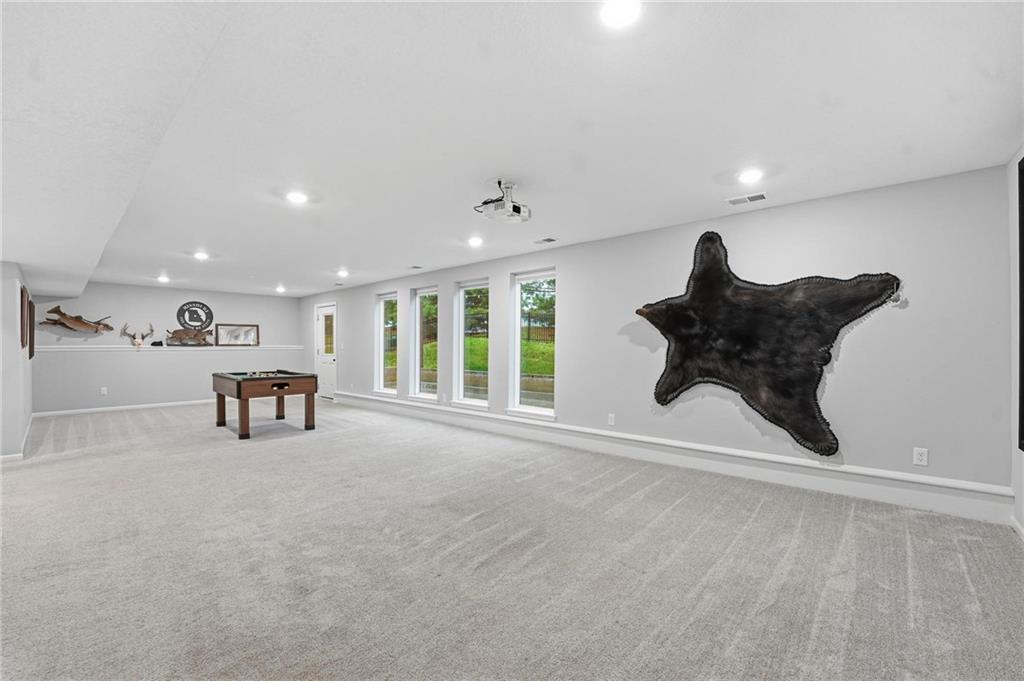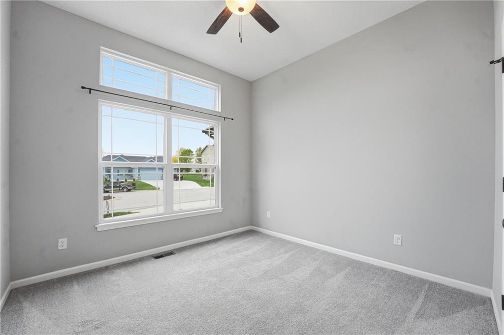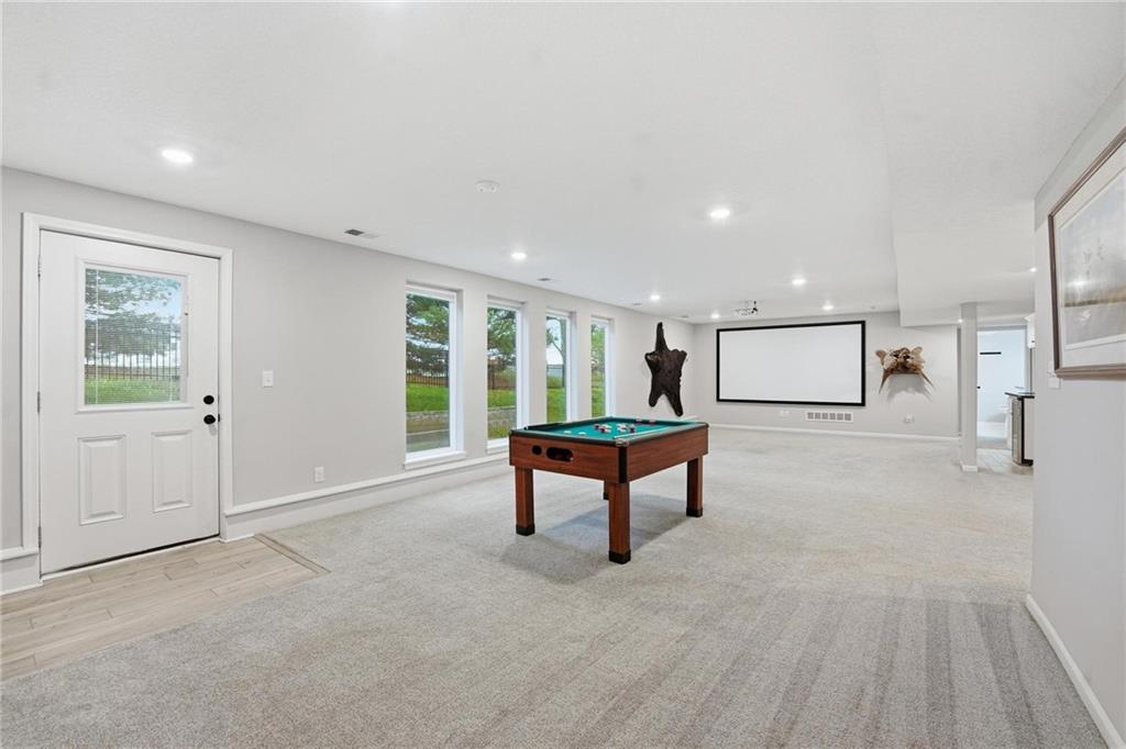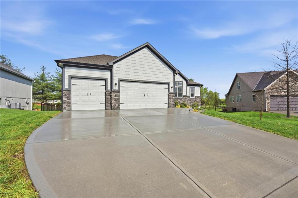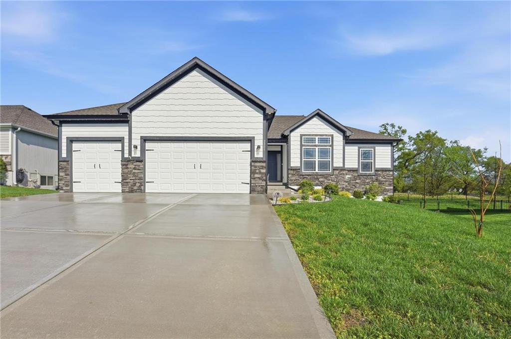 Welcome to 2209 Greenfield Court, a move-in-ready 5-bedroom home in The Meadows at Greenfield that allows you to skip the typical new construction to-do list and start enjoying your home from day one. As you walk in, you are greeted by an open layout filled with natural light and clean, modern finishes. The living room centers around a stone fireplace and flows seamlessly into the kitchen with granite counters, an island, and pantry, giving you a space that works just as well for everyday living as it does for hosting. Your main level primary suite provides a private retreat with a walk-in closet and a fully tiled walk-in shower. Two additional bedrooms and laundry on the main level give you the convenience of single-level living. The finished walk-out basement gives you flexibility with a large entertainment space, wet bar, projector setup, two additional bedrooms, a full bath, plus storage and a workshop area. Whether you need space for guests, hobbies, or everyday living, you have it here. Outside, you get more than just a backyard. You have a newly installed wrought iron fence that keeps the space open while adding security. You can enjoy evenings on the patio and fire pit area, and the added concrete pad gives you flexibility for a shed or additional use. The professionally landscaped flower beds with stone borders, decorative white and blue rock, and landscape lighting create a clean, finished look, while the color programmable permanent soffit lighting allows you to customize the exterior year-round. Inside and out, the details have already been handled for you, including blinds, a new fence and garage door openers saving you time and additional expense after closing. Located on a quiet cul-de-sac in a neighborhood with a community pool, walking trails, and fishing ponds, you also have convenient access to schools, parks, and highways.