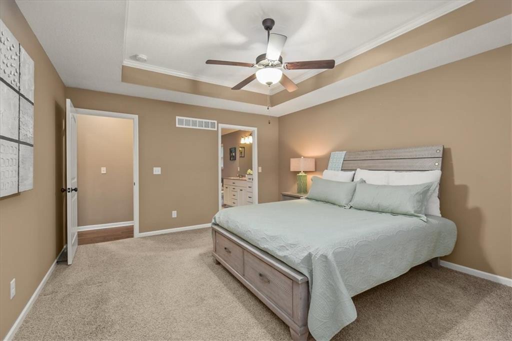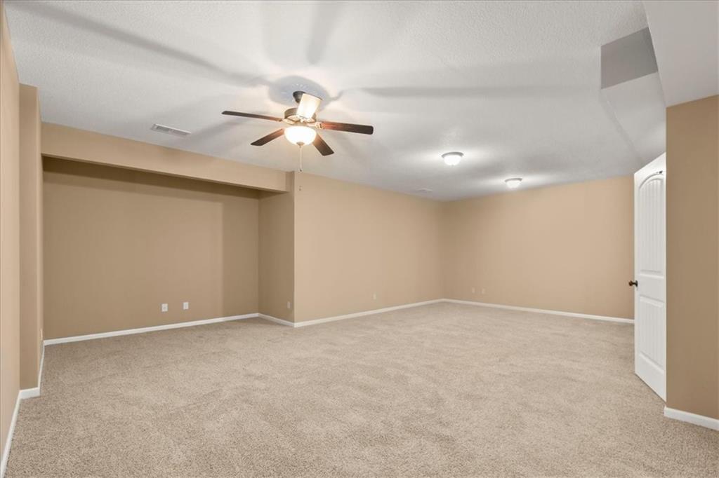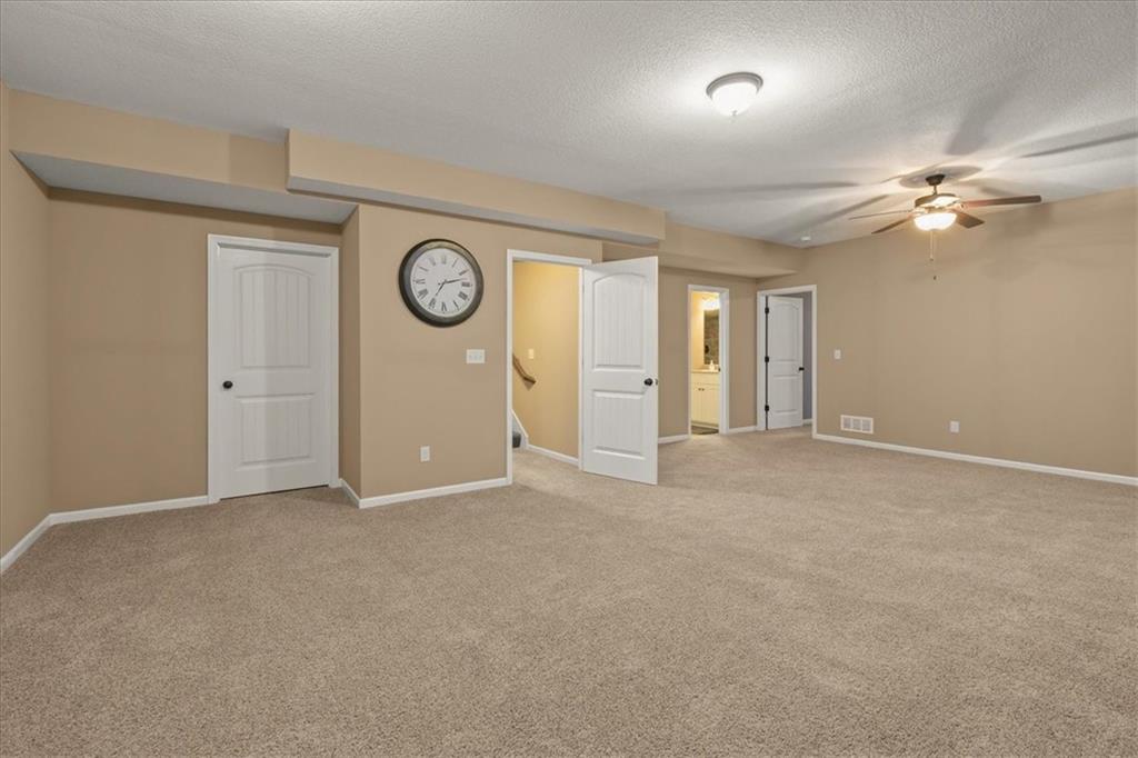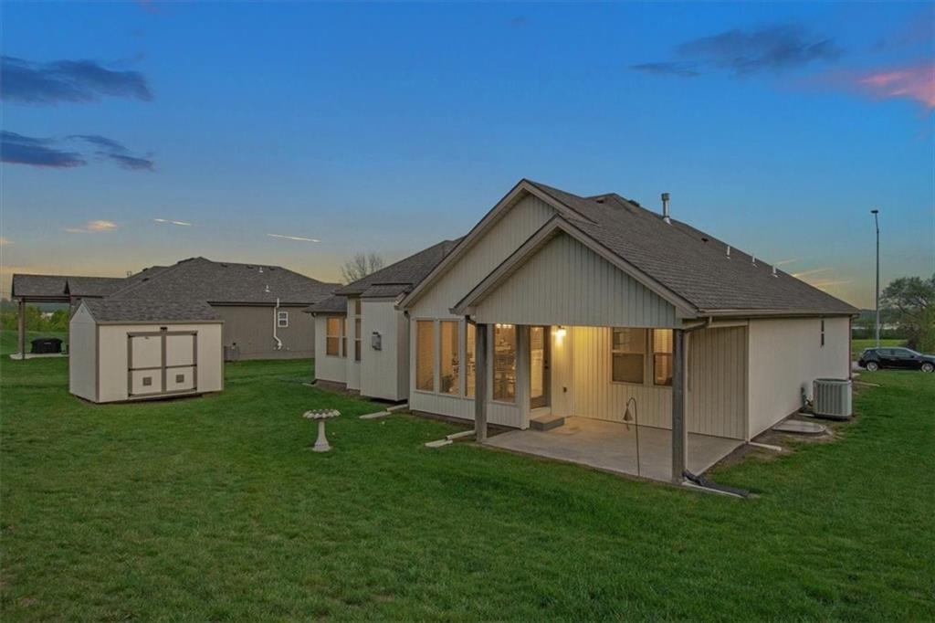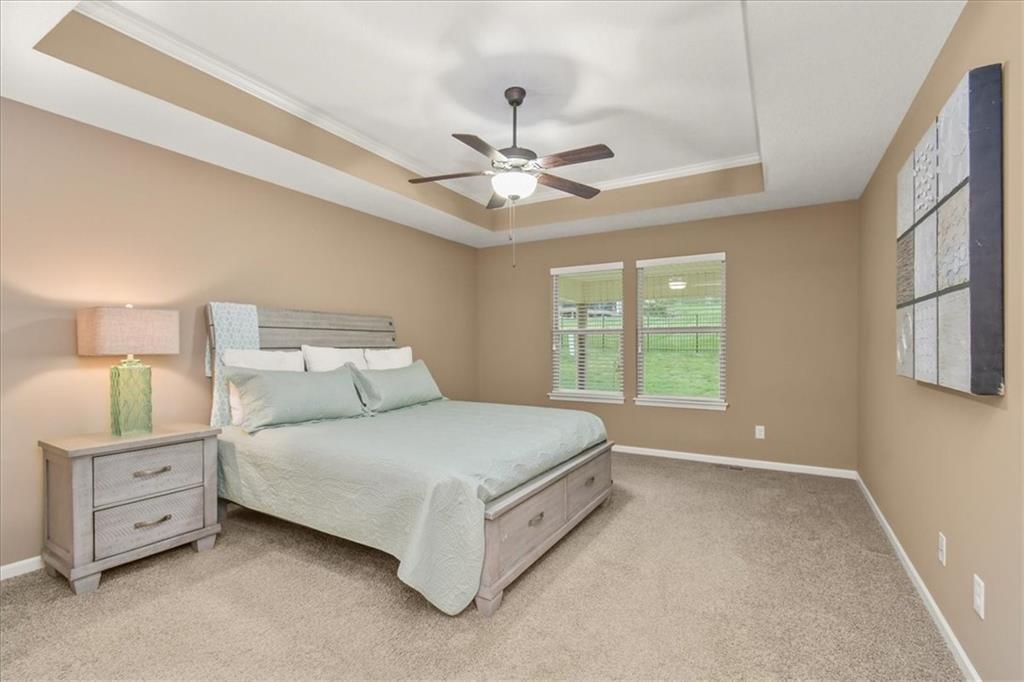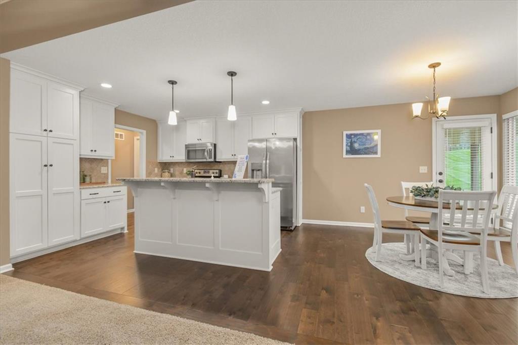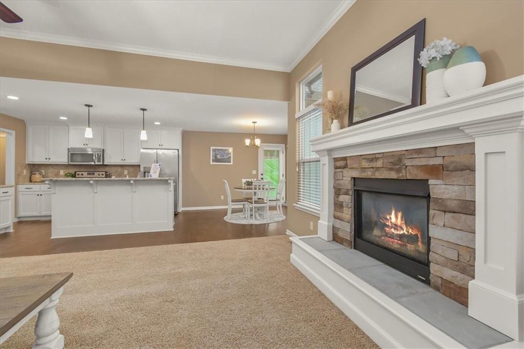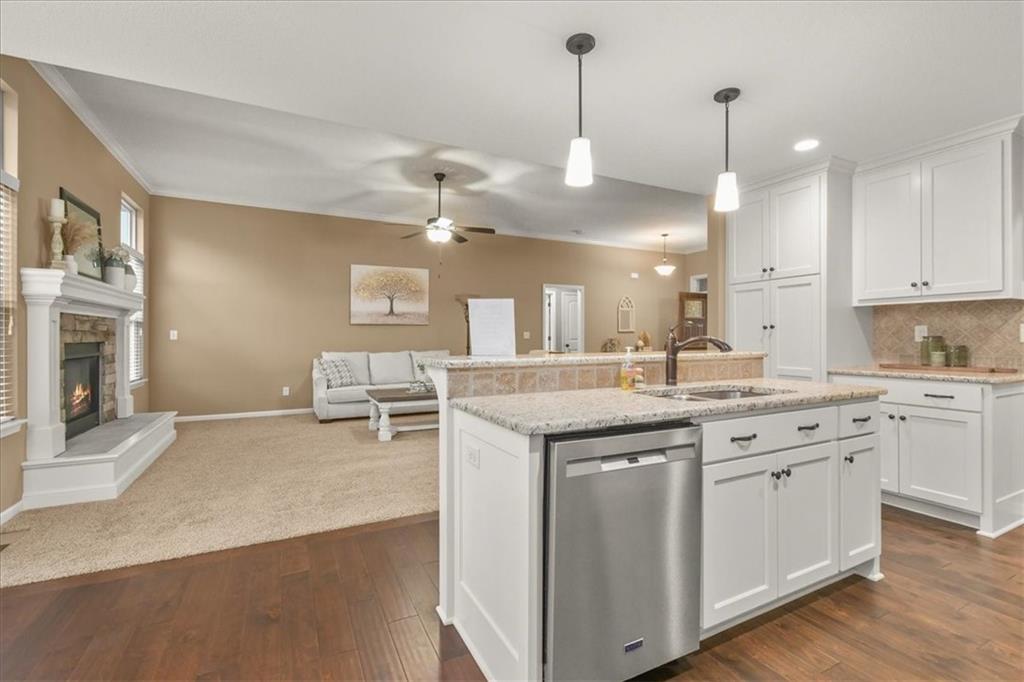 Experience the perfect blend of modern sophistication and suburban comfort in this stunning ranch-style residence. The inviting exterior, featuring a three-car garage and stone accents, opens into a light-filled interior defined by high ceilings and an expansive open-concept layout. The home's centerpiece features a gourmet kitchen that shines with crisp white cabinetry, premium granite countertops, and a sleek stainless steel appliance package, seamlessly transitioning into a cozy dining area and a spacious great room anchored by a contemporary stone gas fireplace. Retreat to the luxurious primary suite, where a tray ceiling adds architectural interest and the ensuite bathroom offers a dual-sink vanity alongside a deep soaking tub for ultimate relaxation. Designed for practical living, the main level includes a dedicated laundry room, featuring a sink & cabinets, and a highly functional mudroom with built-in cubbies and bench seating. The finished basement provides a massive flexible space, ideal for a home theater, gym, or recreation room, as well as an oversized 4th bedroom with walk-in closet. Outdoor enthusiasts will appreciate the large, lush yard and the covered rear patio, perfect for hosting evening gatherings or enjoying a quiet sunset and beautiful south valley views. Situated in a peaceful cul-de-sac, this energy-efficient home combines high-end finishes with everyday convenience, offering a rare opportunity for turnkey living in a prime location.