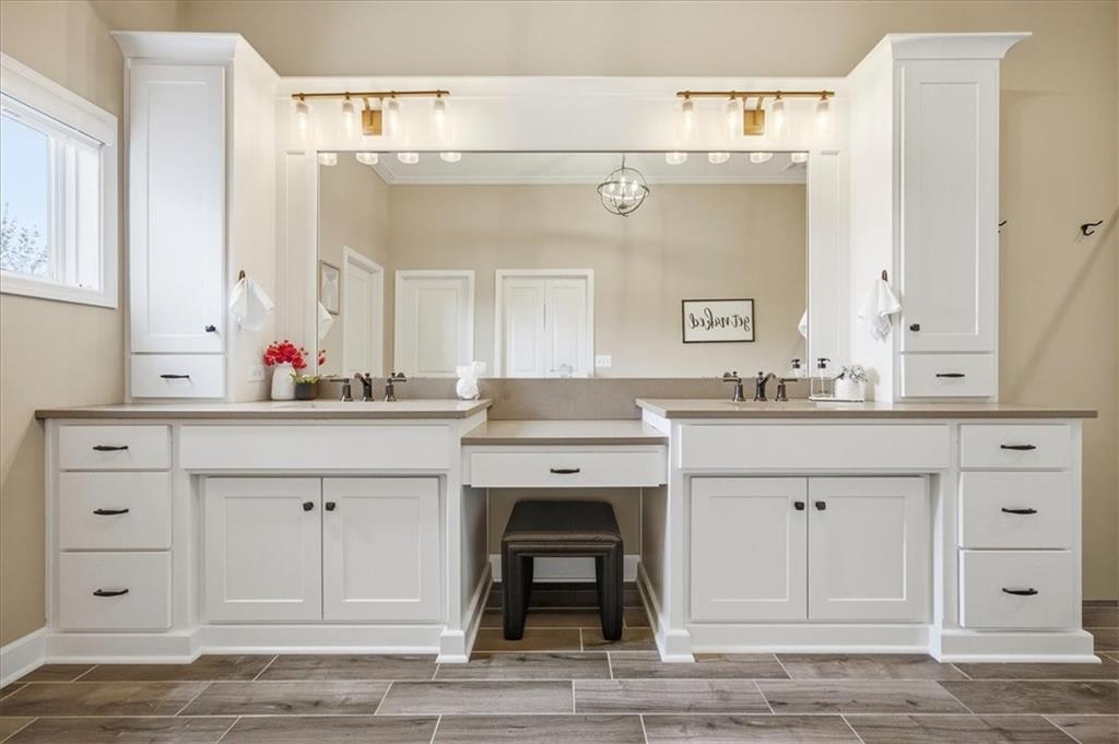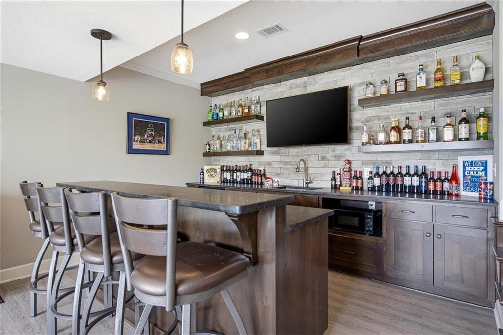 This custom-built residence by James III epitomizes sophisticated living within the prestigious Canyon Creek by the Lake community. From the moment you pass through the stately double-entry doors, you are greeted by an architectural masterpiece defined by soaring 20-foot ceilings and expansive floor-to-ceiling windows that bathe the interior in natural light. The grand living room serves as the heart of the home, centered by an impressive floor-to-ceiling stone fireplace. The gourmet chef’s kitchen is designed for both the culinary enthusiast and the seasoned host, featuring a sprawling center island, a dedicated beverage bar, and a professional gas range. The exceptional butler’s pantry—complete with a secondary oven and a discreet grocery pass-through from the garage—ensures seamless organization. The main level also offers a versatile bedroom and full bath, ideal for guests or multi-generational living. Key refinements include: The Primary Retreat: A sanctuary of luxury featuring a spa-inspired bath with dual vanities, a massive walk-in shower, and a deep soaking tub. The primary closet is a dream of organization, offering direct access to the spacious laundry suite. Versatile Upper Level: A flexible bonus room currently utilized as a private gym provides unobstructed sunset views, making it an ideal home office or nursery. The Walkout Lower Level: Designed for high-end entertaining, the basement features a custom bar with floating shelving, a finished suspended garage space perfect for a private cinema, and additional guest accommodations. Outdoor Ambiance: Enjoy the tranquility of a screened-in deck and a lower-level patio designed for fireside evenings. With a brand-new roof (2025) and an HVAC warranty through 2028, this home offers total peace of mind. Located just steps from the serene Mize Lake and the community’s resort-style amenities, this property is truly unparalleled.