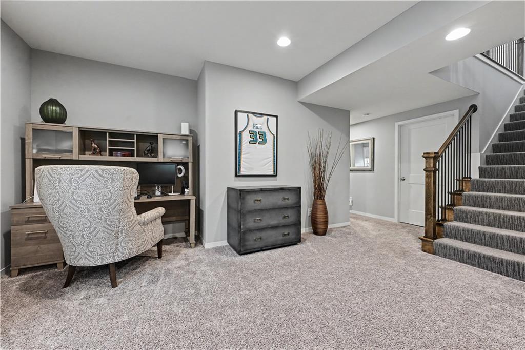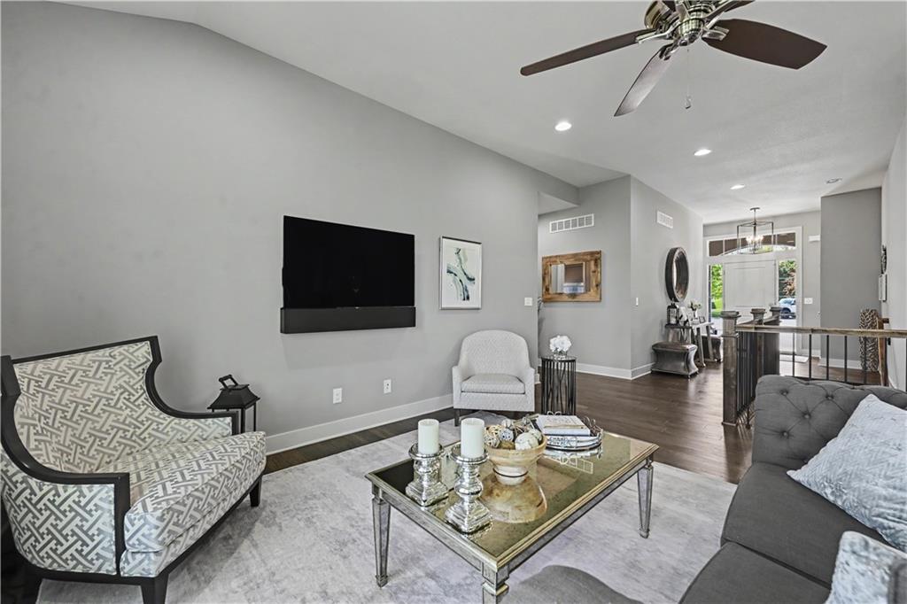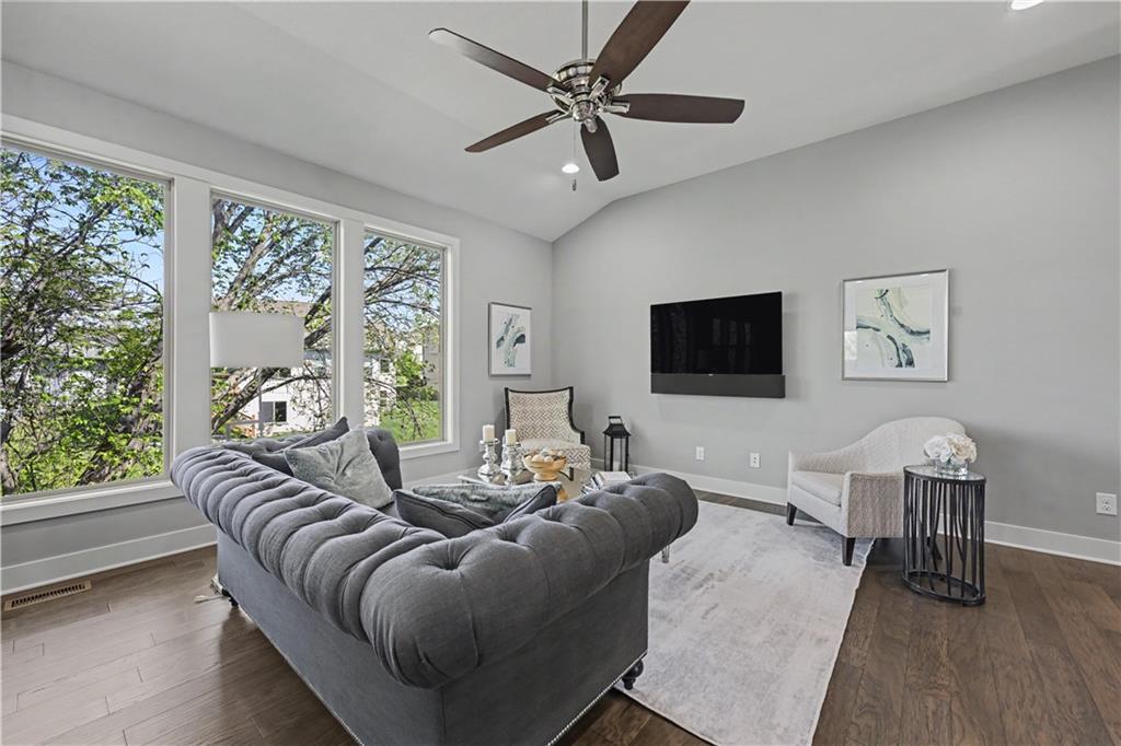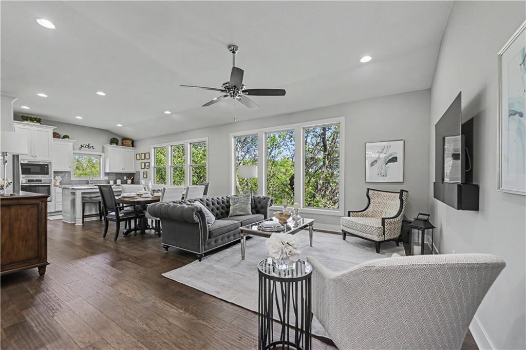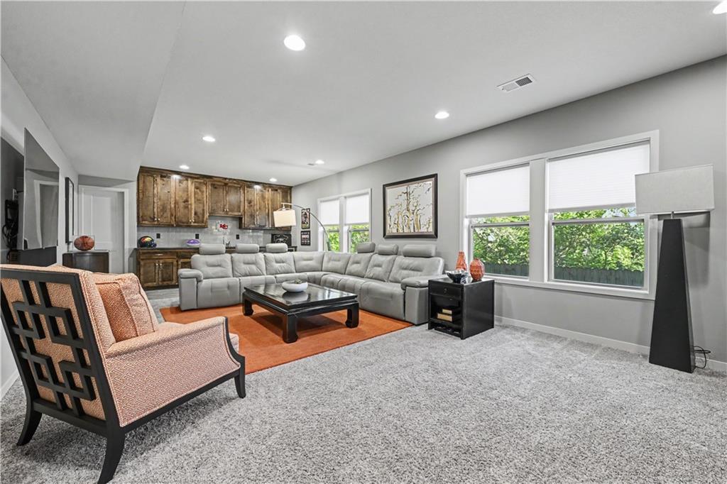 GORGEOUS reverse 1.5 story home on an amazing Cul De Sac in the heavily sought after Arbor Woods in Olathe with wonderful curb appeal! Beautiful gourmet kitchen with huge eat in granite island, with walk in pantry, hardwood floors, and stainless steel appliances. Lovely deck off conveniently located off kitchen - overlooking the beautiful treed view- great for grilling and entertaining! Spacious Master BR with ensuite with vaulted ceiling, carpet, shower, double vanities with granite tops, walk through closet, laundry and another bedroom/office all on main floor. Lower level has HUGE family room with wet bar, with third large bedroom with full bath, and large storage.