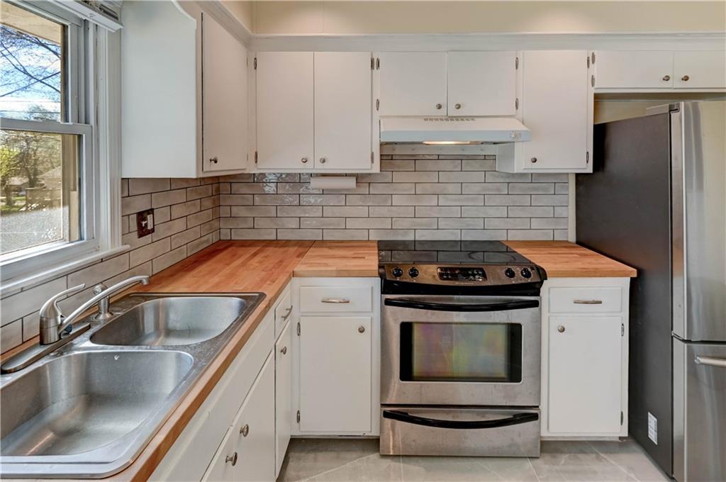 Welcome to this charming and well-maintained 2-bedroom, 1 full bath ranch home, perfectly situated in a quiet, inviting neighborhood. Offering both comfort and thoughtful upgrades, this home is move-in ready and ideal for easy living. Inside, you’ll find a bright and refreshed interior featuring new paint throughout and a beautifully updated living room with a freshly scraped and repainted ceiling, enhanced by modern cam lighting for a warm, welcoming feel. The kitchen has been tastefully upgraded with a new porcelain floor, stylish ceramic backsplash, butcher block countertops, upgraded appliances, a new sink, faucet, and garbage disposal—perfect for both everyday living and entertaining. Both bedrooms offer comfort and functionality, complete with upgraded ceiling fans. The bathrooms have also seen improvements, including new flooring, a new vanity topped with a marble countertop, and the addition of a half window to bring in extra natural light. There is also a bonus room, great for a 3rd non-conforming bedroom, office or workout room. Step outside to enjoy a large, fully fenced backyard—ideal for entertaining, pets, or simply relaxing in your own private space. A convenient storage shed provides ample room for yard tools and equipment. The property has also been enhanced with additional attic insulation for improved efficiency, along with added fill dirt on two sides for better grading and usability. For added convenience, the home includes a washer, dryer, and all kitchen appliances, including the refrigerator. A one-car garage completes this fantastic property. This thoughtfully updated home combines charm, practicality, and value—ready for its next owner to enjoy.