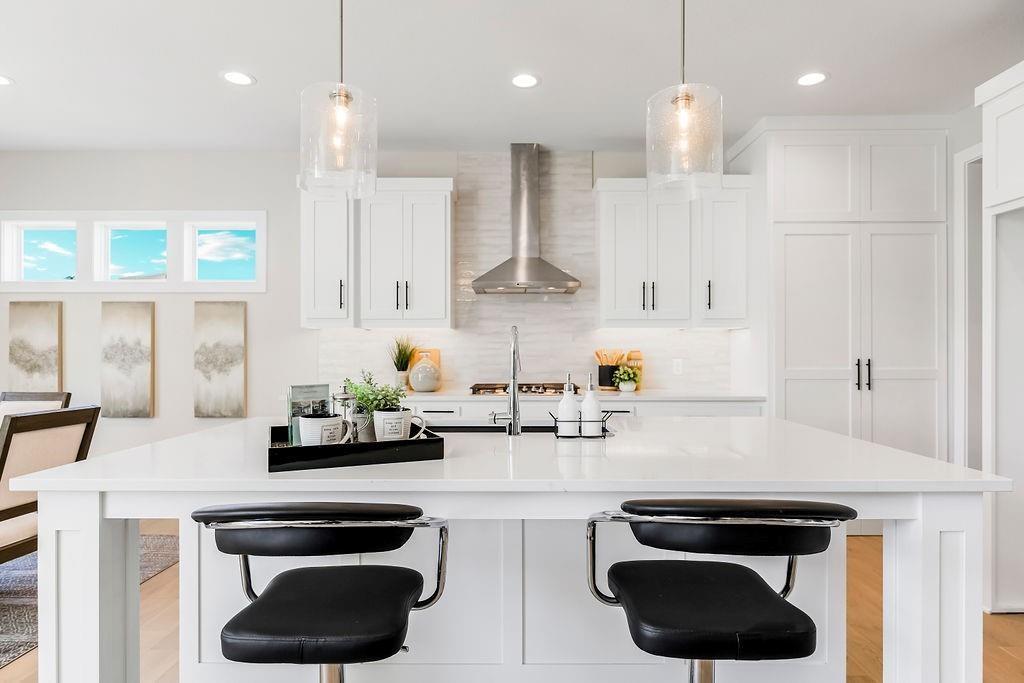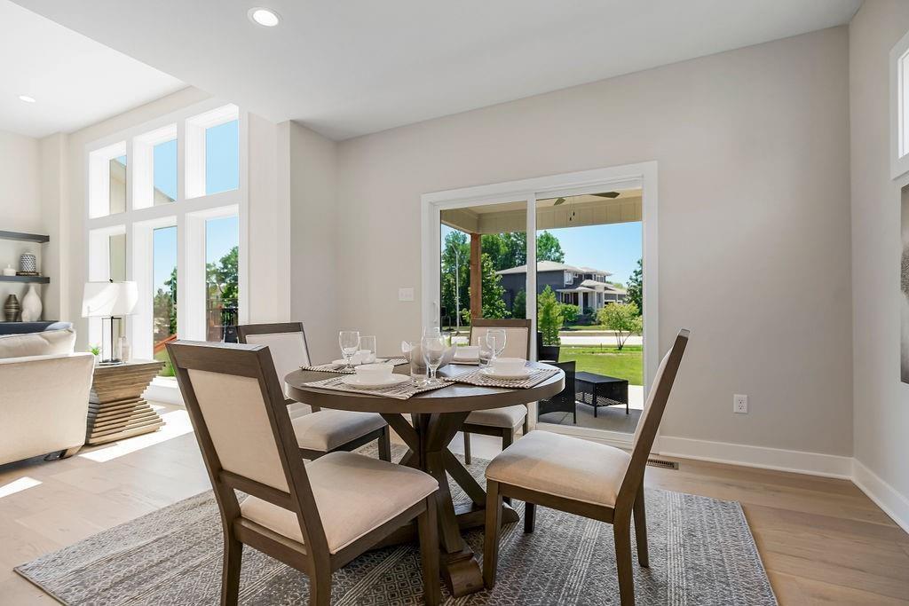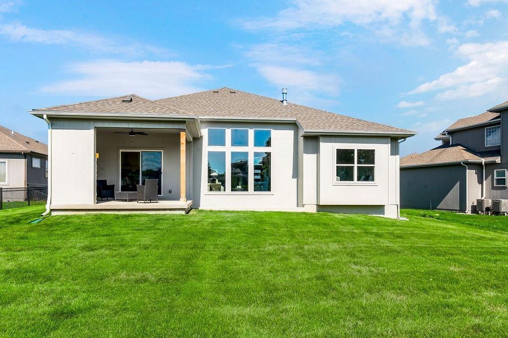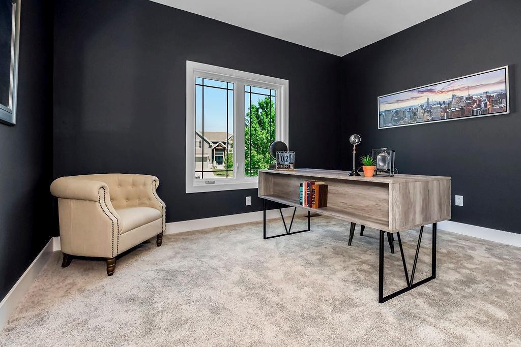 The Kylee by New Mark Homes is Stonebridge Villas newest Model Home! This maintenance provided community by Rodrock Development is now showing this fully furnished, reverse 1.5 story, 4 bedroom, 3 bath home. This plan offers one level living at its finest with the primary bedroom and additional office or bedroom located on the main level. The finished, walk out, lower level offers 2 more bedrooms, a recreation room, wet bar, and additional unfinished space for storage. The deck offers sunset views, a privacy wall and composite finish. This home includes a sprinkler system, upgraded ceramic tile, upgraded light fixtures, gas cooktop with hood, an enlarged master shower, cabinet hardware upgrades, granite counter tops and stainless steel appliances. Prairie Creek Elementary 0.6 mi. Heritage Park 1.2 mi. Hy-Vee Grocery (151st St) 2.0 mi. Stonebridge Clubhouse & Pools within community. I-35 access 3 mi. 169 hwy 2 mi. Bluehawk Shopping 5 mi and Arbor Creek Shopping 2 mi. **Photos are of a previous model. Finishes and upgrades may vary. Please ask onsite agent for more details.**
